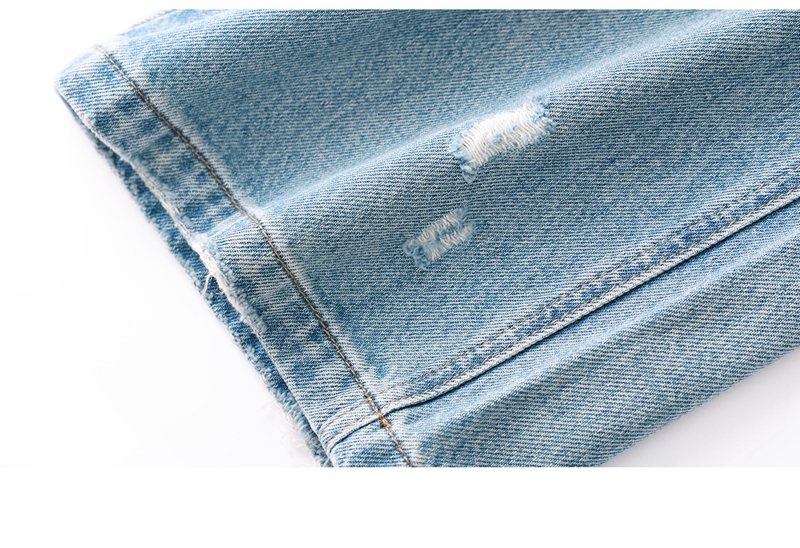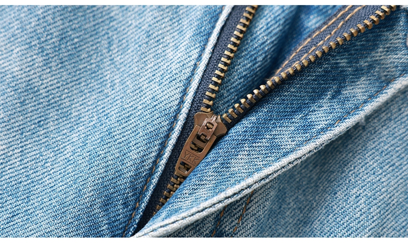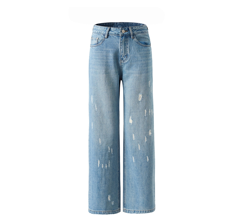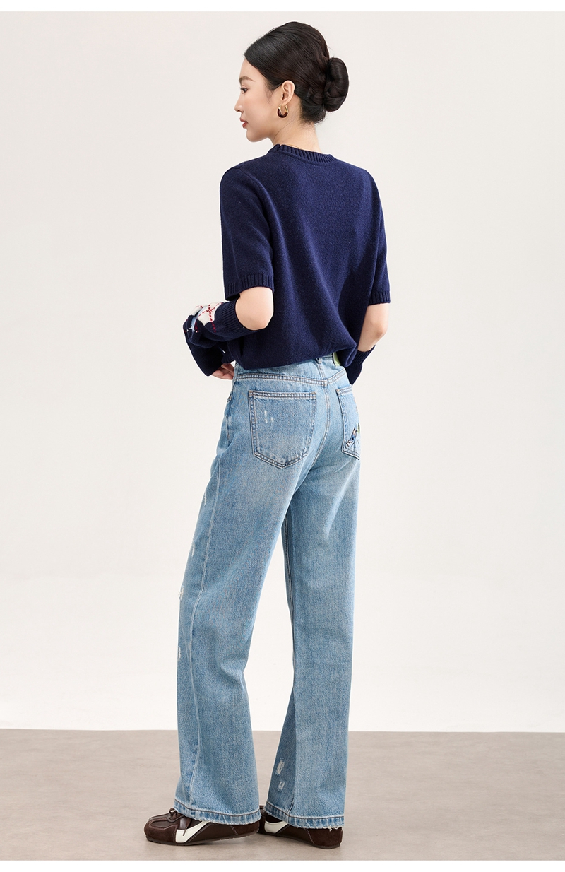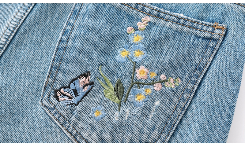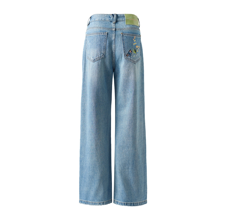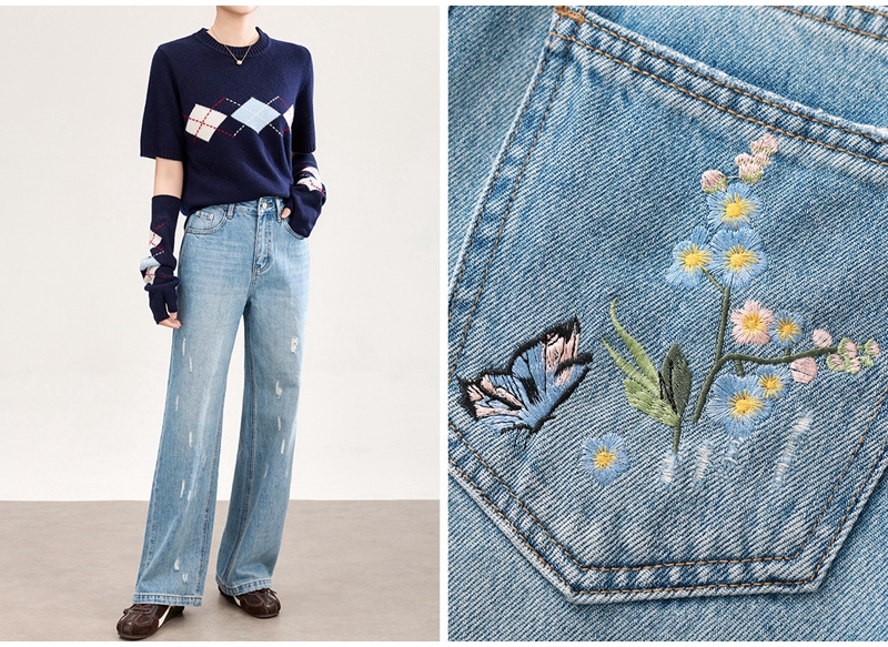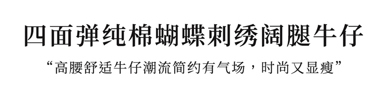 2026春装做旧洗水蝴蝶刺绣高腰拉链直筒牛仔裤