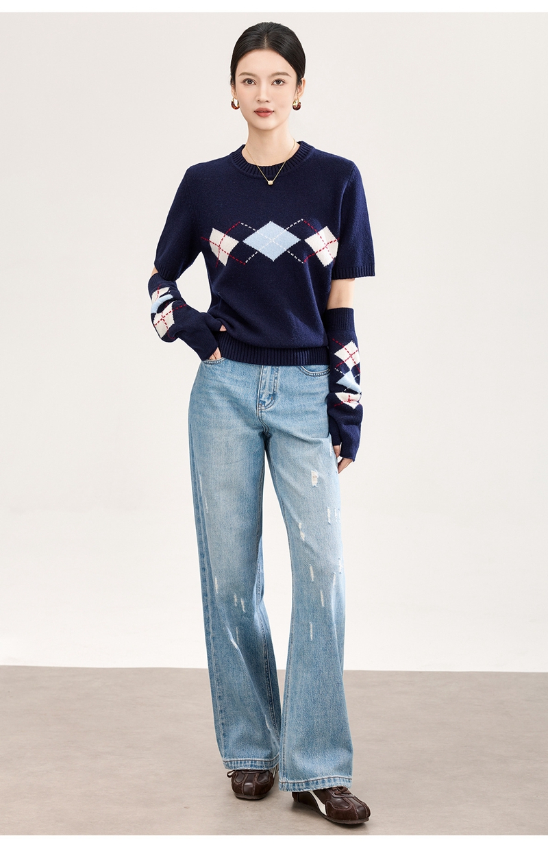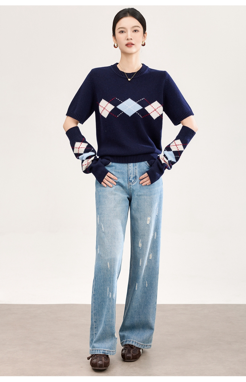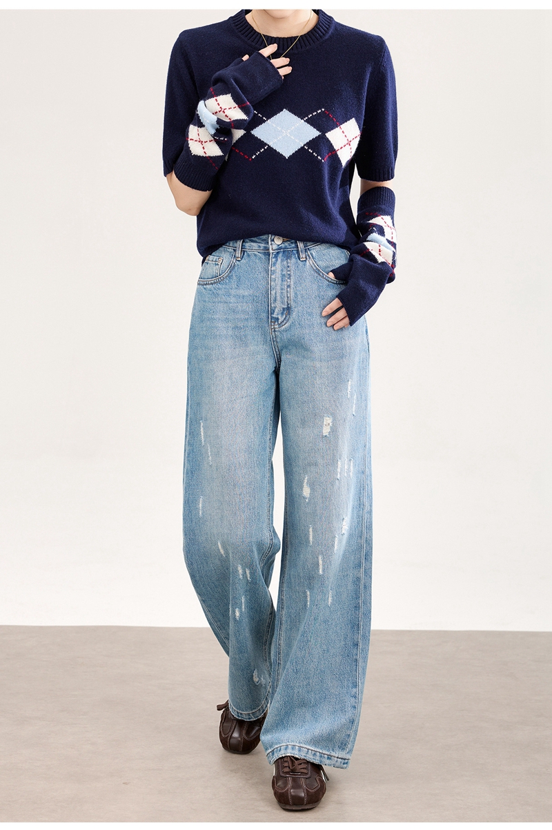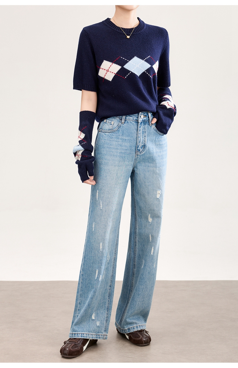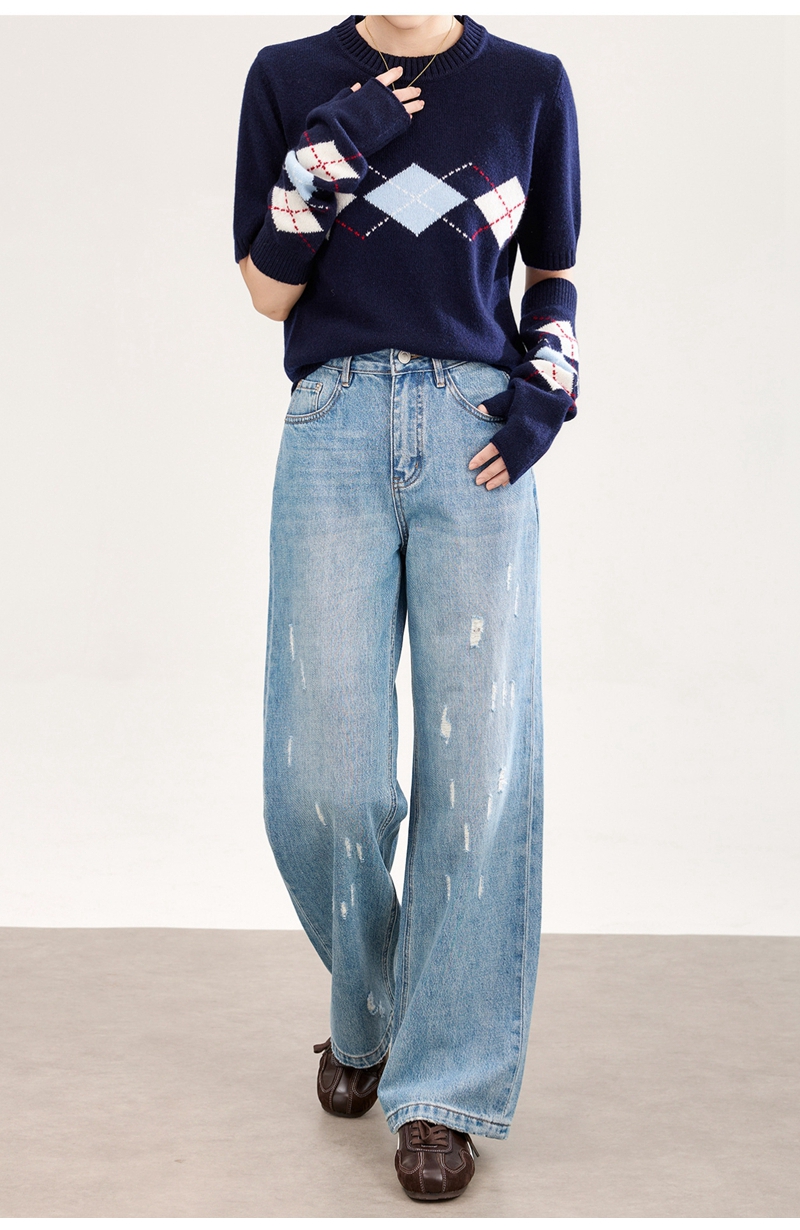 2026春装做旧洗水蝴蝶刺绣高腰拉链直筒牛仔裤