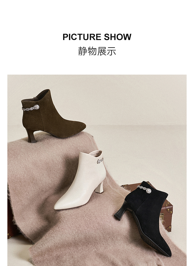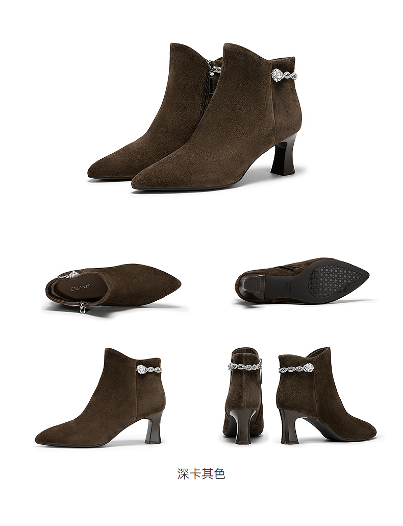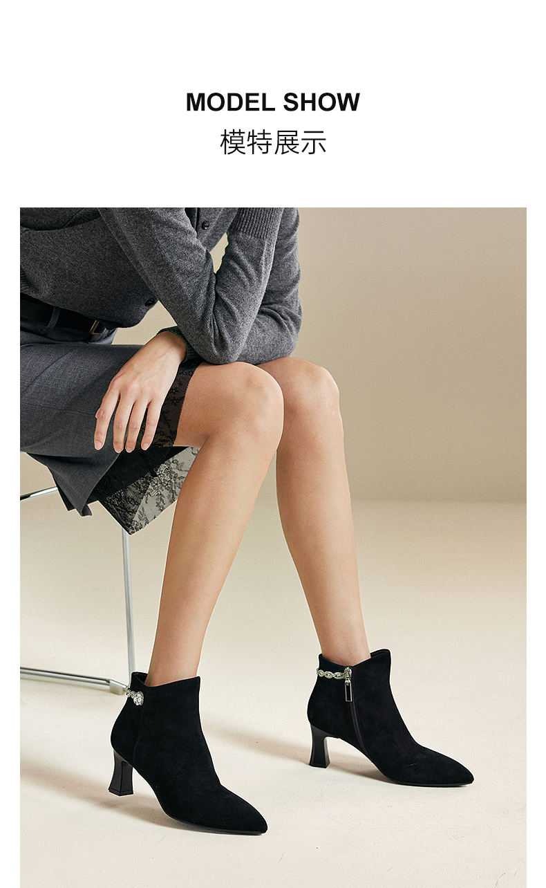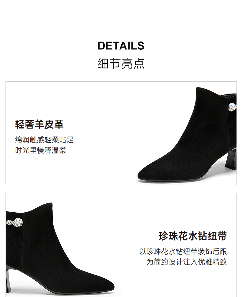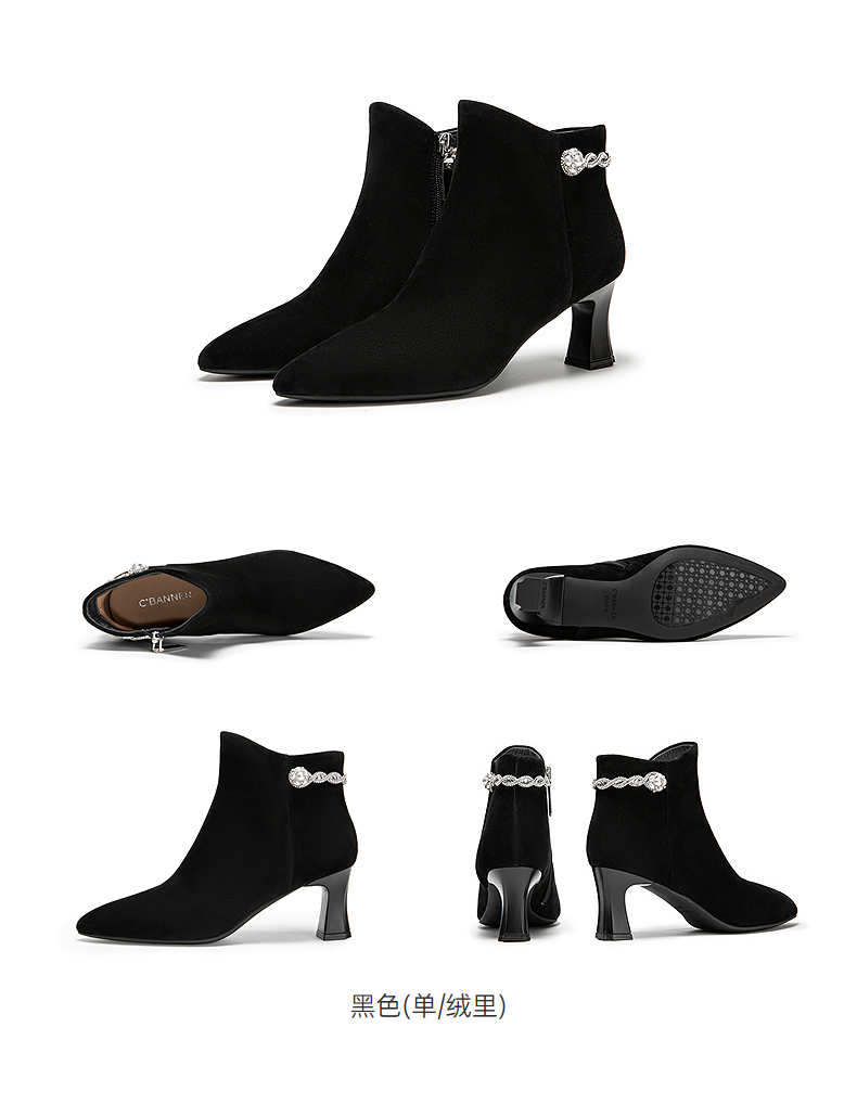 【静音系列】千百度粗高跟羊皮踝靴女加绒短靴时装靴A25588704