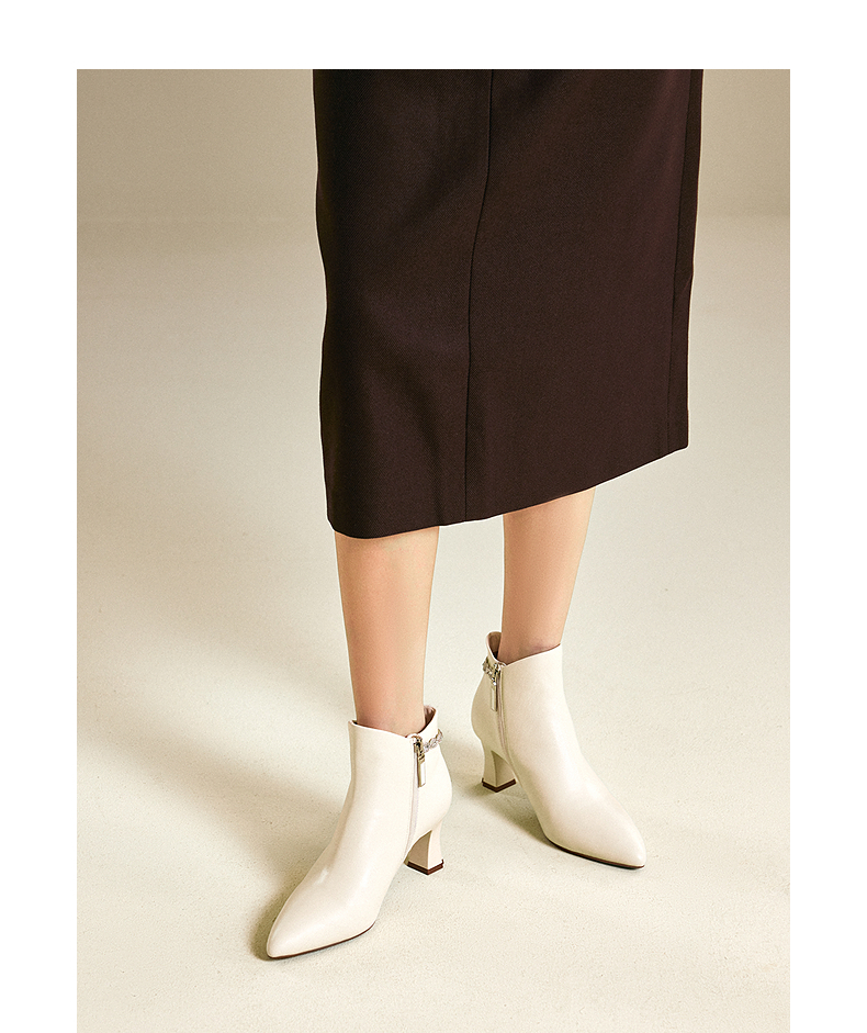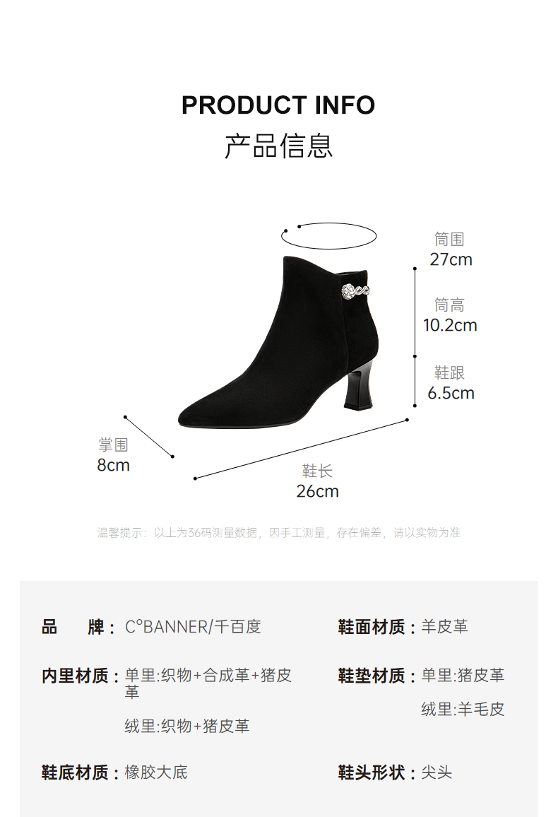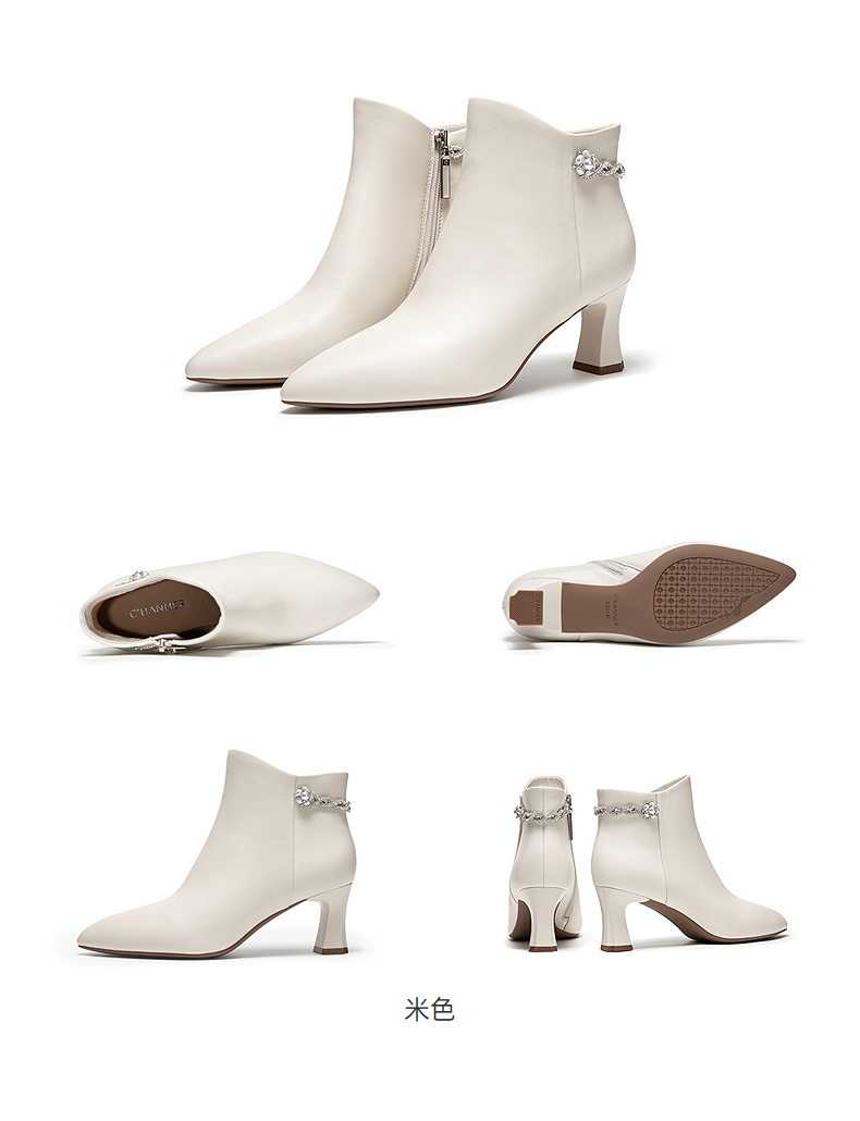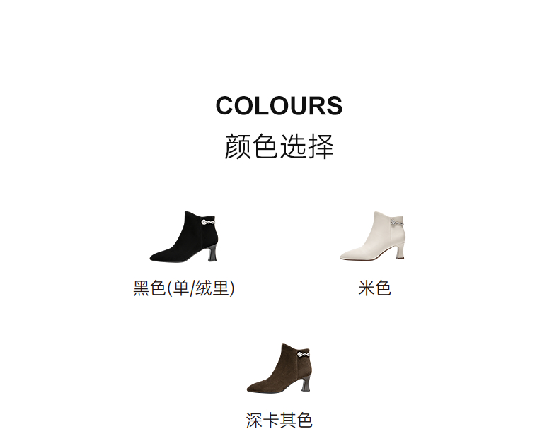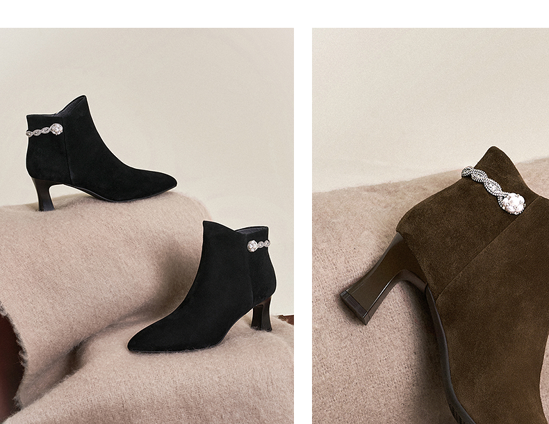 【静音系列】千百度粗高跟羊皮踝靴女加绒短靴时装靴A25588704