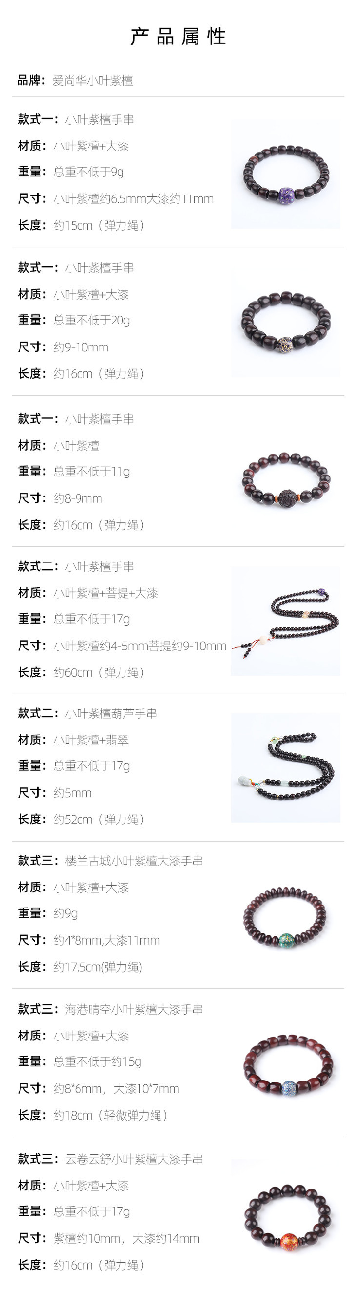 尺寸:小叶紫檀约6.5mm大漆约11mm