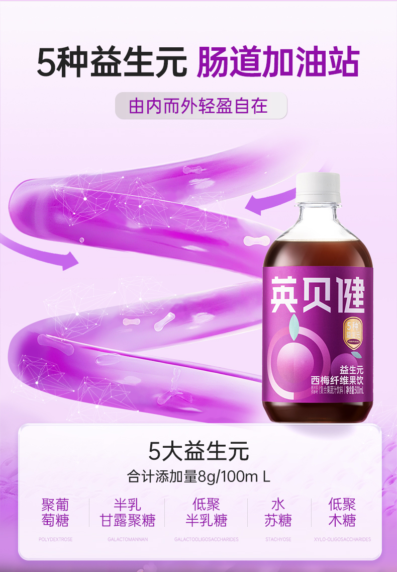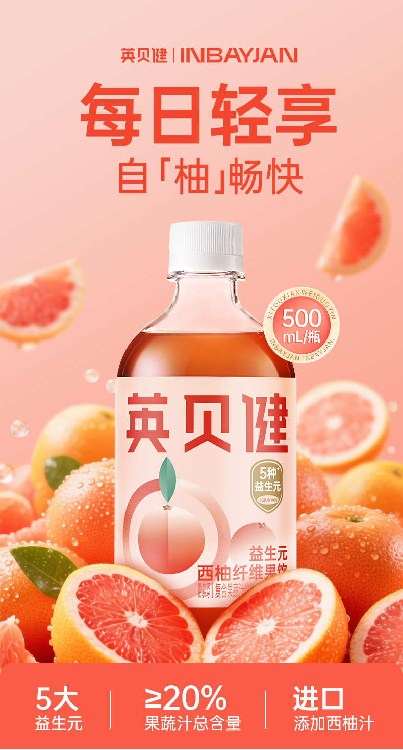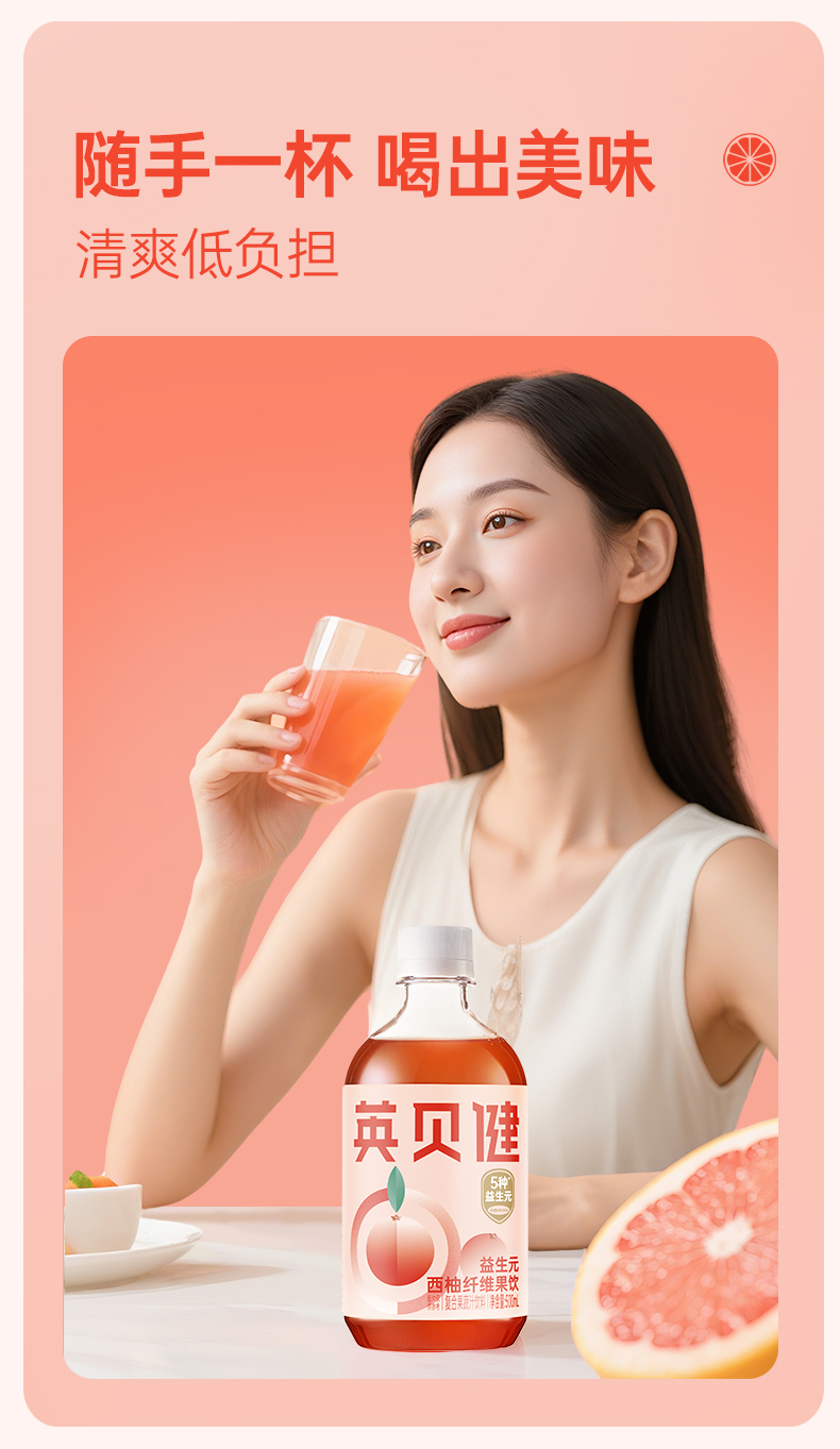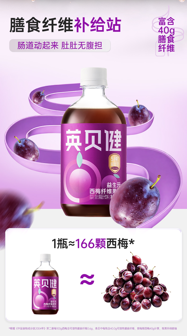 【西梅汁/油柑汁/西柚汁3选1】英贝健大餐益生元纤维果蔬汁 500ml/瓶*2瓶