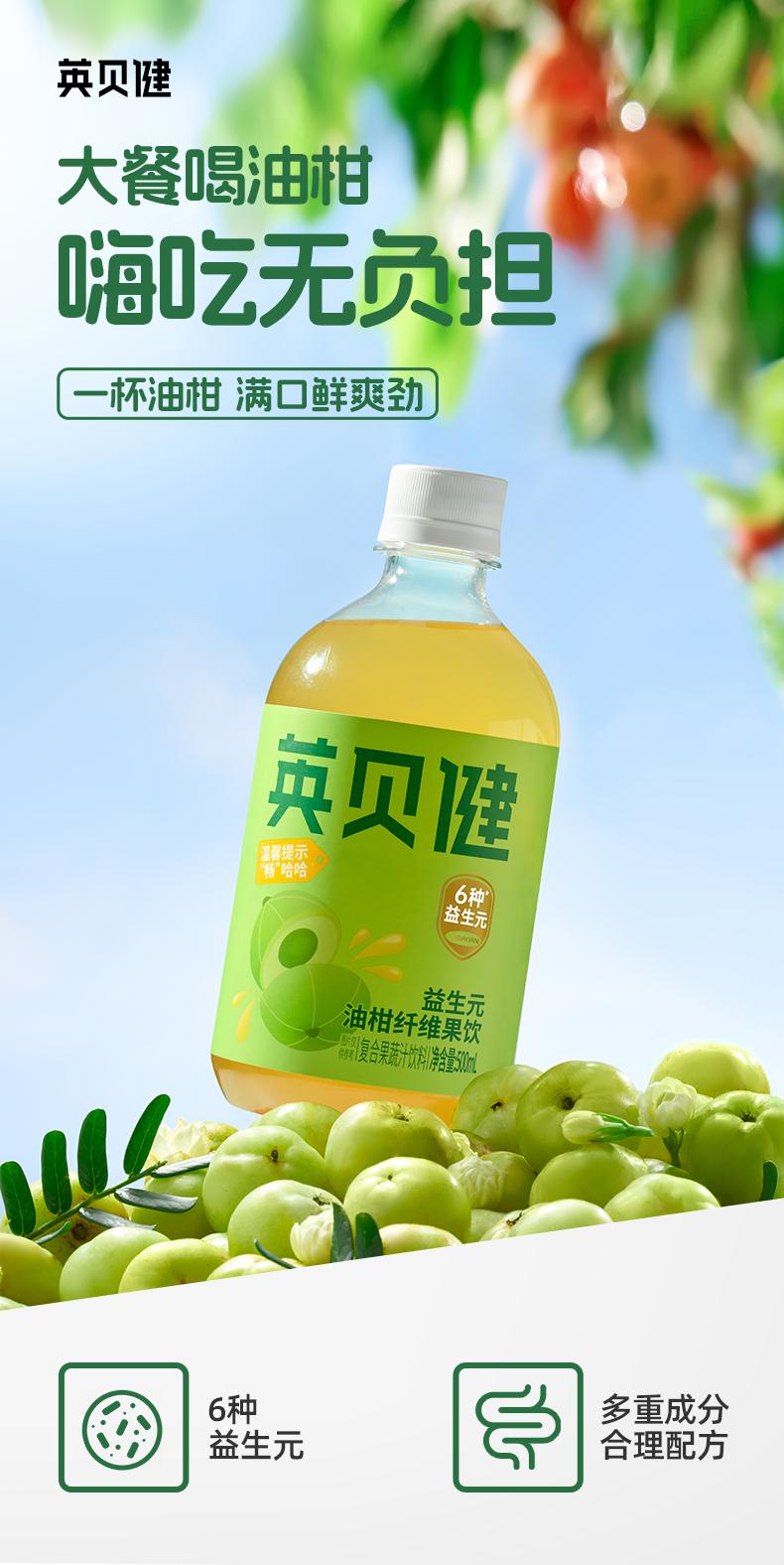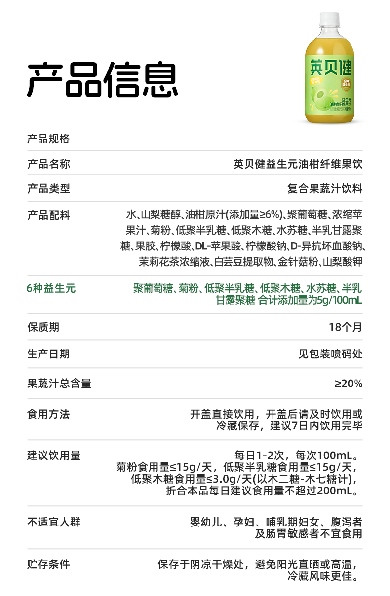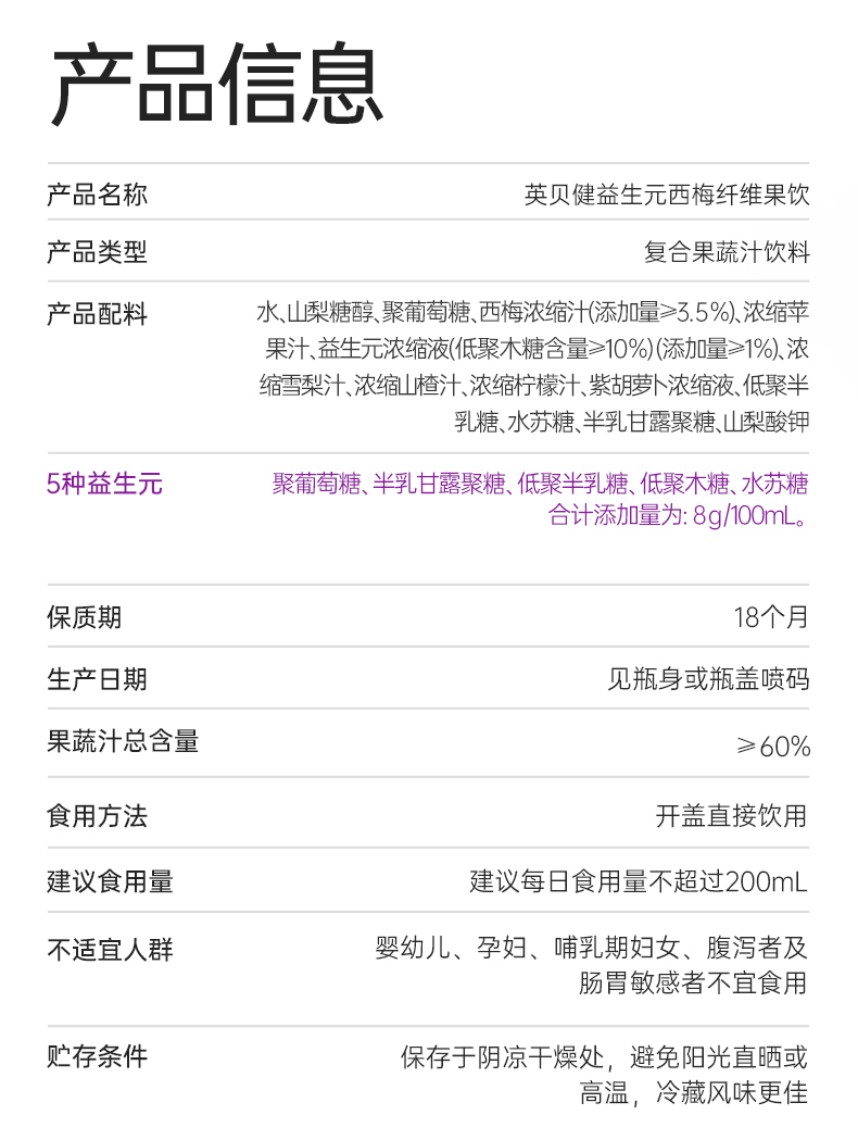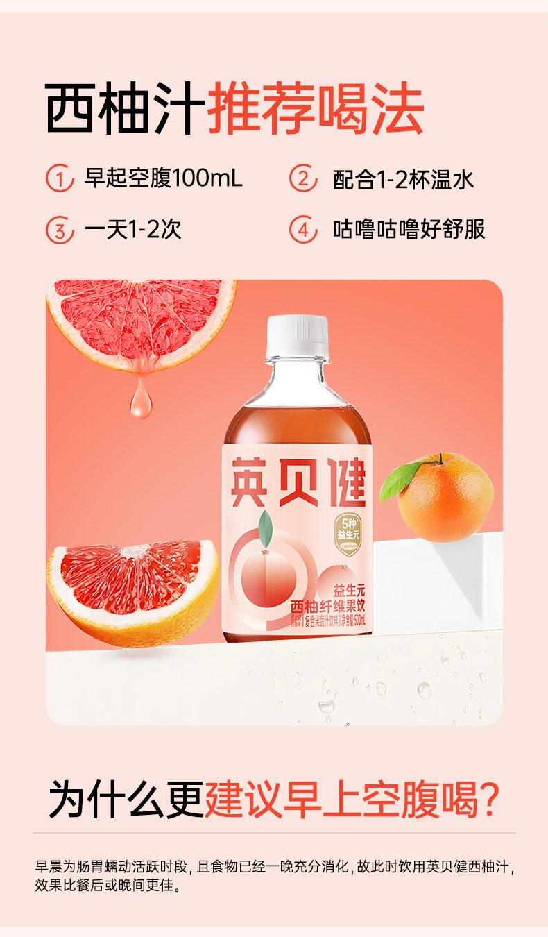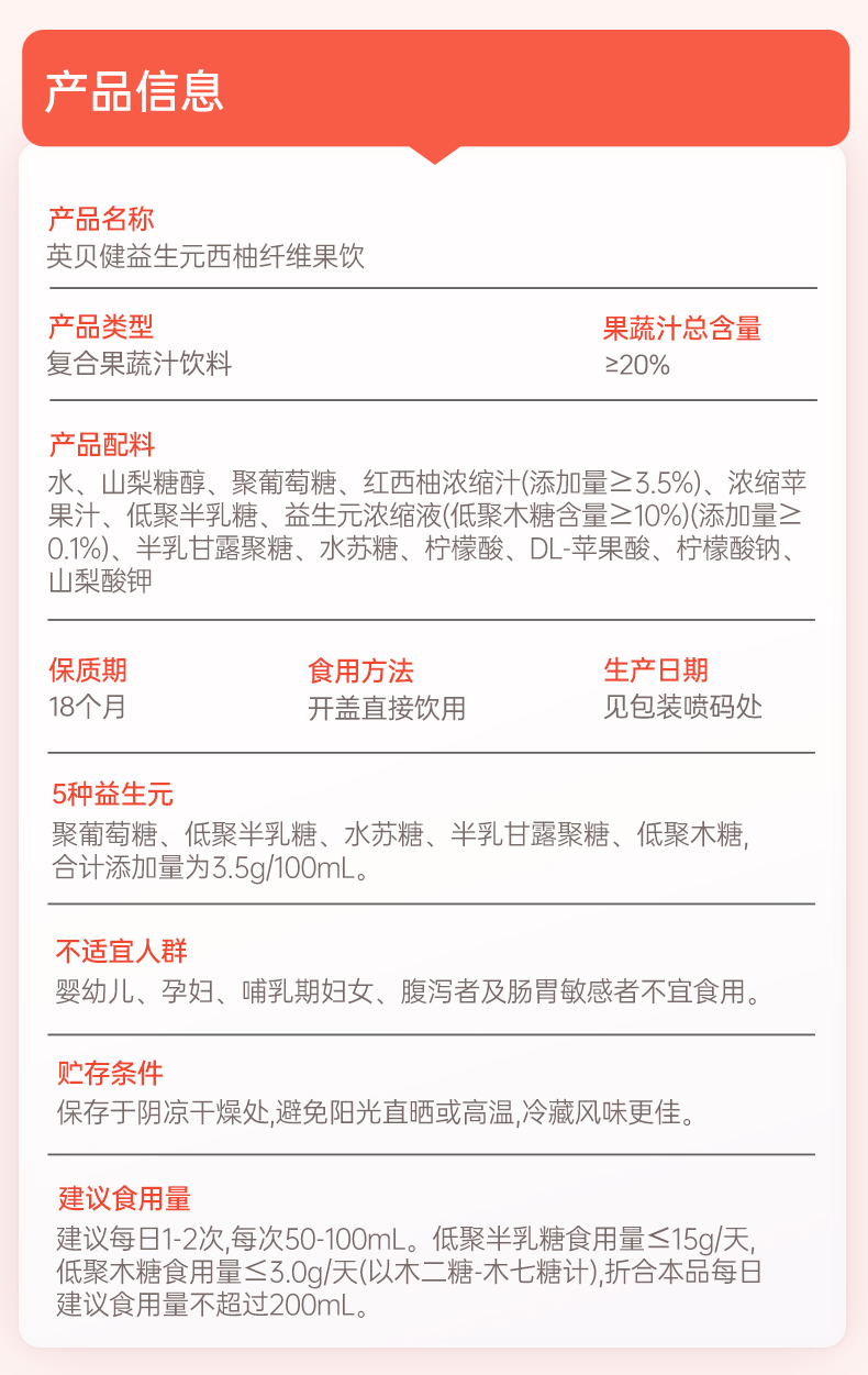 【西梅汁/油柑汁/西柚汁3选1】英贝健大餐益生元纤维果蔬汁 500ml/瓶*2瓶