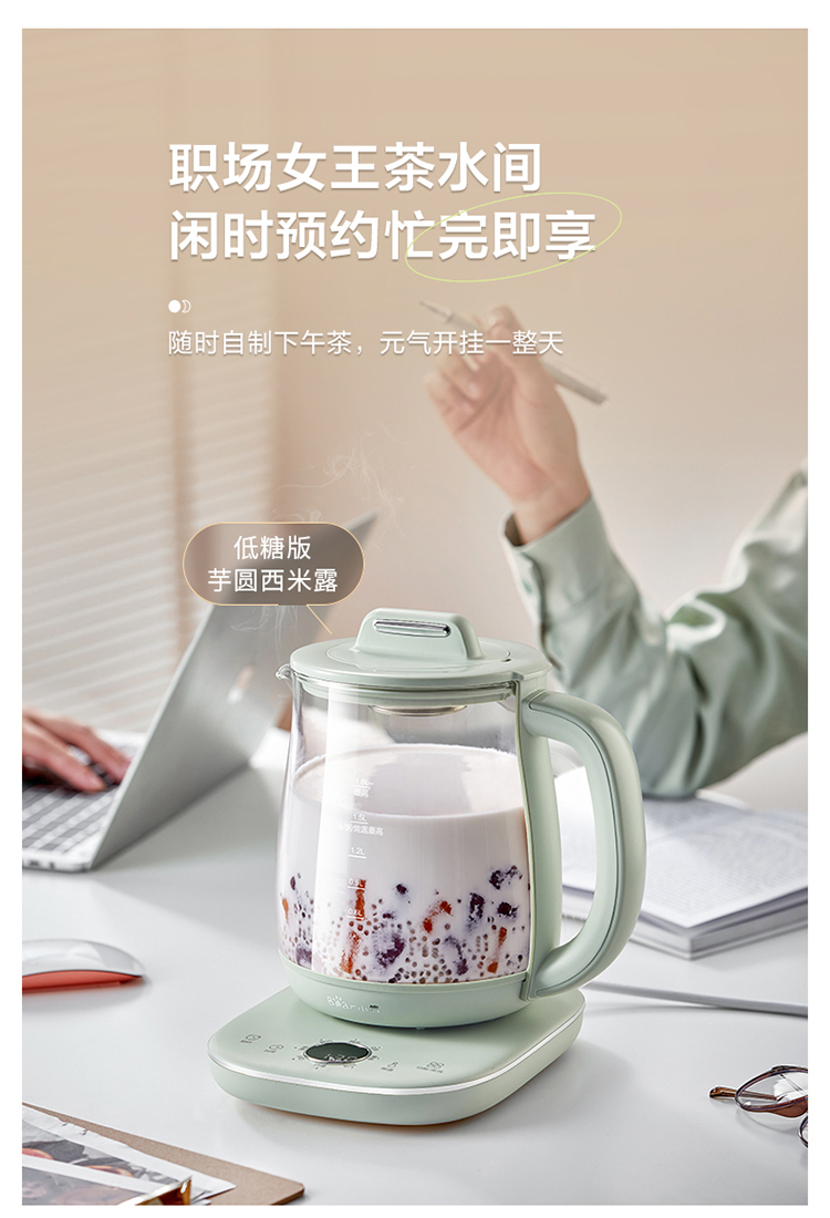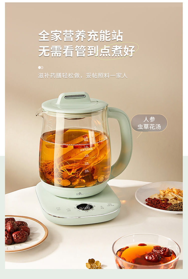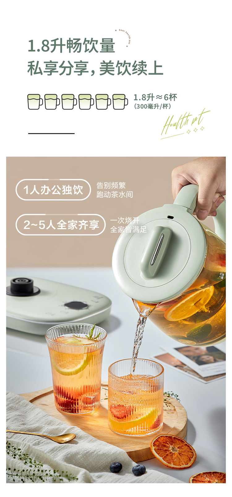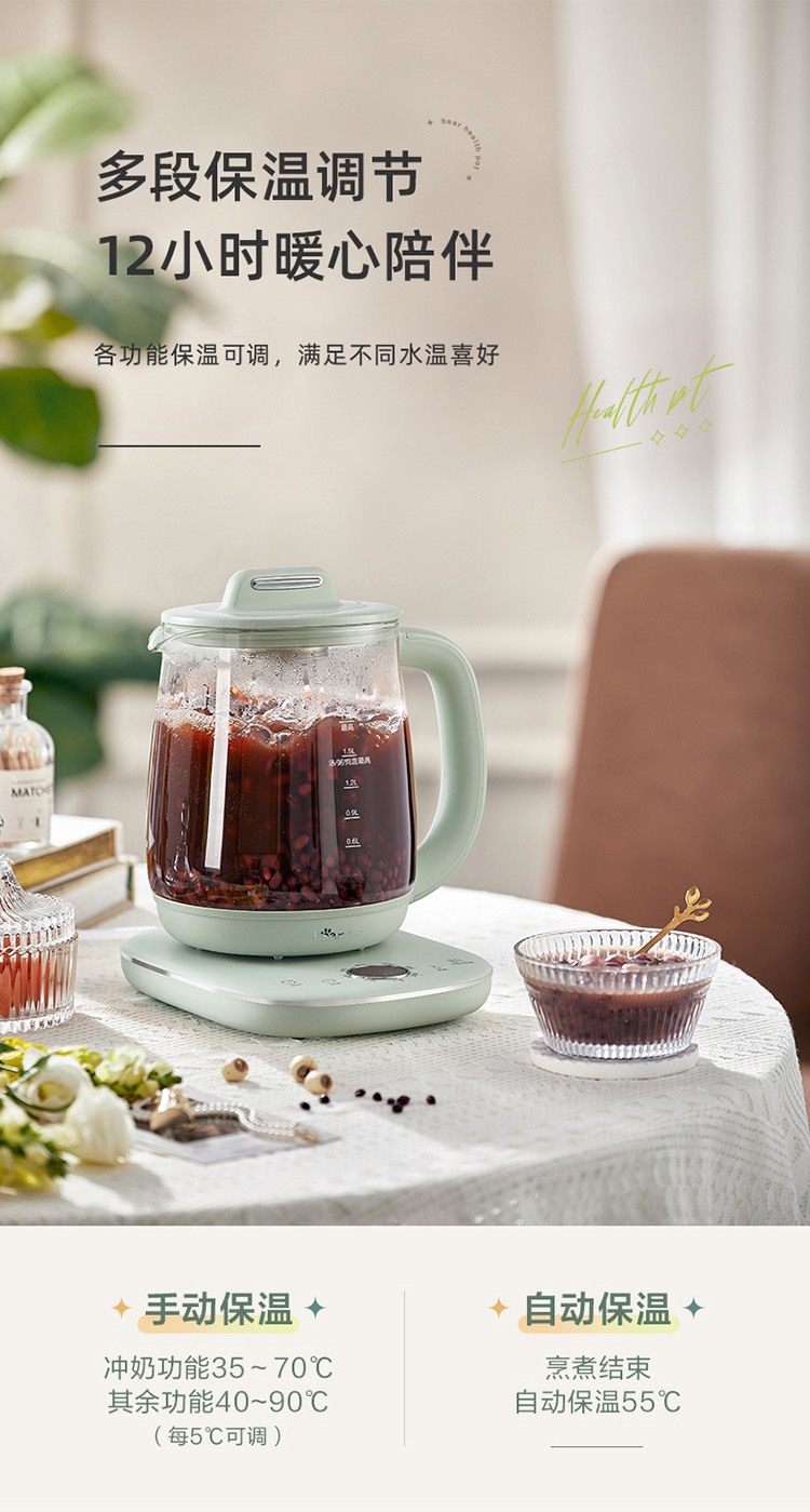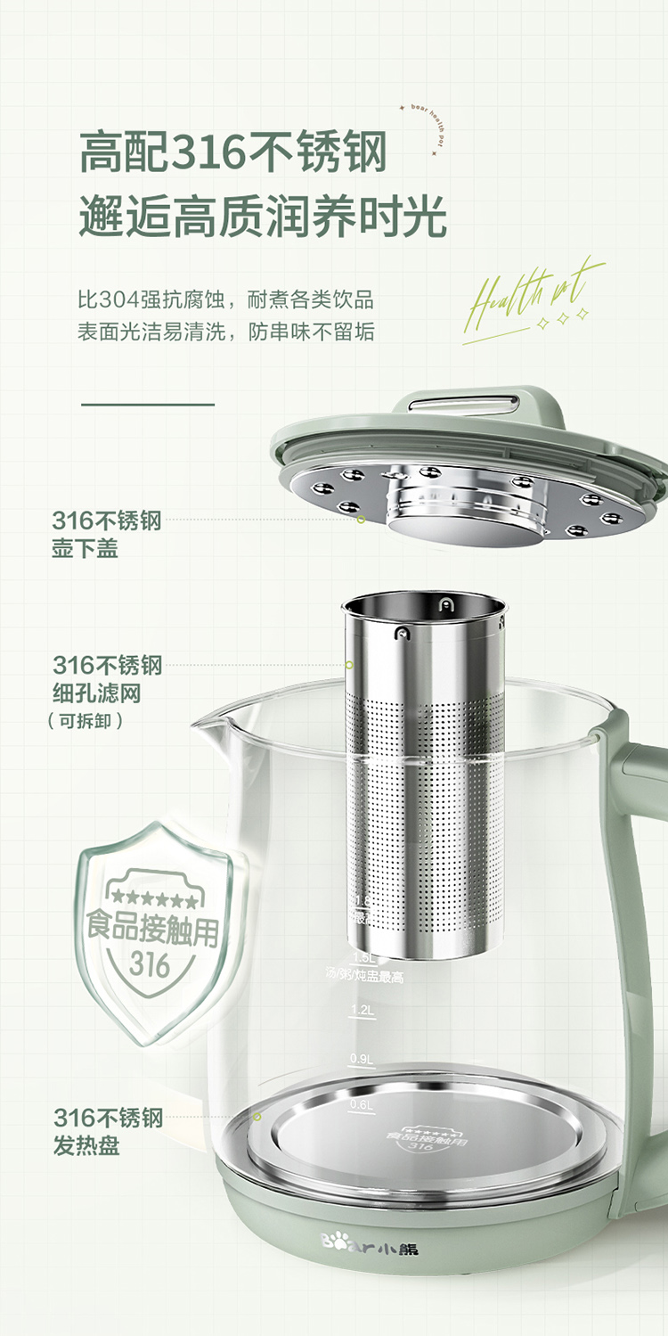 小熊316不锈钢滤网防干烧养生壶浅绿色1.8L