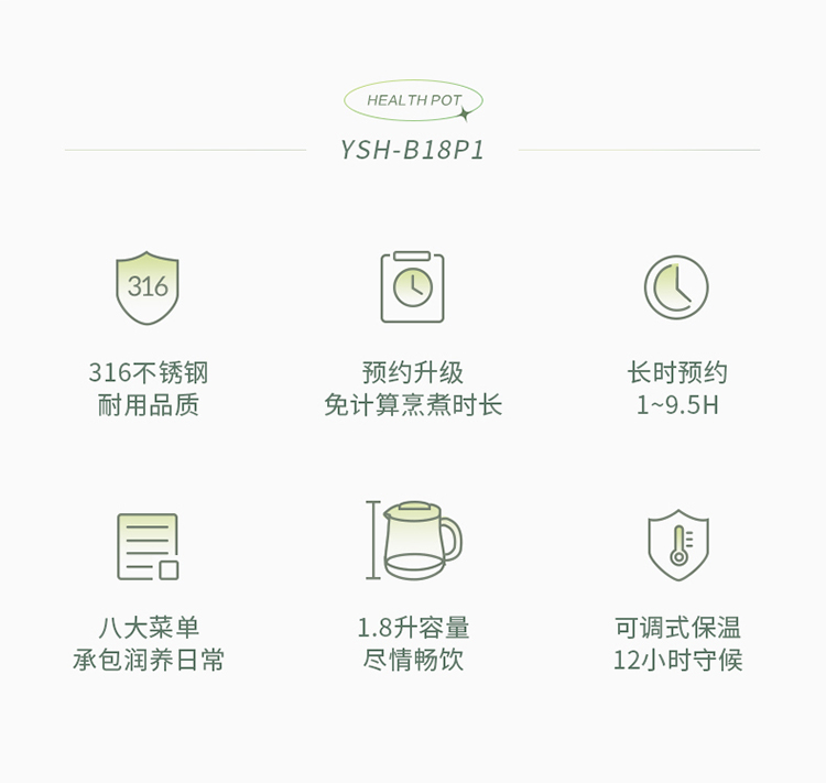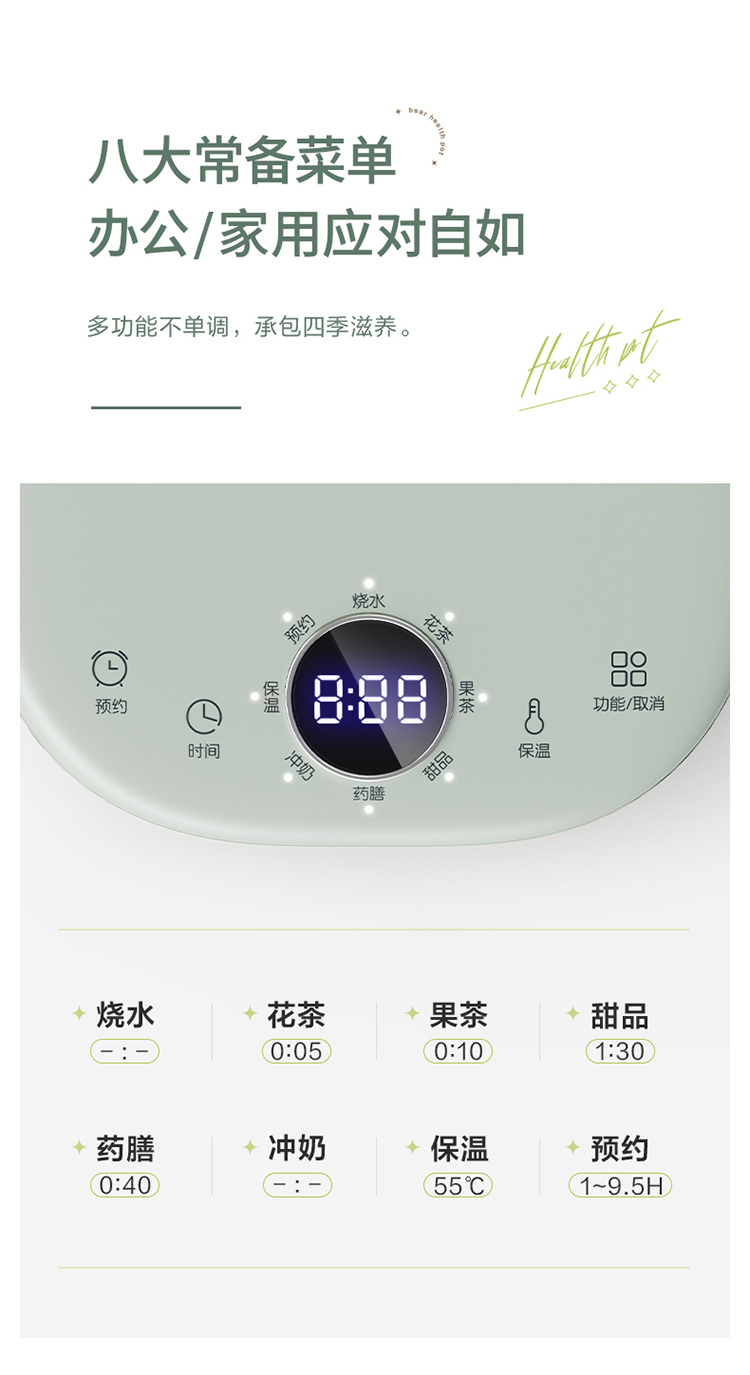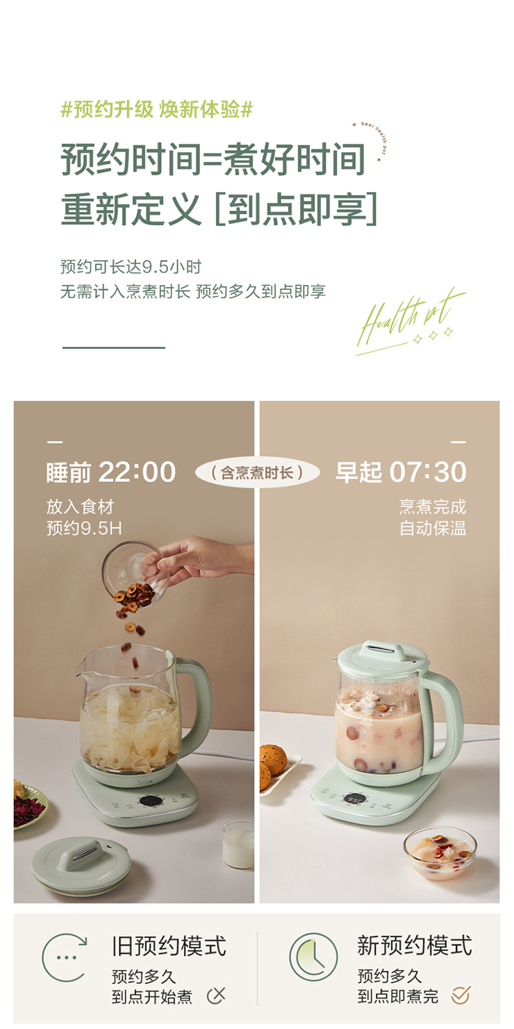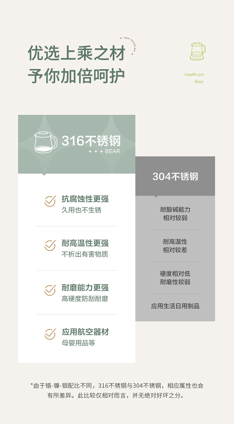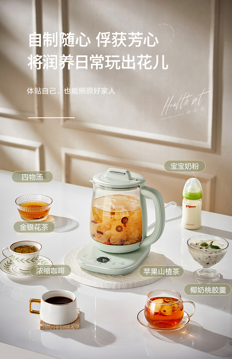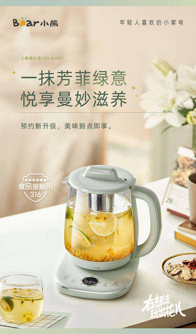 小熊316不锈钢滤网防干烧养生壶浅绿色1.8L