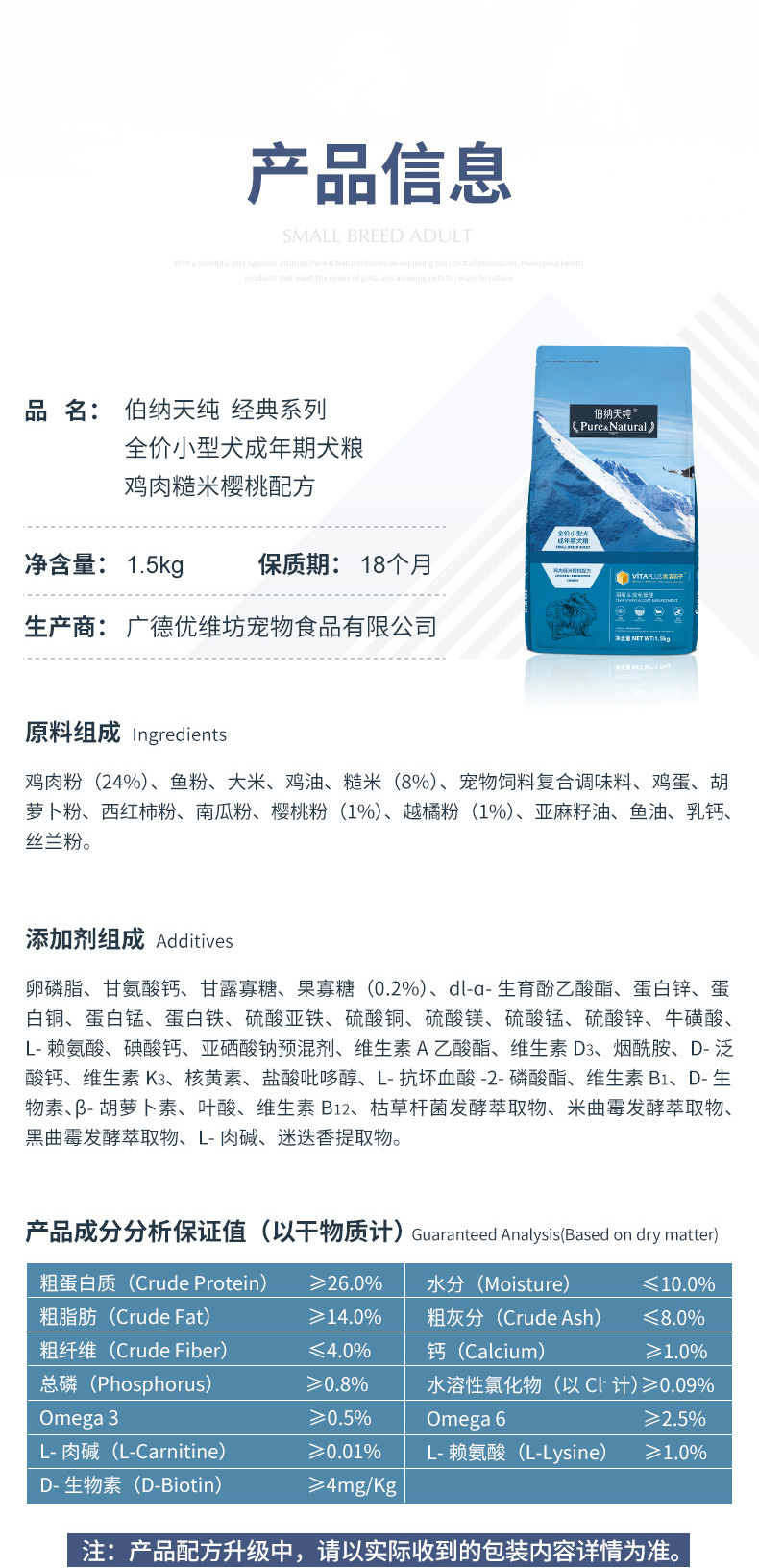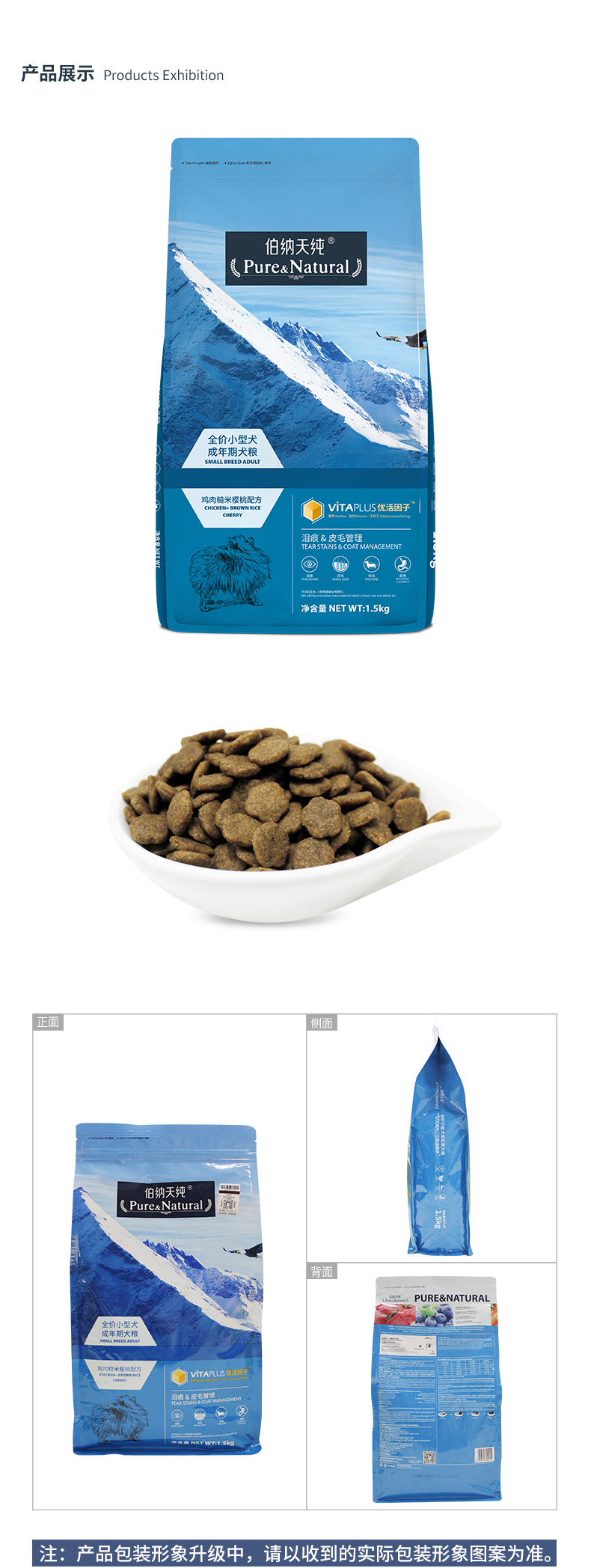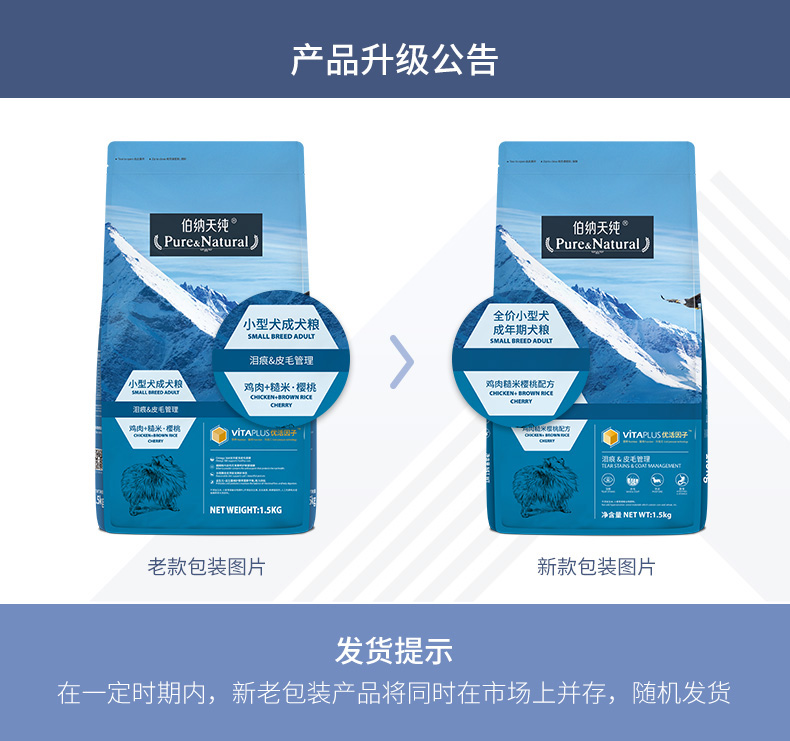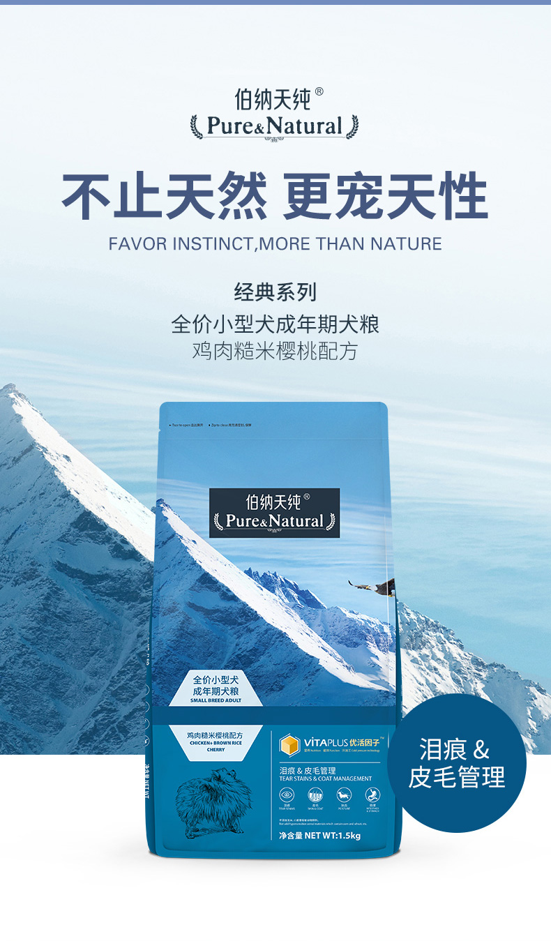 伯纳天纯天然全价小型犬成犬粮1.5kg
