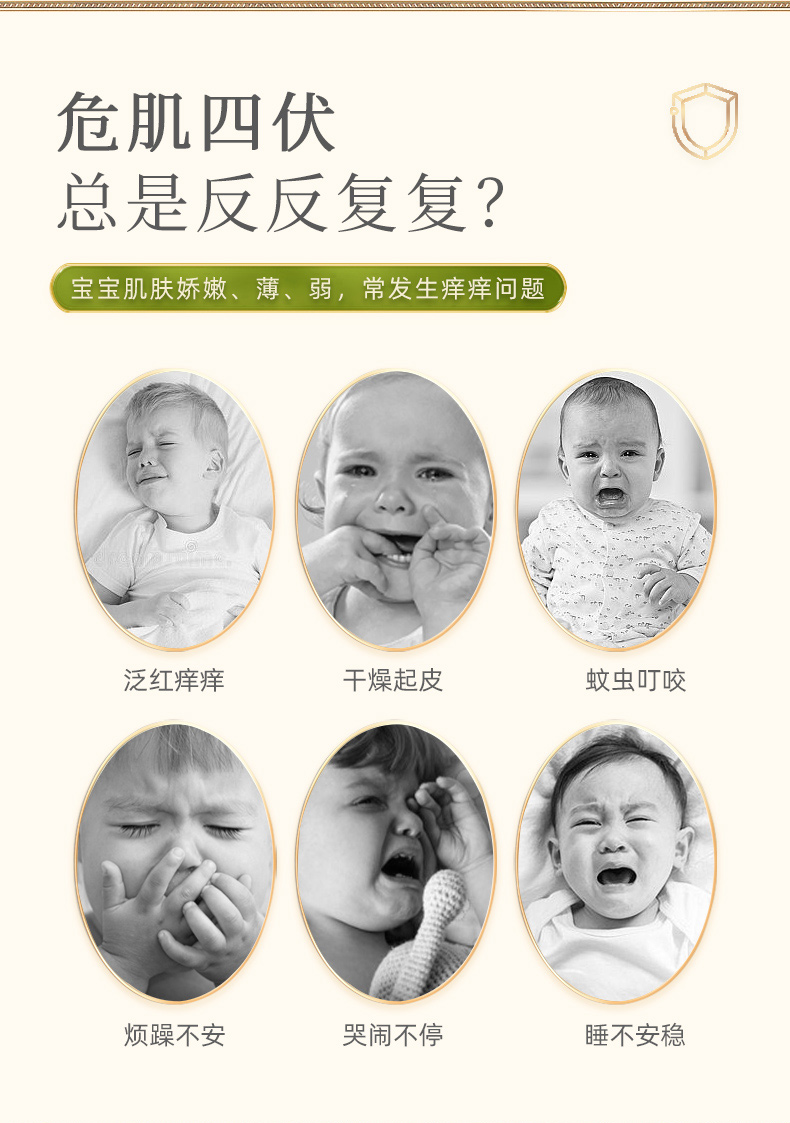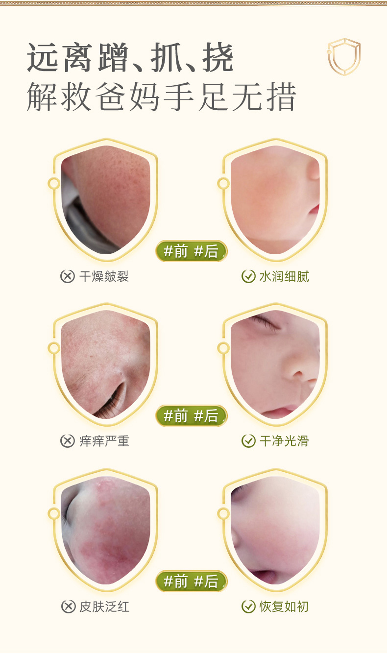主要用于:宝宝湿疹、口水疹、皮肤瘙痒、红屁屁等情况