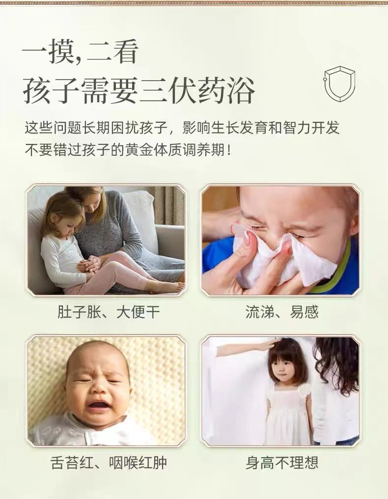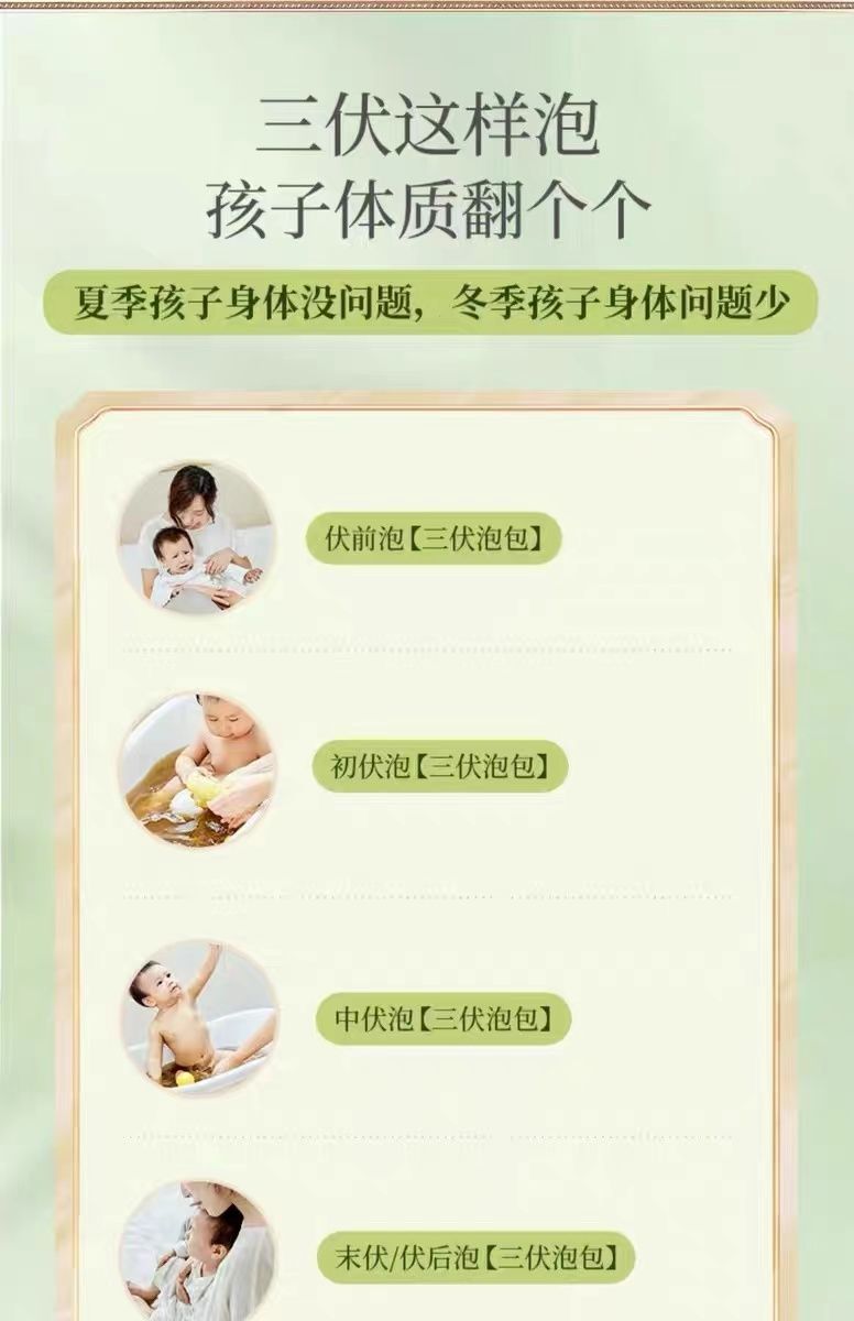 一盒三伏药浴送一盒三伏贴,可叠加 三伏贴每盒4贴 主要用于:针对宝宝提升体质、健脾祛湿,温阳散寒,冬病夏调,