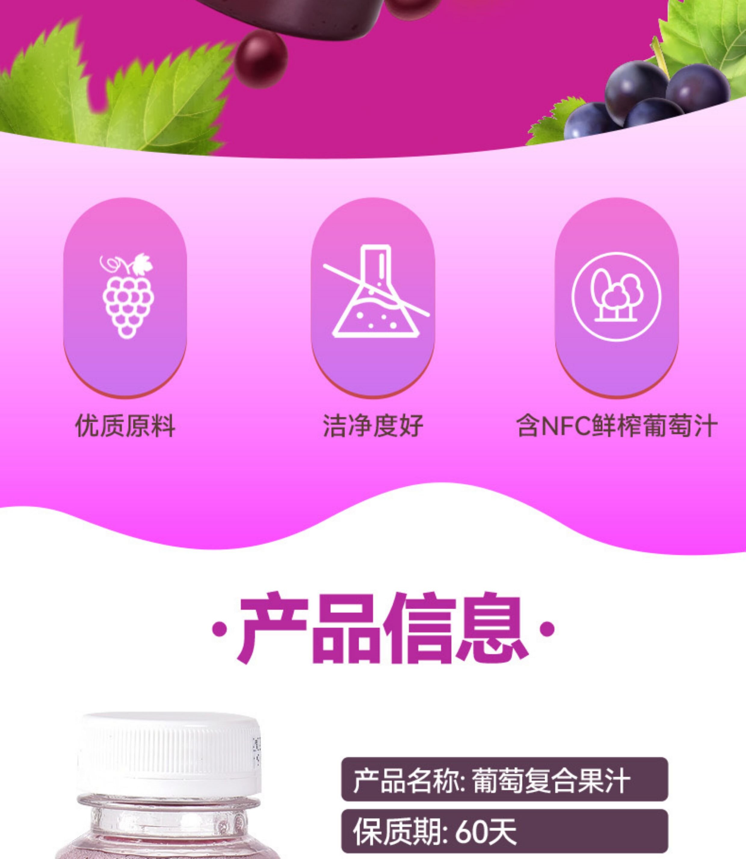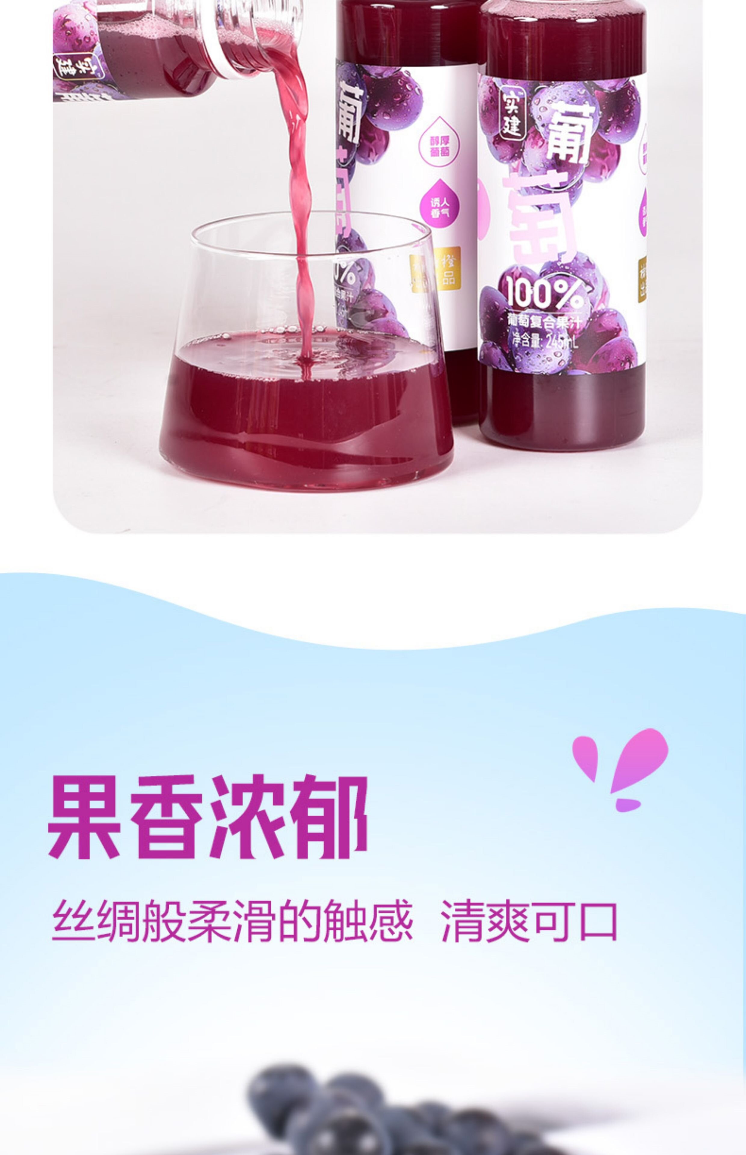 云南实建褚橙果汁100%葡萄复合果蔬汁245ml*12瓶