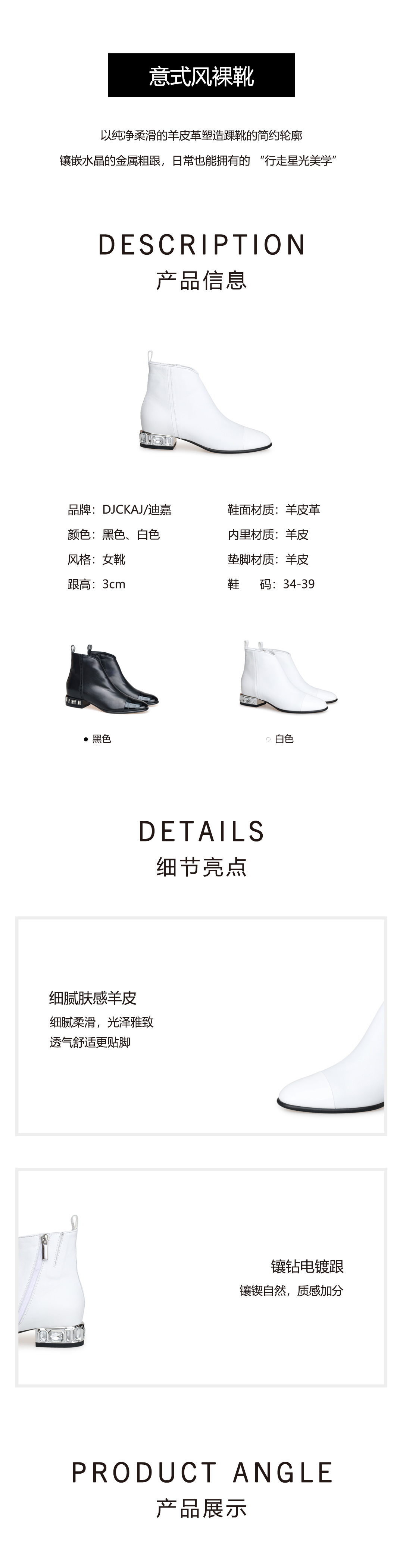 豪麟名鞋进口迪嘉女鞋短靴羊皮革W25232黑色