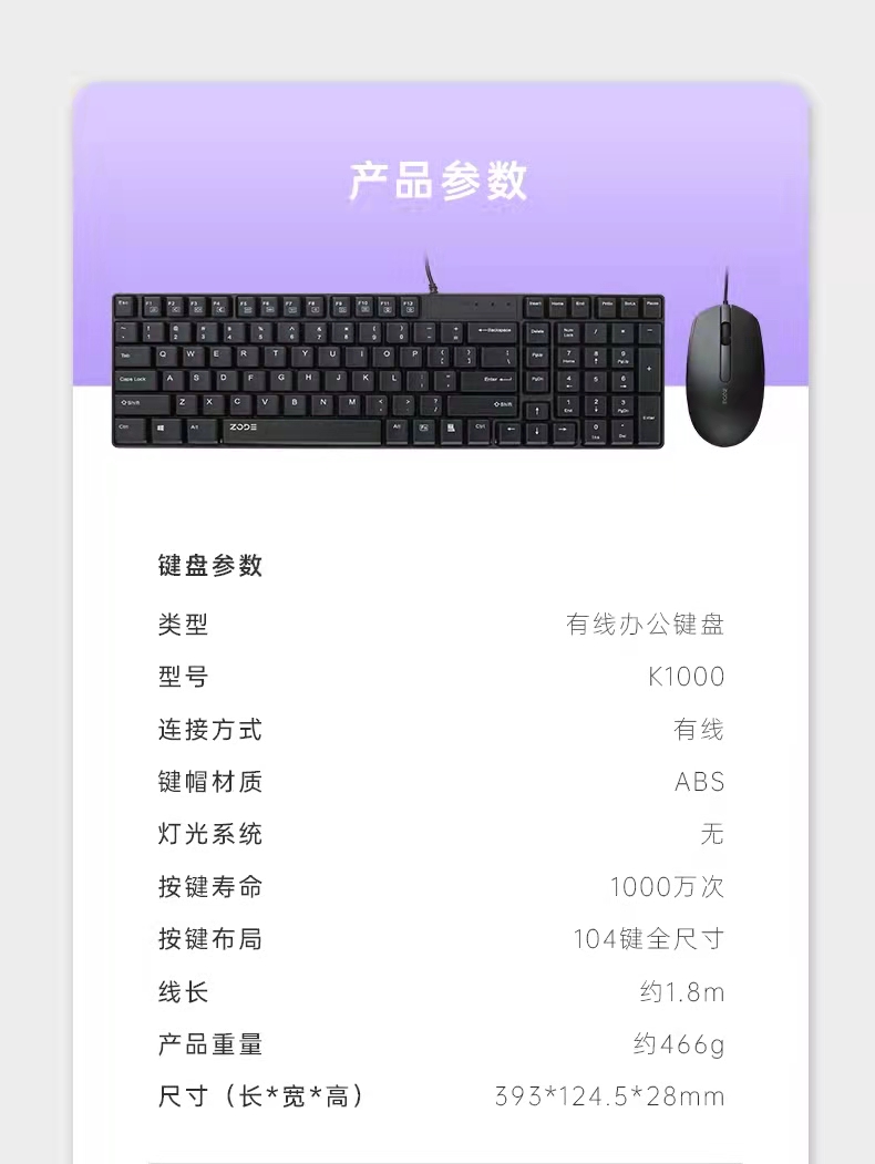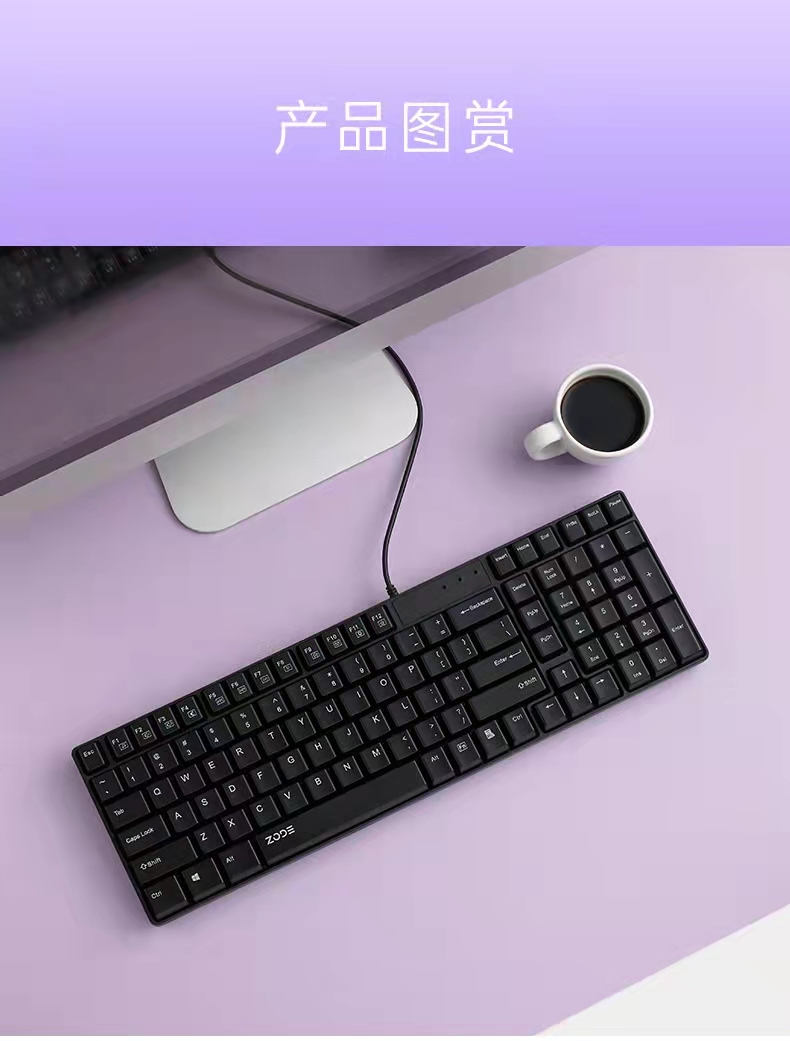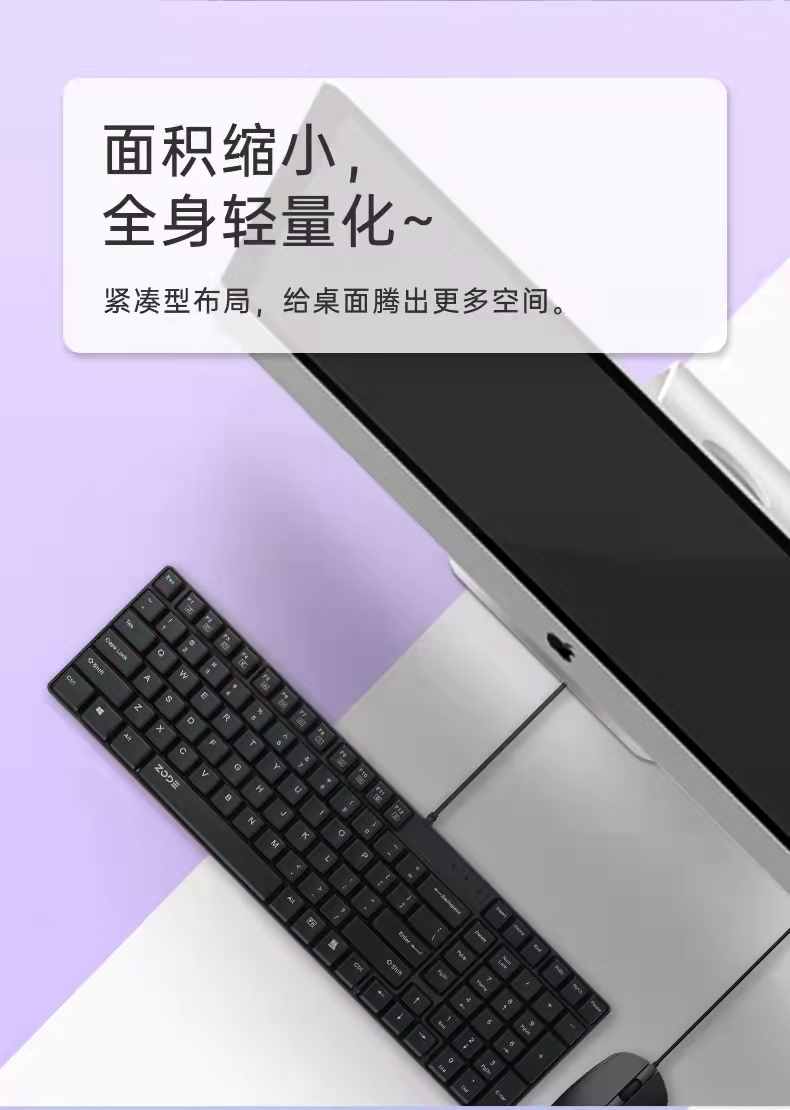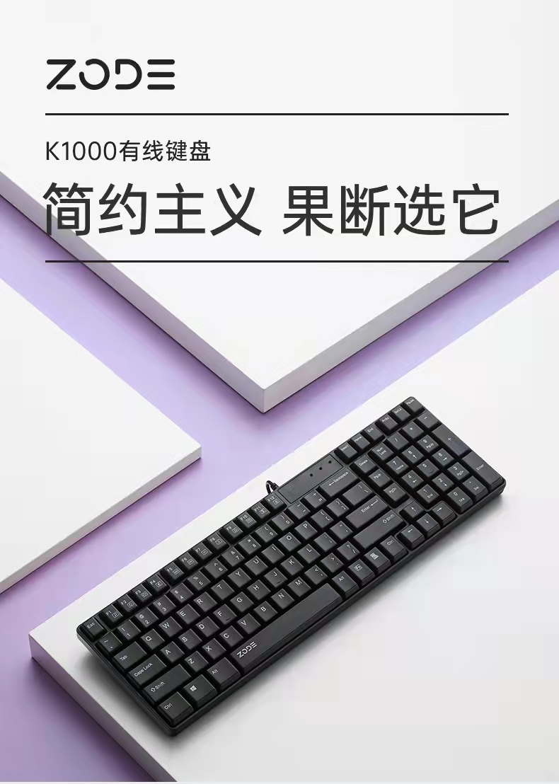 雷柏ZODE有线键盘K1000家用商务办公专用打字静音防水USB台式电脑笔记本小巧便携轻薄电竞游戏
