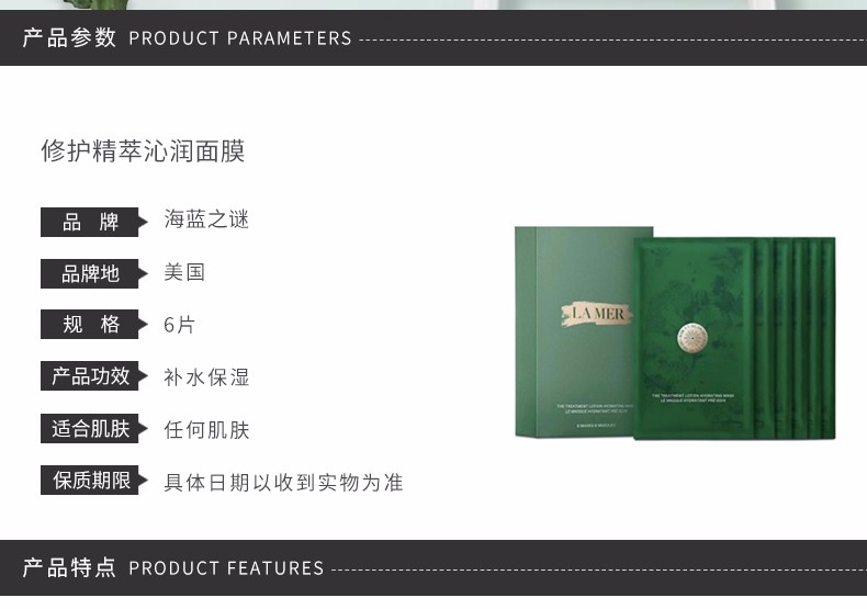 LA MER 海蓝之谜 修护精萃沁润面膜 6片 美国