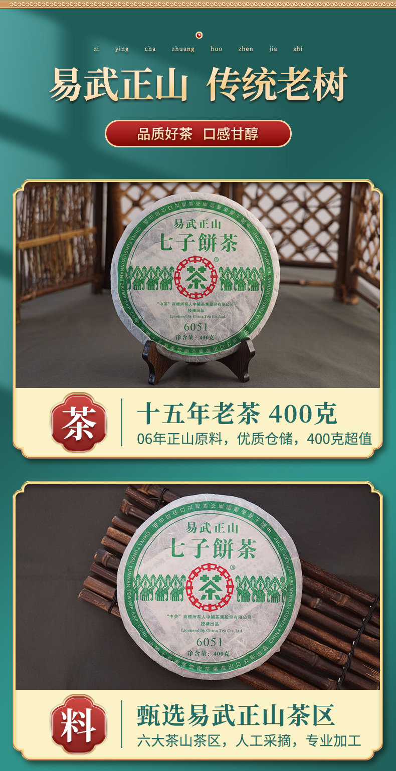 中粮-中茶 2006年6051易武正山七子饼茶云(生茶) 400克/饼/云南干仓直发