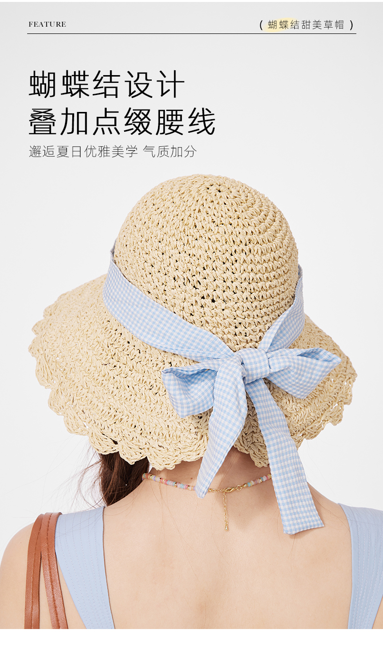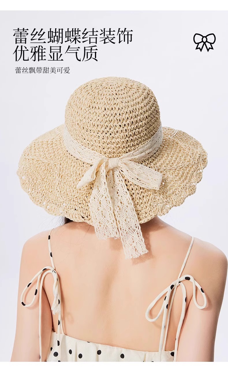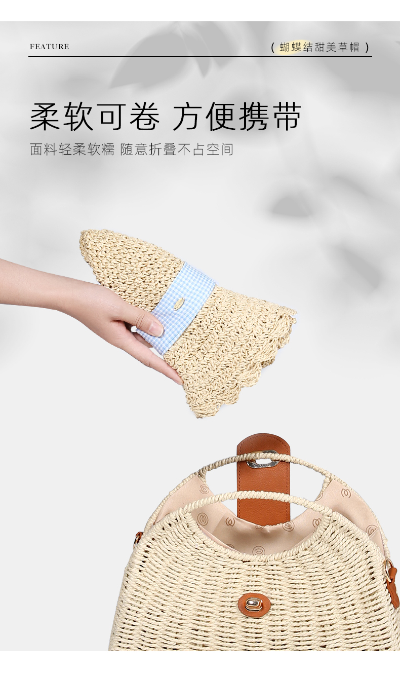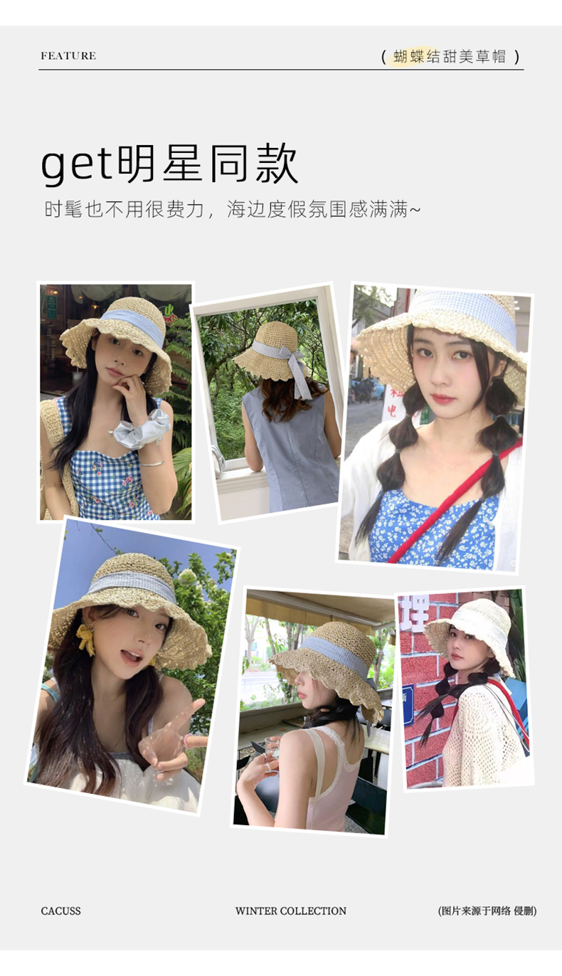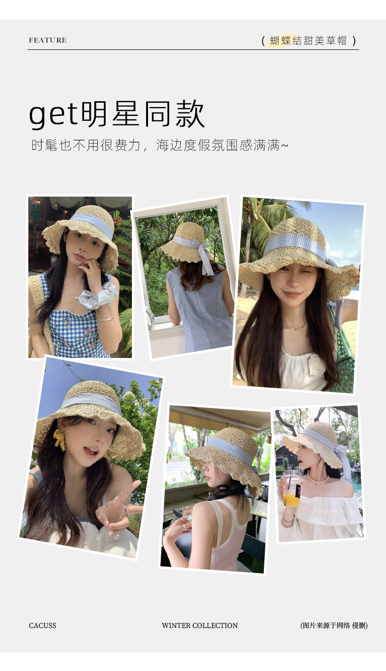 【CACUSS防晒】蝴蝶结花瓣草帽 甜美清新遮阳防晒 手工草编透气舒适 柔软可卷随身携带