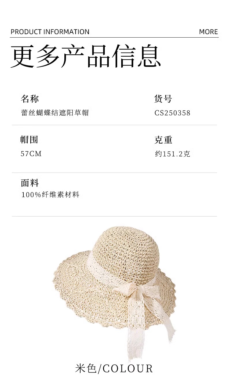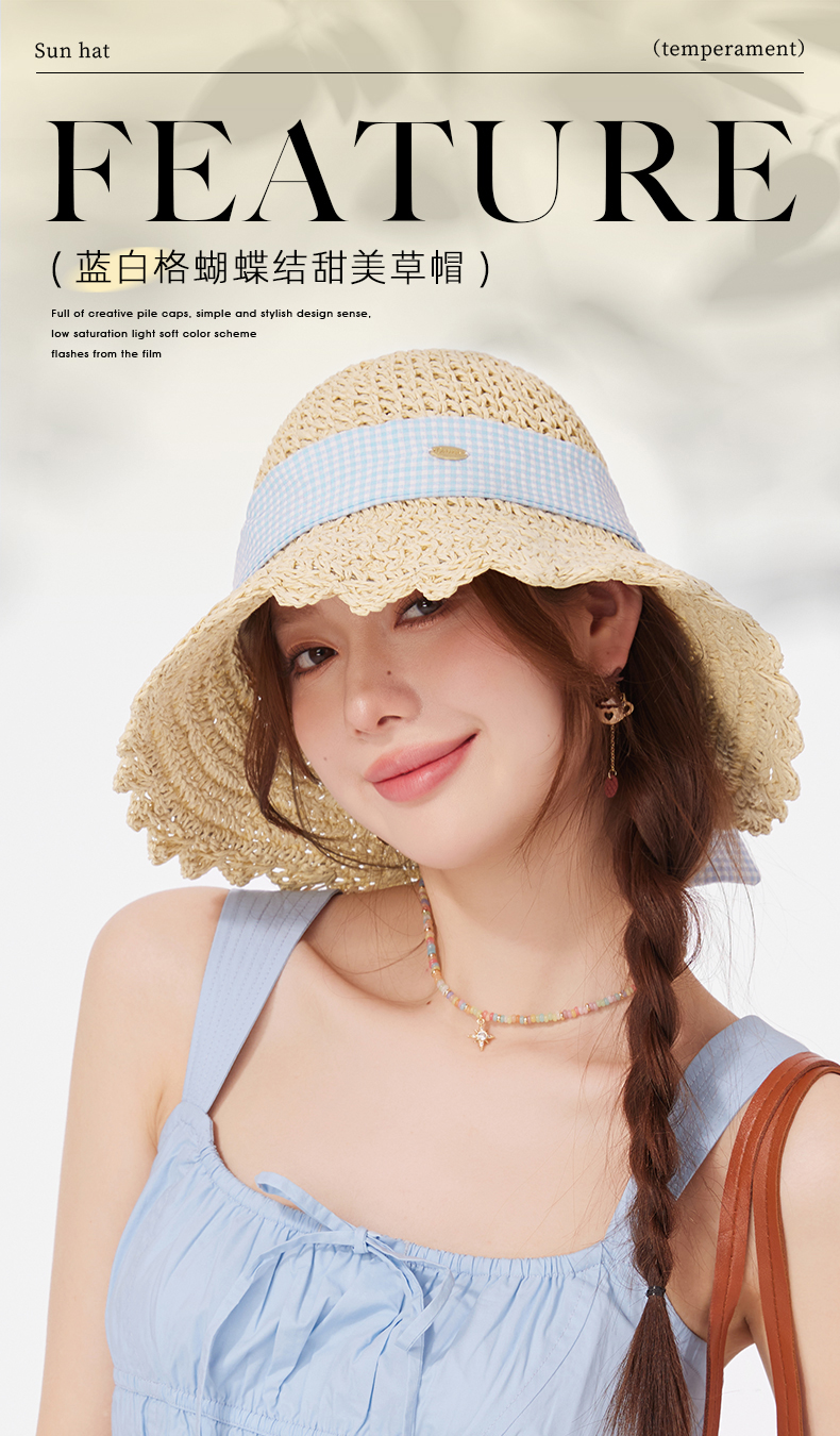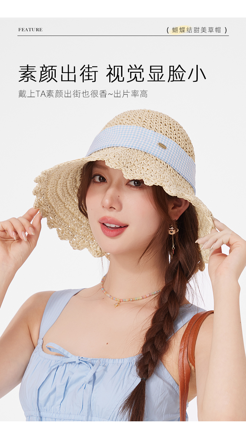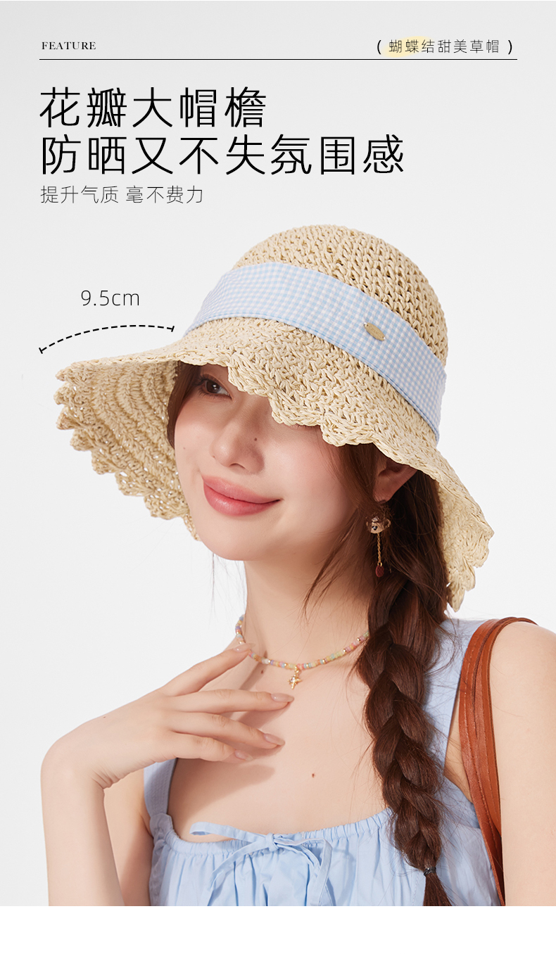 【CACUSS防晒】蝴蝶结花瓣草帽 甜美清新遮阳防晒 手工草编透气舒适 柔软可卷随身携带
