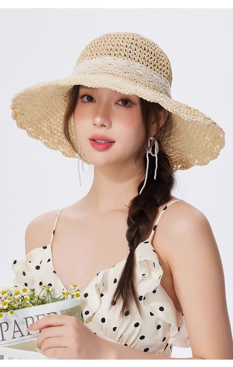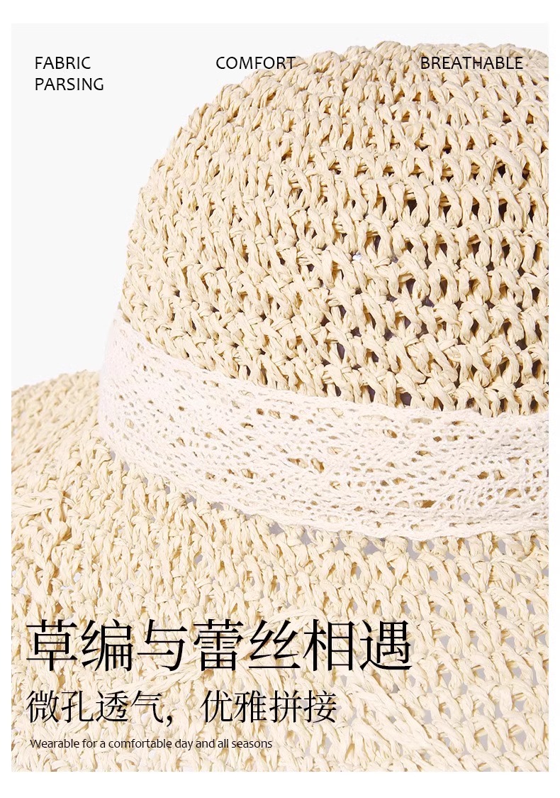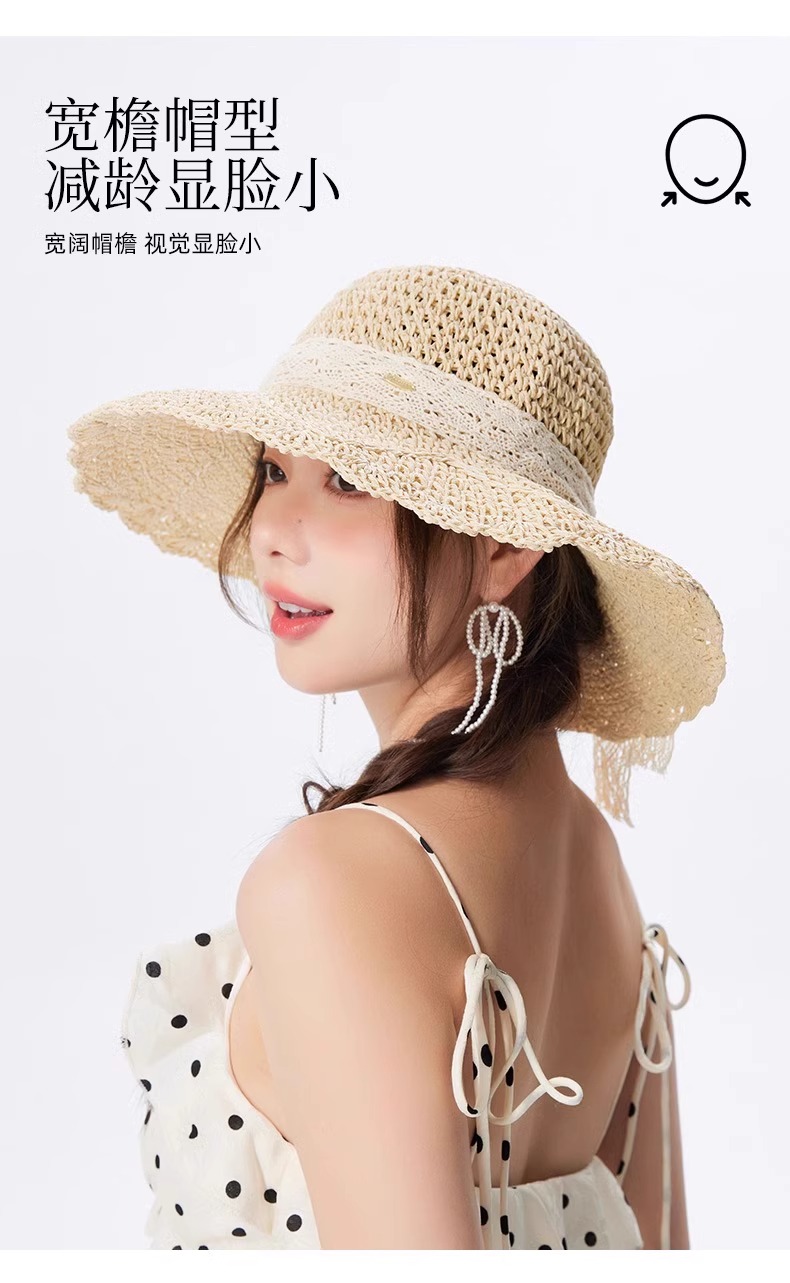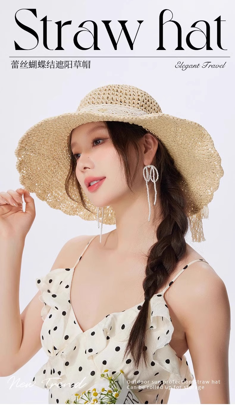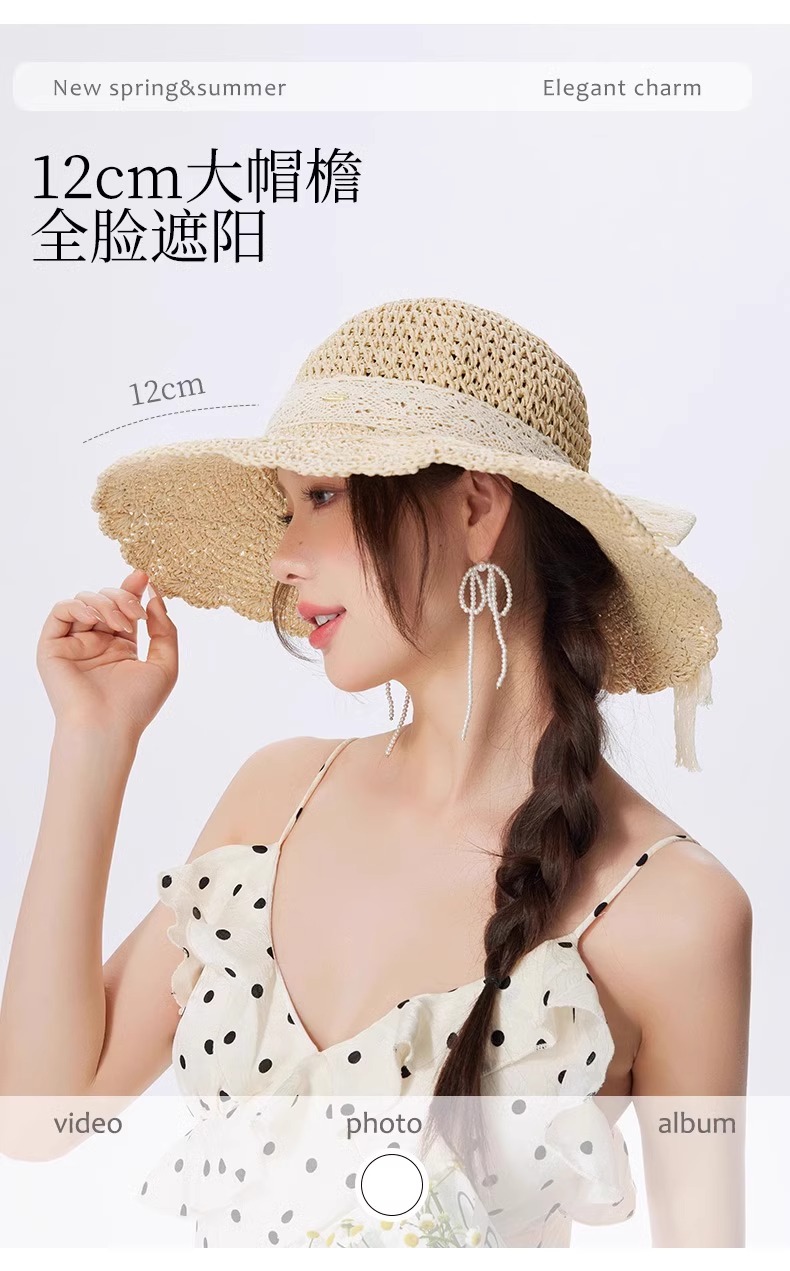 【CACUSS防晒】蝴蝶结花瓣草帽 甜美清新遮阳防晒 手工草编透气舒适 柔软可卷随身携带