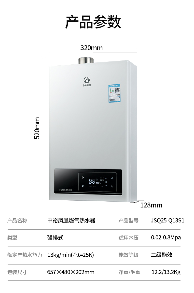 中裕凤凰智能恒温变升燃气热水器JSQ25-Q13S1/JSQ30-Q16S1