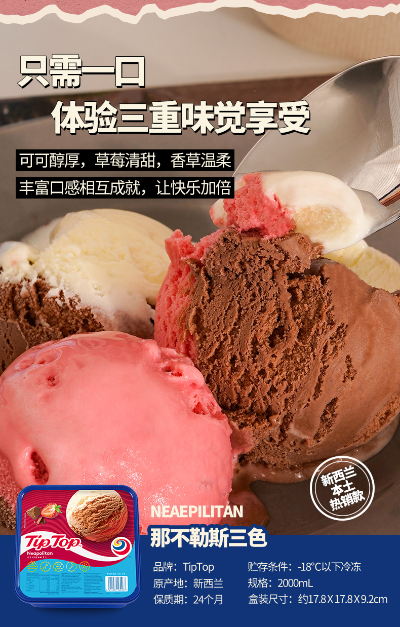 新西兰TIPTOP三色冰淇淋 2L/盒(1盒/2盒可选)