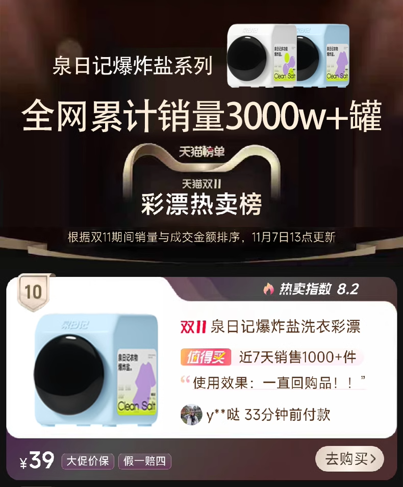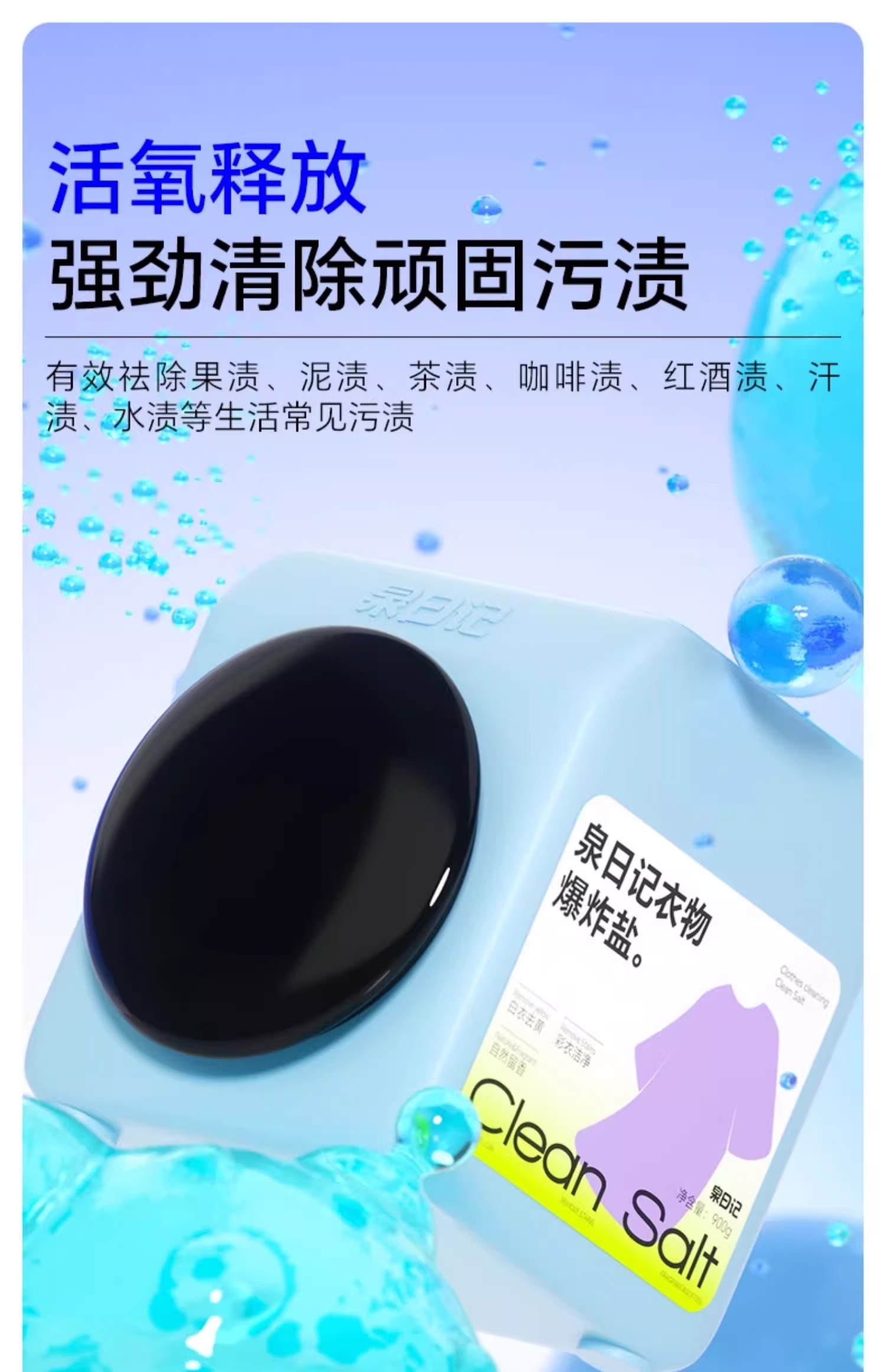 【白衣更干净】 泉日记 衣物爆炸盐🏅顽固黄渍!陈年油污!轻松瓦解 下单即赠15g试用装