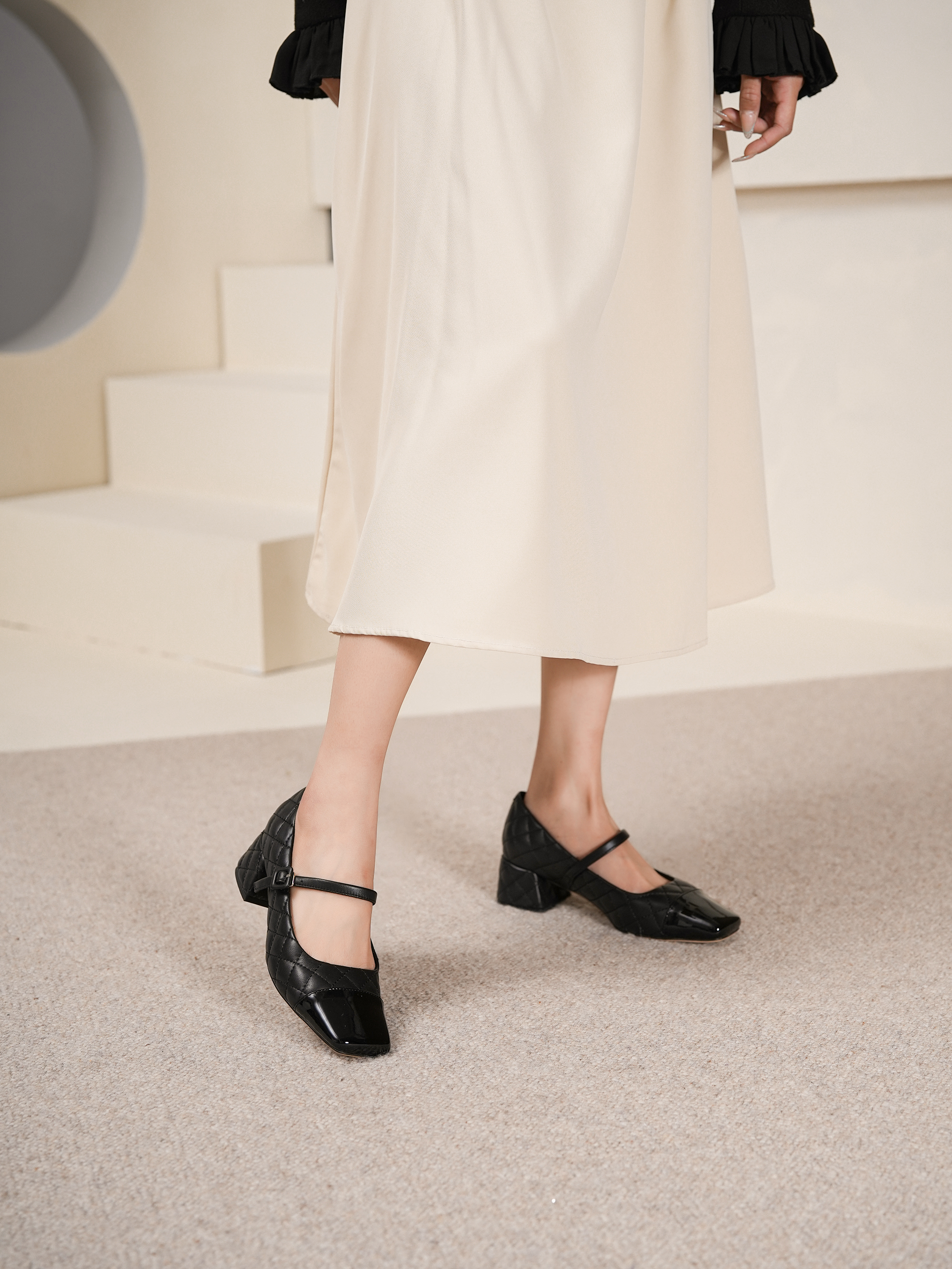 豪麟名鞋迪嘉女鞋玛丽珍鞋羊皮革DJHJA52WP030黑色