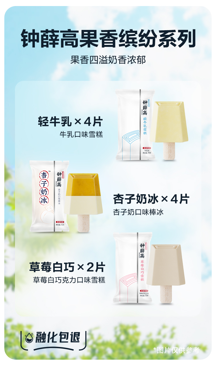 已下架】钟薛高 果香缤纷系列 轻牛乳*4杏子奶冰*4草莓白巧*2 雪糕冰淇淋[福利品]