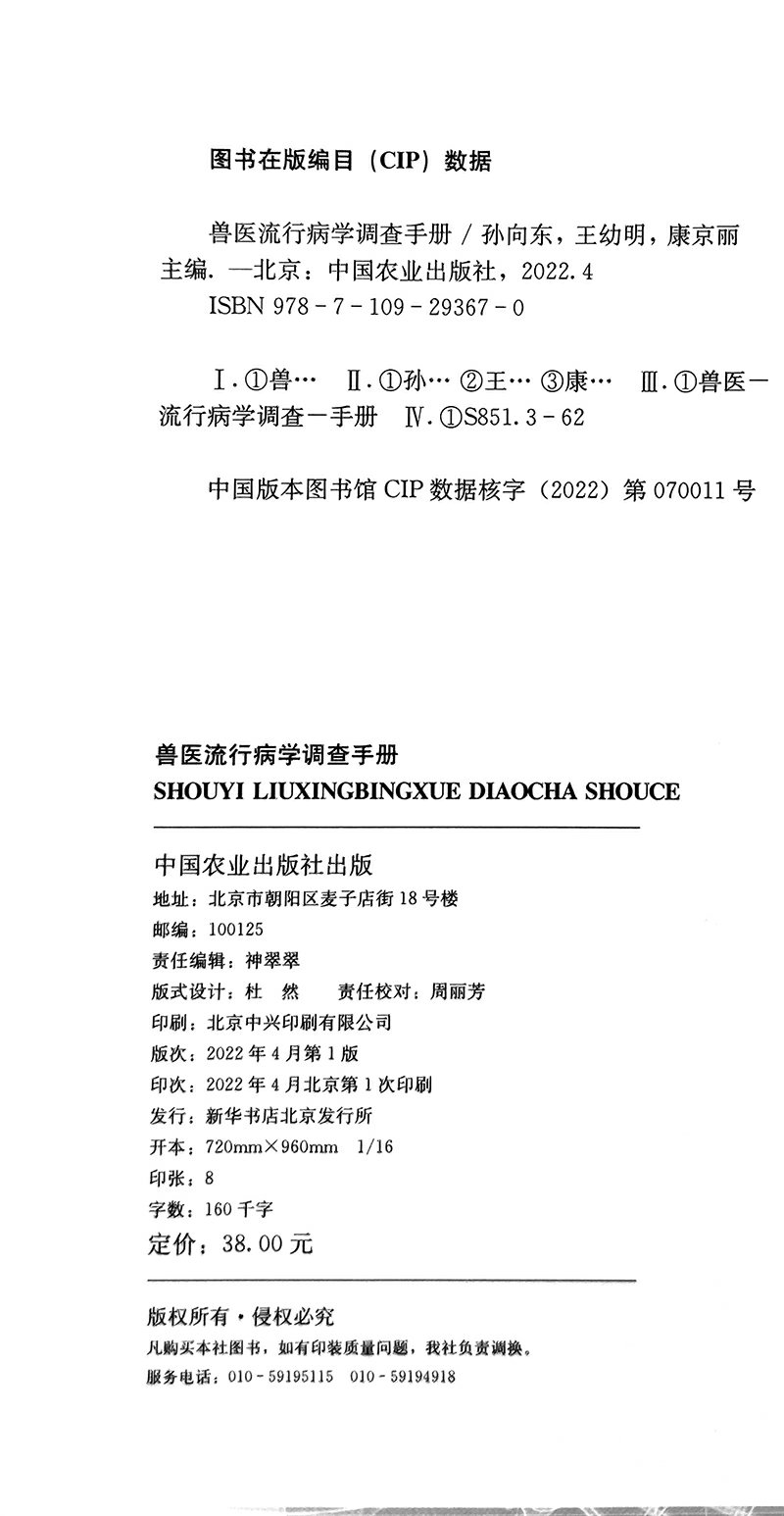 兽医流行病学调查手册 孙向东,王幼明,康京丽 29367 畜牧 动物疾病 宠物 家畜 禽类