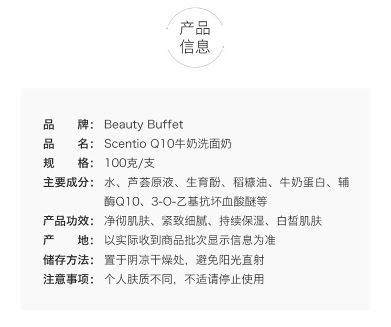 泰国Q10 氨基酸牛奶洗面奶100ml