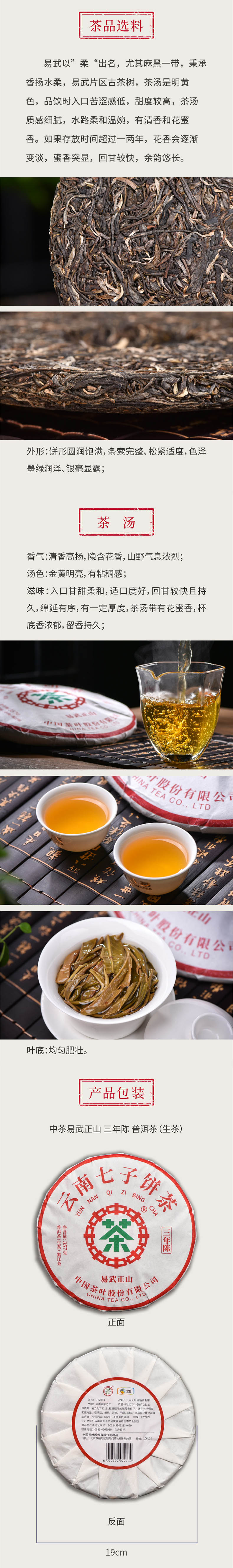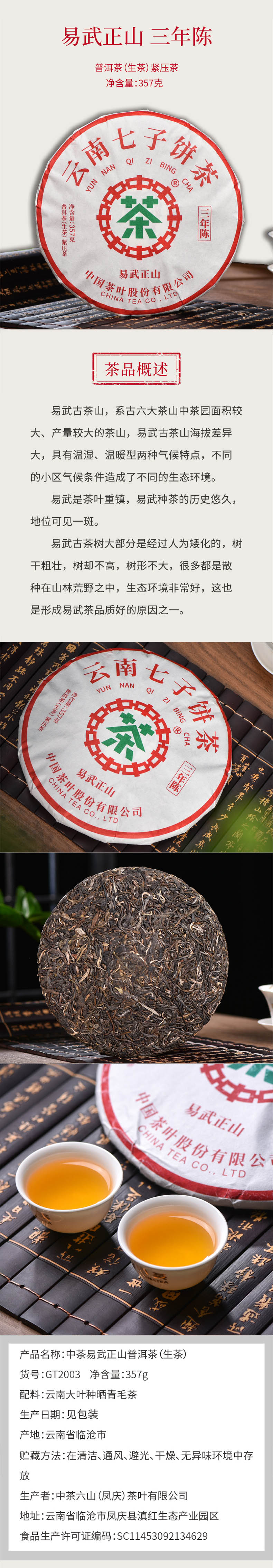 中粮-中茶易武正山三年陈普洱生茶紧压茶饼357g/饼 /云南干仓直发