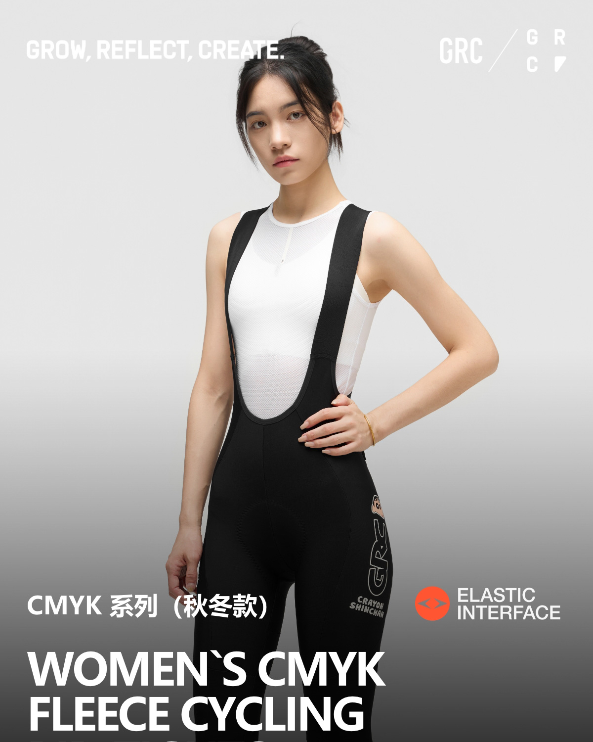 GRC桀骜无尽秋冬新款CMYK系列蜡笔小新抓绒公路背带骑行裤长裤女
