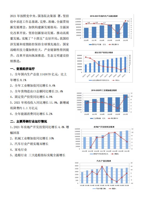 本报告收集整理了36家钢铁上市公司的主要生产经营数据及财务指标,包括钢铁产量、资产、营业收入、成本、利润、负债、研发投入等方面的详细数据,并对数据进行对比分析;对八家重点钢铁企业的财务运行情况、品种结构、产品流向、未来的经营规划进行详细阐述;分析宏观和行业政策对企业和行业的影响;探讨行业热点焦点问题,对钢铁行业整体运行情况及企业和行业发展趋势进行分析预测。