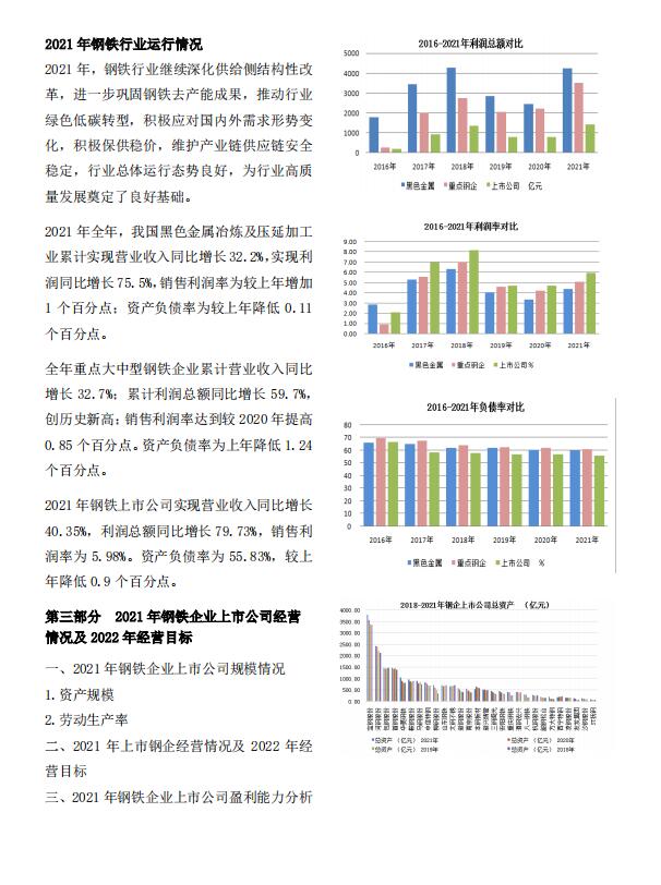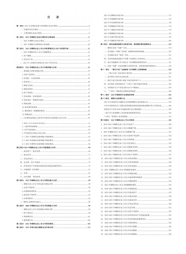 《钢铁上市公司财务分析报告》(2022版)是针对钢铁上市公司生产规模、盈利能力、偿债能力、发展能力和营运能力等进行对比分析的研究分析报告。