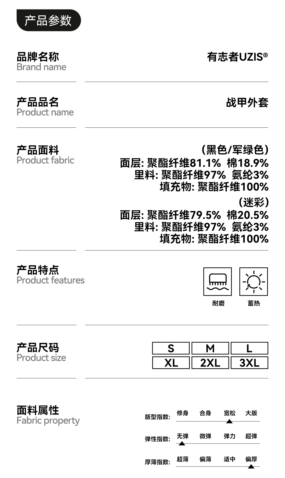 有志者UZIS篮球美式潮流运动外男套保暖休闲宽松棉服夹克秋冬战甲