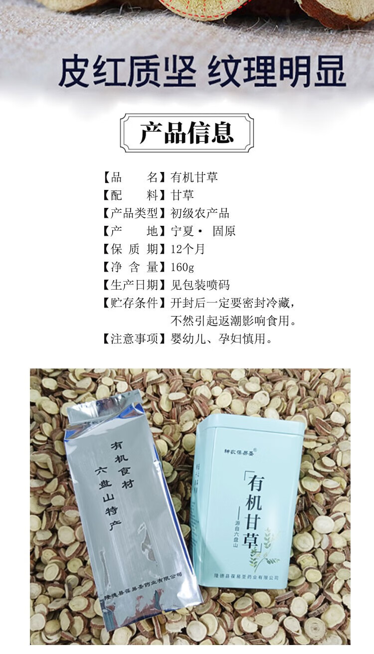神农葆易圣有机甘草 160g盒装 六盘山特产煮汤泡水