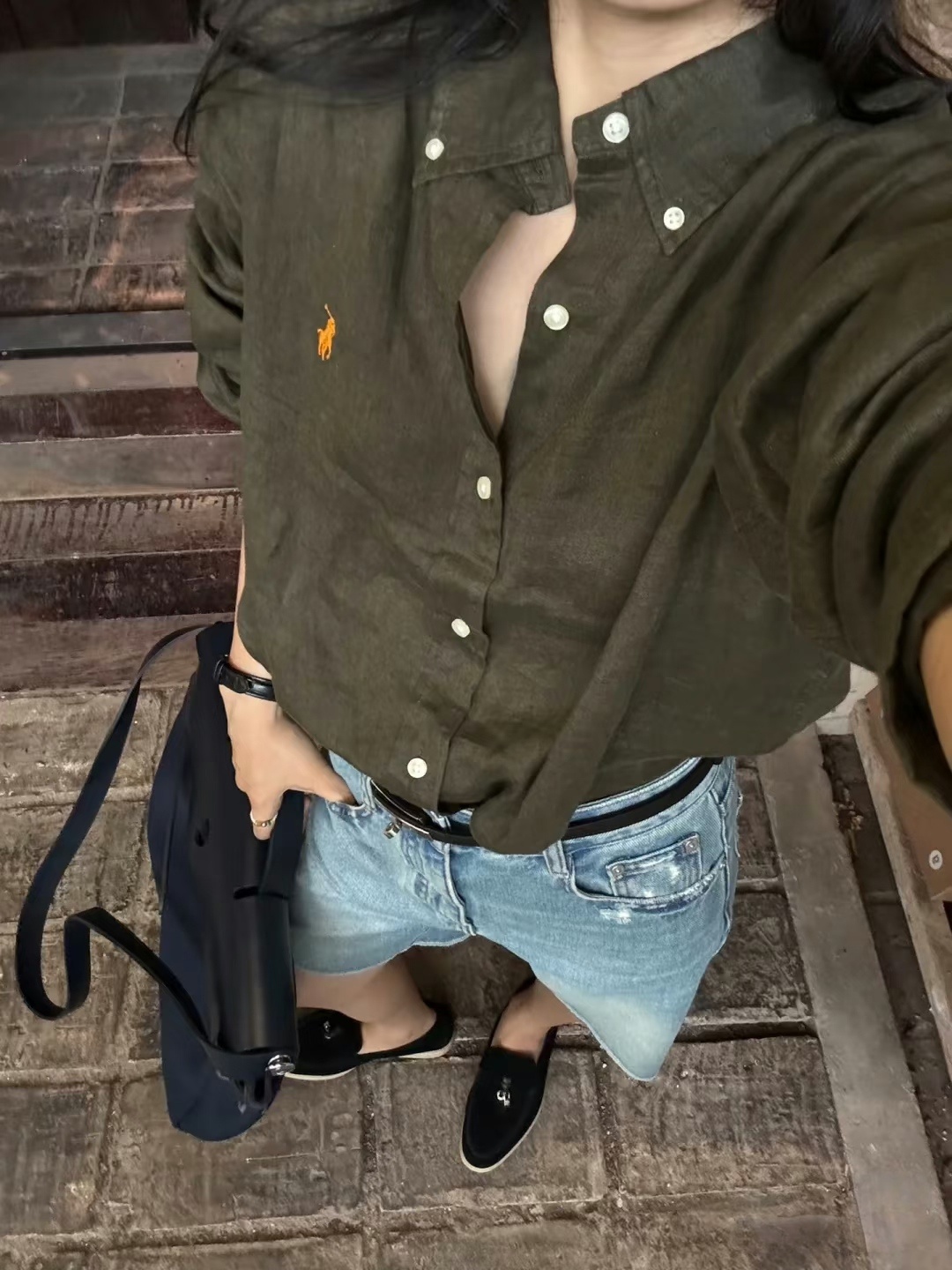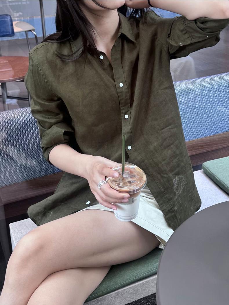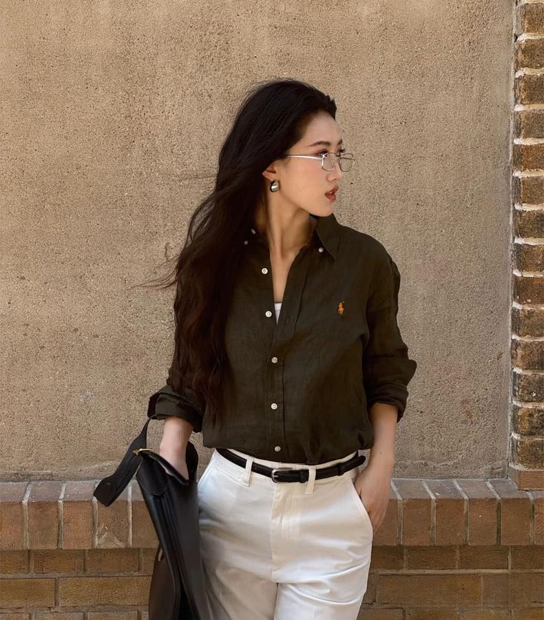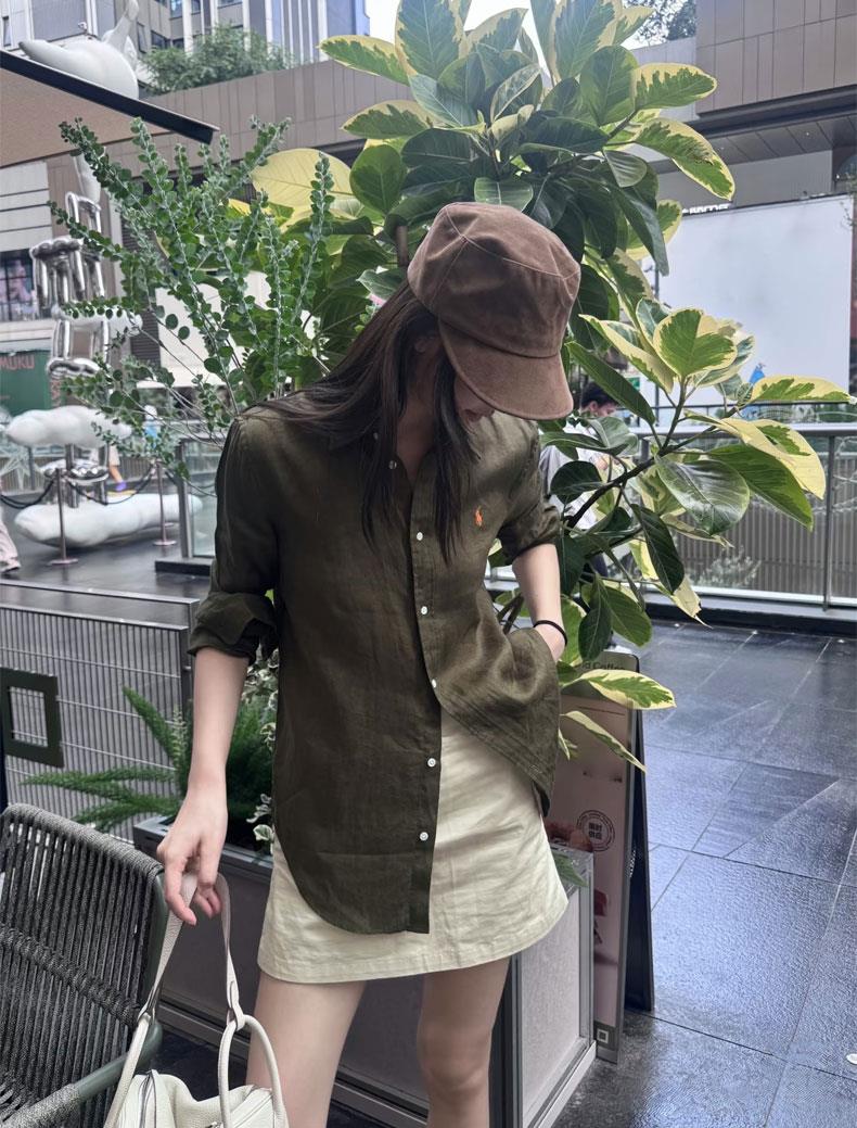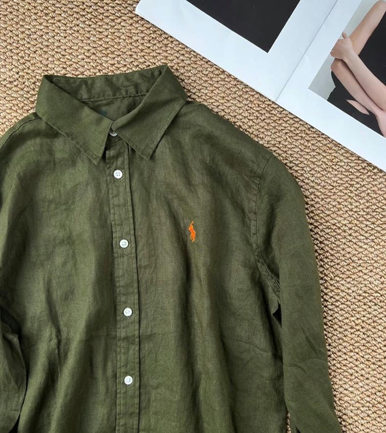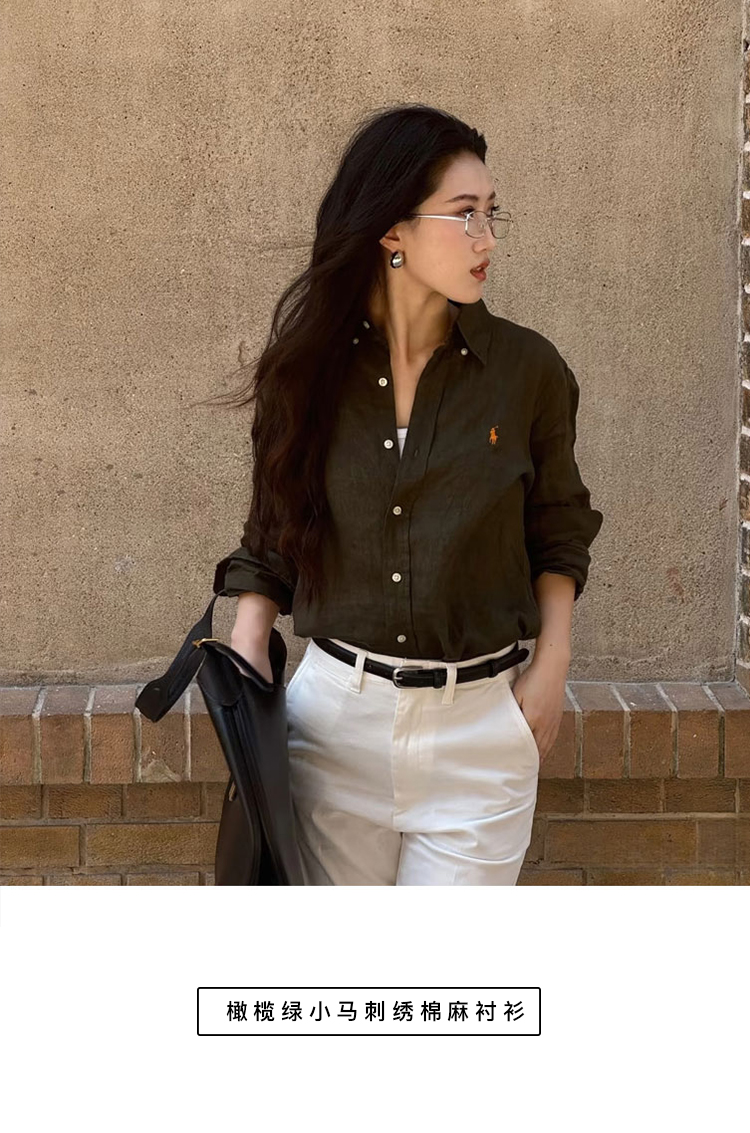 橄榄绿小马刺绣棉麻衬衫,春夏秋三季都实穿的时髦单品,小马精致刺绣logo【3-5天发货,周末顺延】【G】