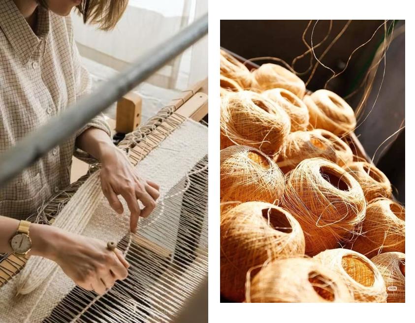 肉眼可看的独特棉麻肌理感,就像植物的纹理,有“粗布麻衣”的砂感,同时带着恰到好处的光泽,含蓄而热烈,充满了自然的气息,让你忍不住用手摸。
