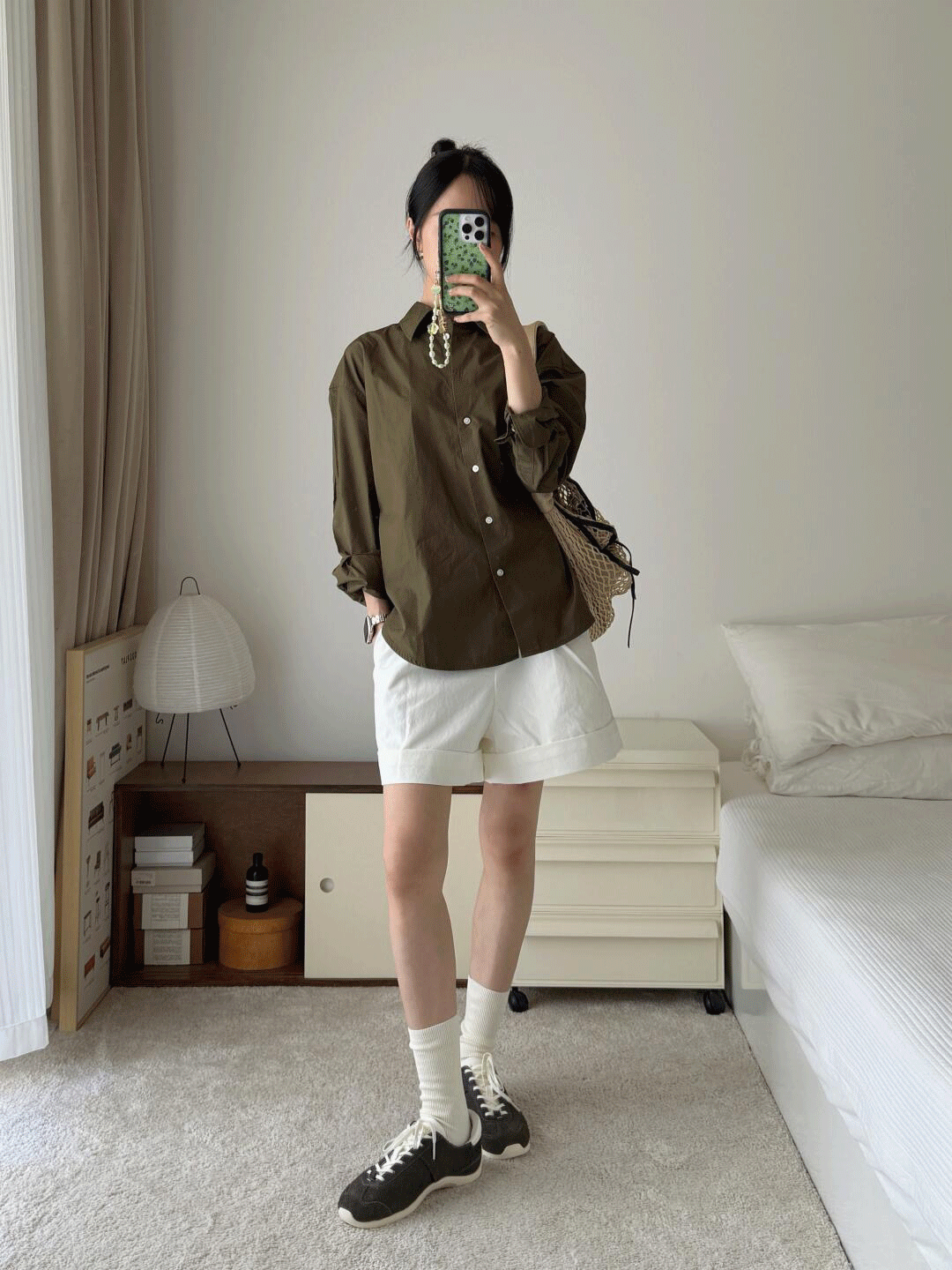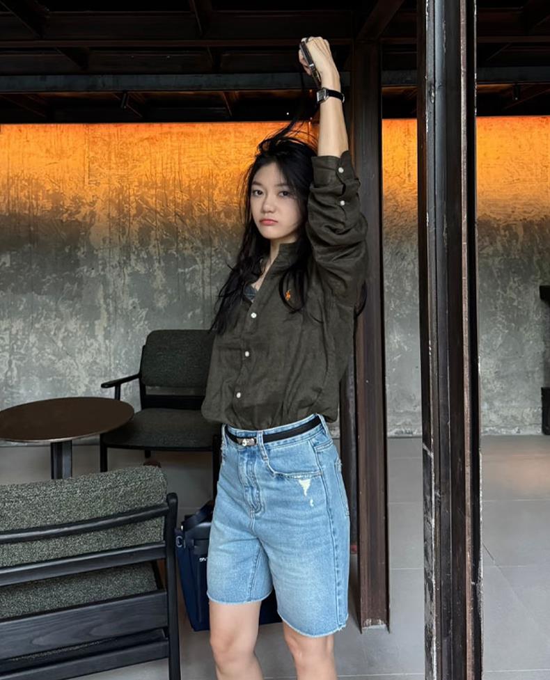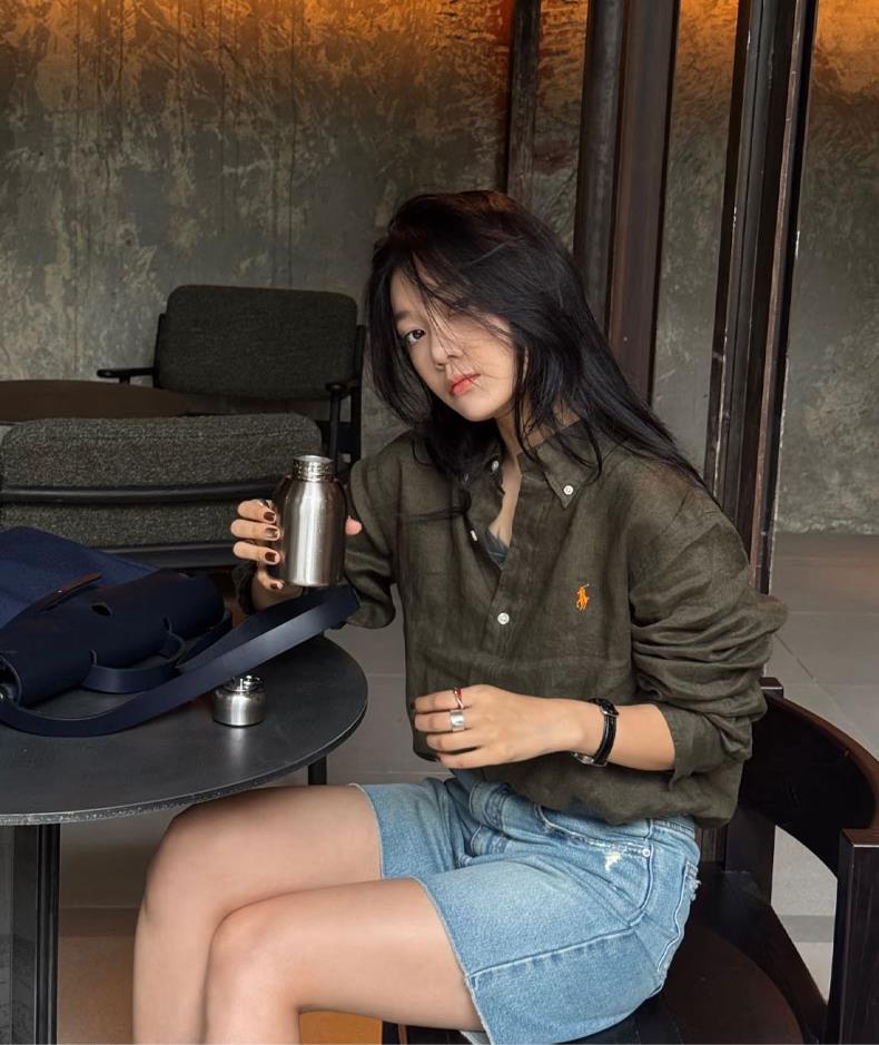 橄榄绿色衬衫真的有一种魔力,真的是显白小能手。