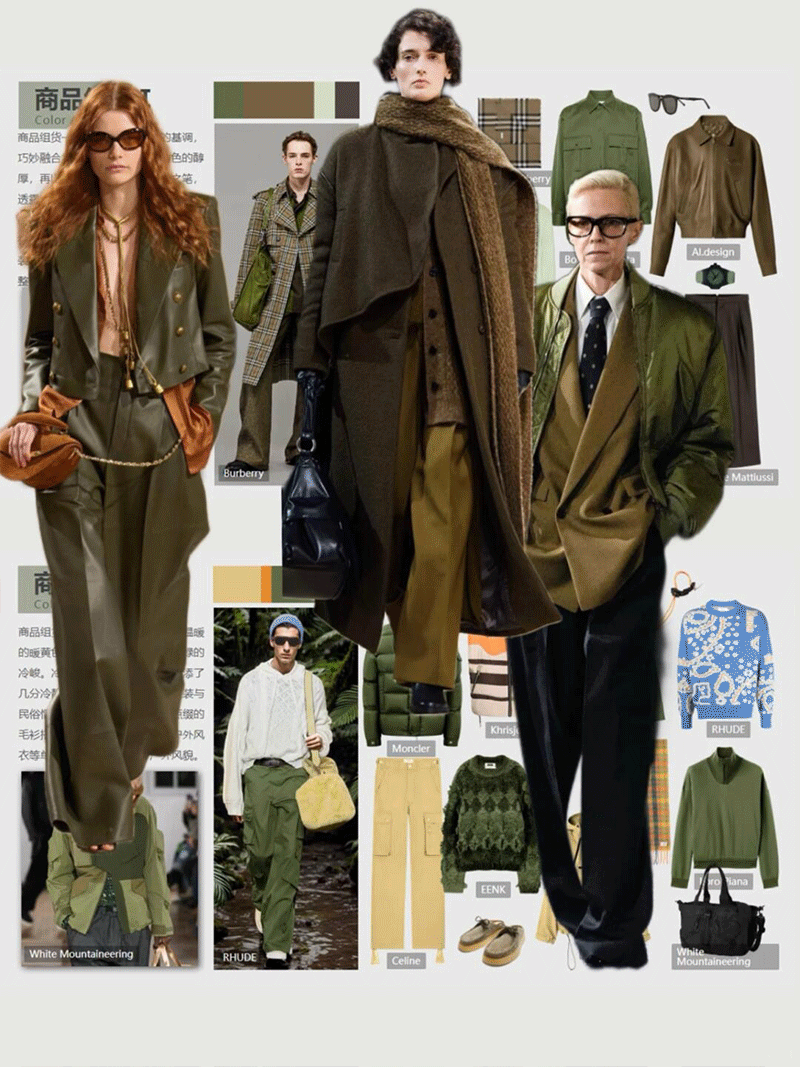 相比于卡其色的低调,以及多巴胺或者金黄色系的张扬和高调,橄榄绿悄然为秋日增添一抹沉稳但有个性的色彩。