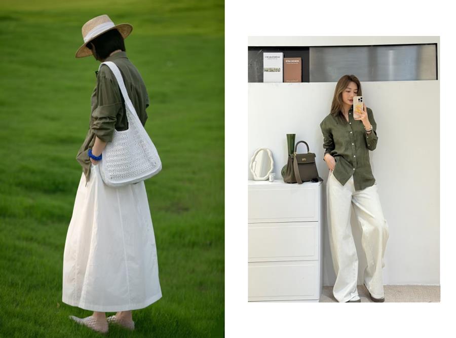 在时尚轮回迭代中,橄榄绿衬衫始终占据高级感营造的关键配色席位,将「松弛」和「精致」轻松拿捏。