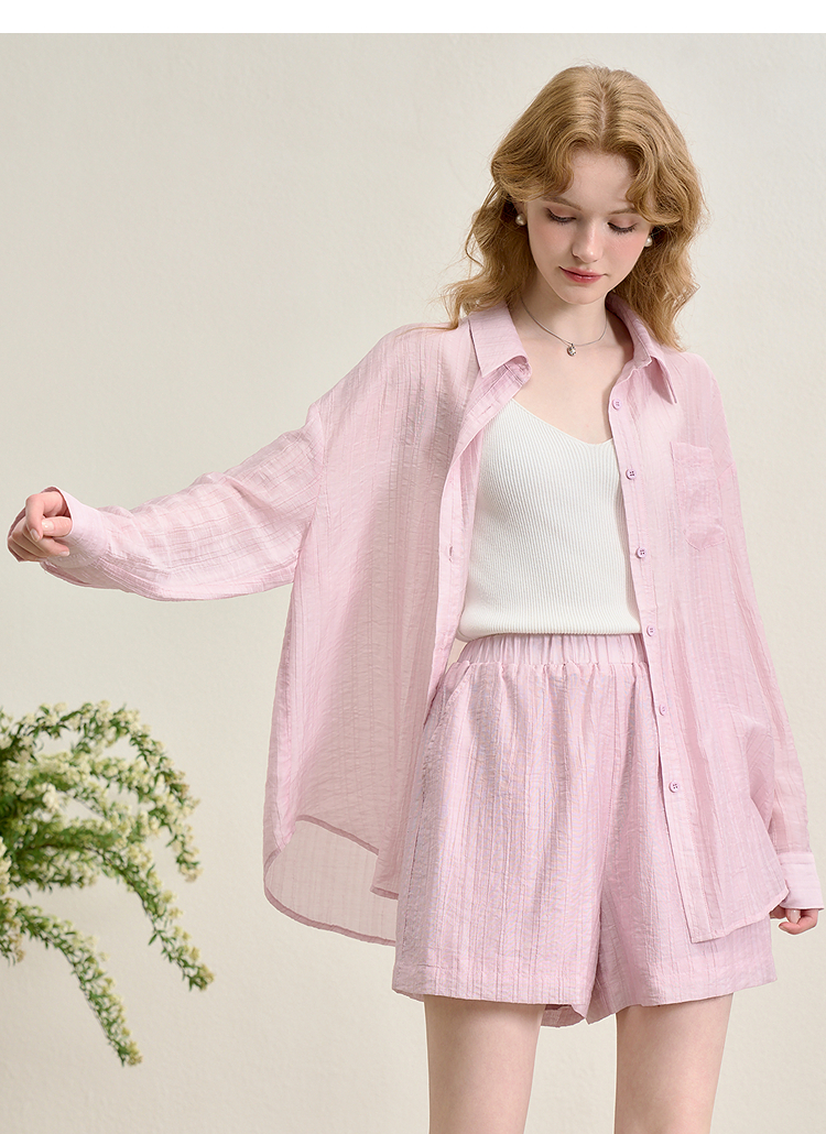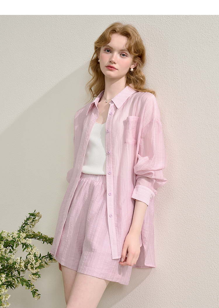 【欧若风穿搭】天丝轻薄套装女春夏衬衫搭短裤两件套V0850325