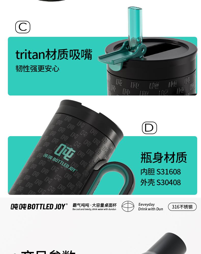 【霸气吨吨】吸管便携式大容量保温杯旅行健身手持防摔简约