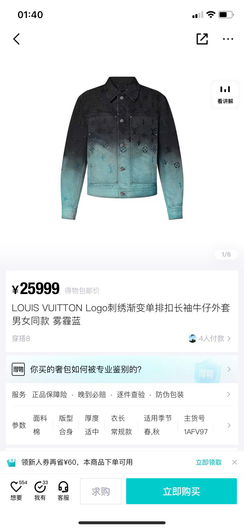 新品1V 24FW 渐变牛仔刺绣外套(正确版)