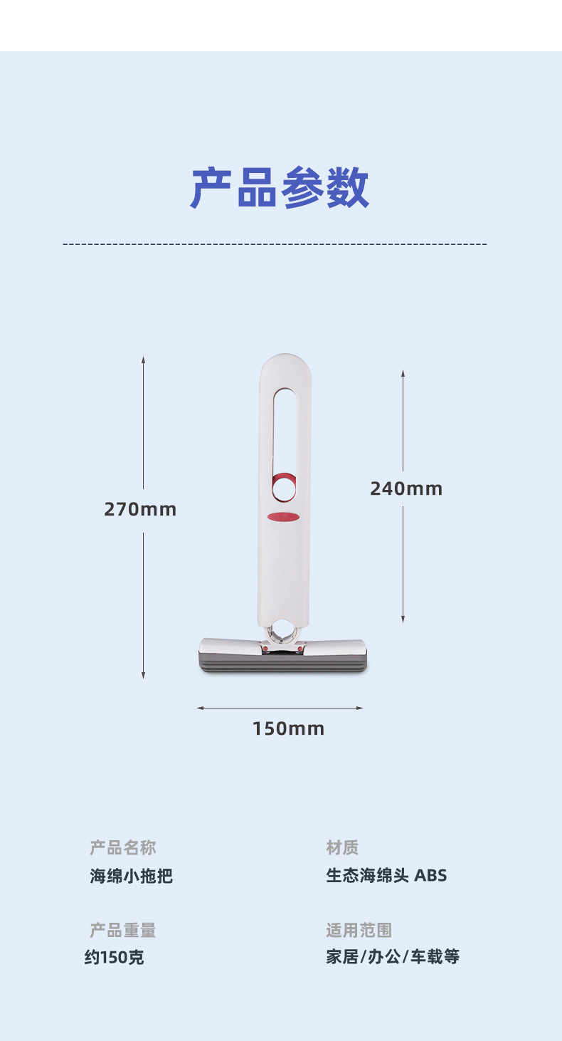 轻巧便携,桌面旋转,让家务更加方便。这款迷你小拖把采用塑料材质,让你解放双手,免手洗拖把,不再烦恼清洁卫生问题。适用于厨房、卫生间等多种场合,让清洁变得更加简单快捷!