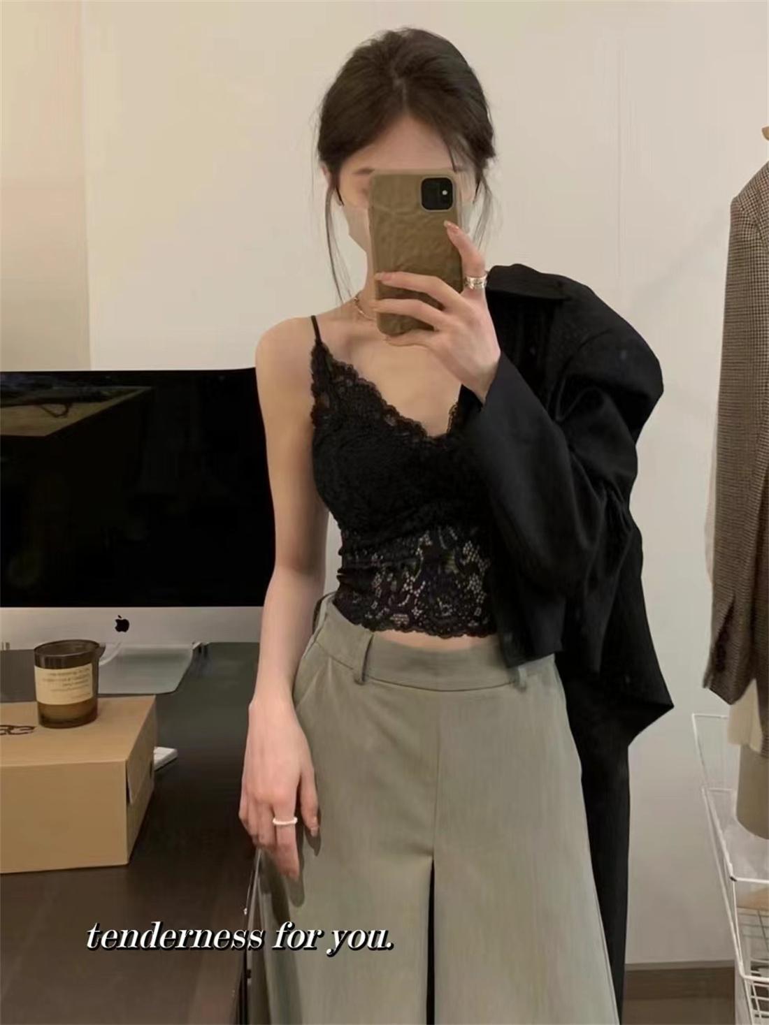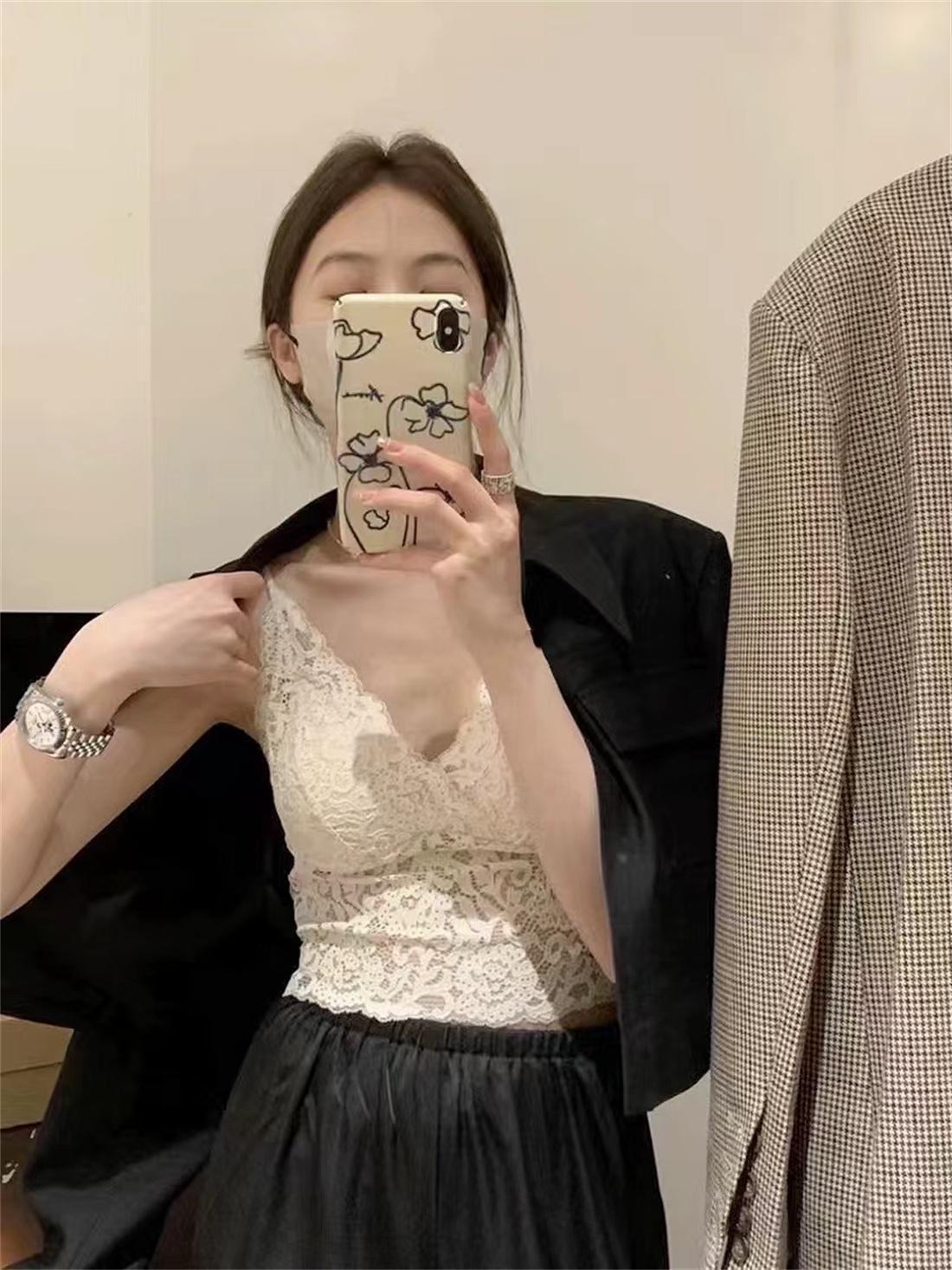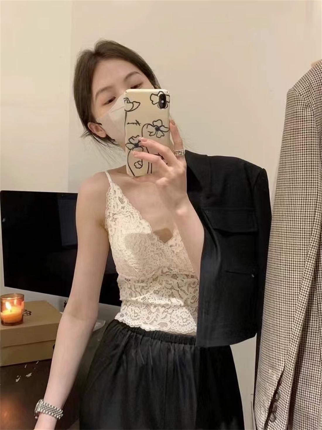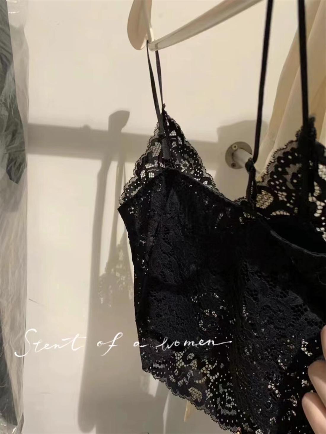 【2件套!法式浪漫!度假蕾丝】 蕾丝美背吊带 外穿内搭背心带胸垫文胸 一体式内衣外穿打底