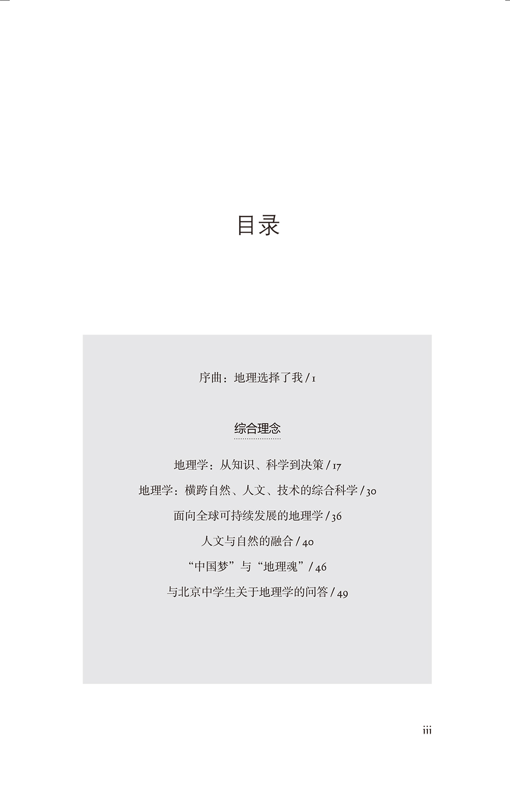 本书是该系列中的第六本,作者傅伯杰是国内著名地理学家、中国科学院院士,长期从事地理学、景观生态学研究。作者回首其过往的地理学研究和教学经历,从一些观点性短文和笔记中选择了近30篇,整理成本书。全书主体为“综合理念”“空间与过程”“系统思维”“地理学与社会”四个部分,最前有前言、作者自序,最后有作者挚友为本书撰写的跋。全书反映了地理学的综合思维、系统方法和社会价值,呈现了作者重要的研究经历、成果,展现了作者从治学过程中感悟到的地理学“综合”的灵魂和魅力。