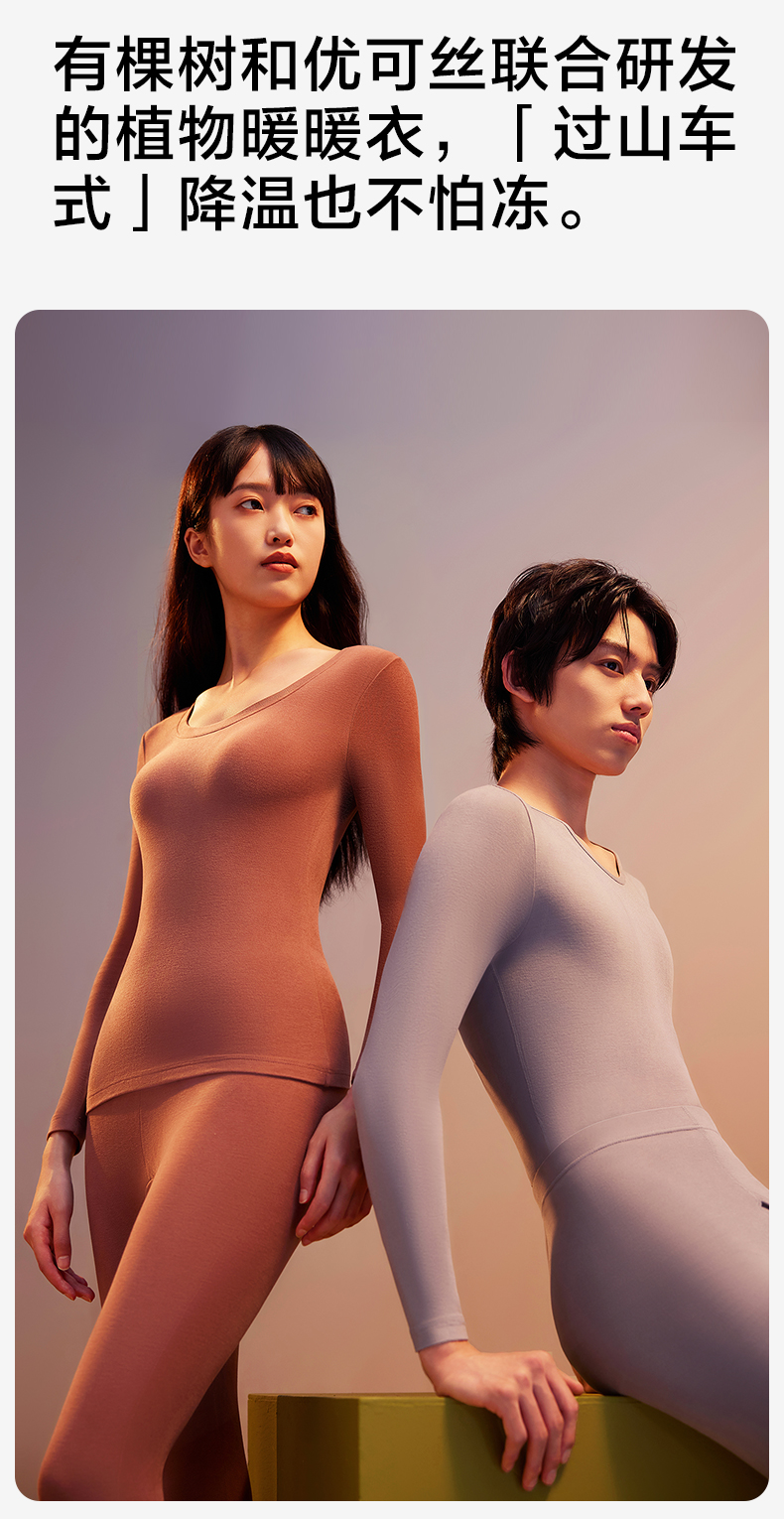 有棵树植物暖暖圆领秋衣秋裤情侣保暖内衣套装-QW01003