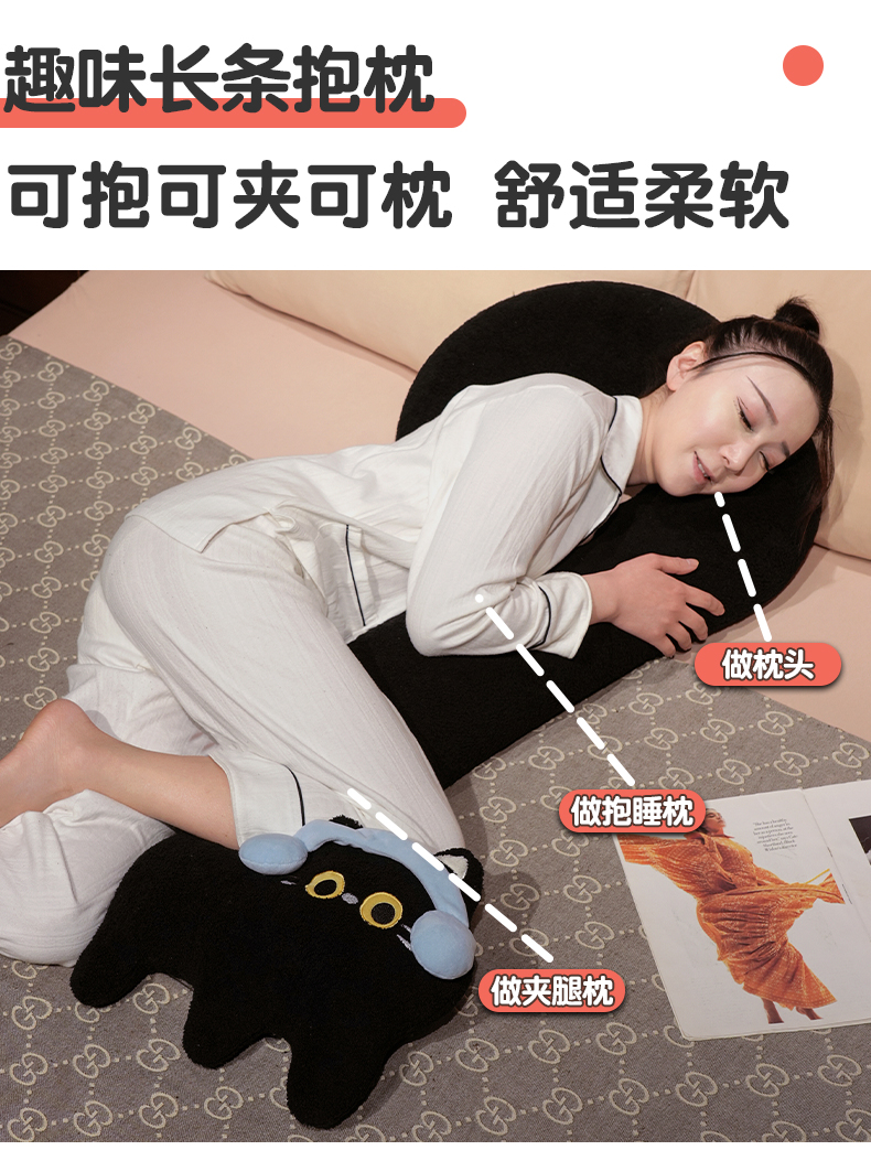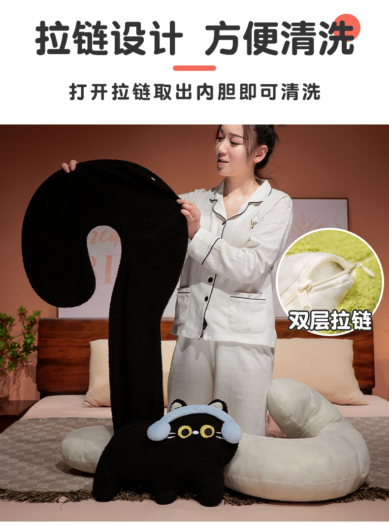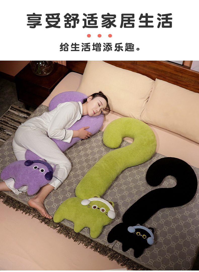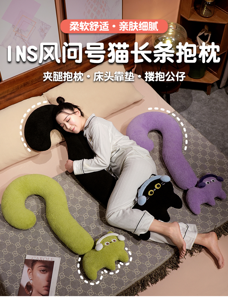自然醒INS风问号猫长条睡觉抱枕创意睡觉女生沙发客厅靠枕毛绒脖子午睡枕办公室QYL