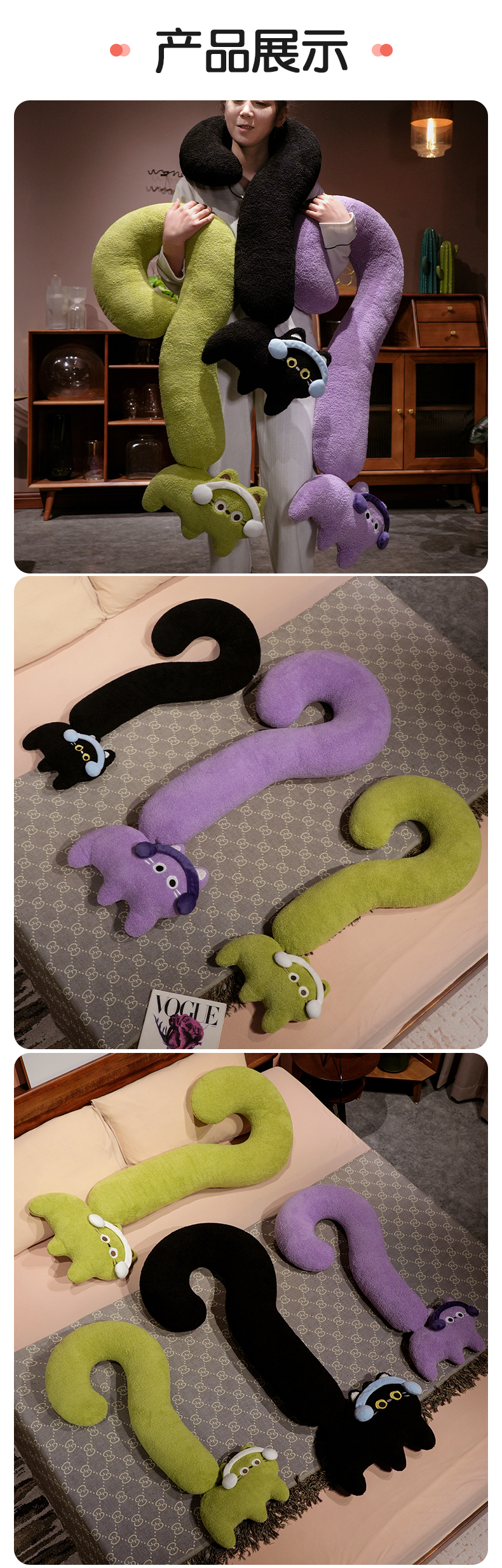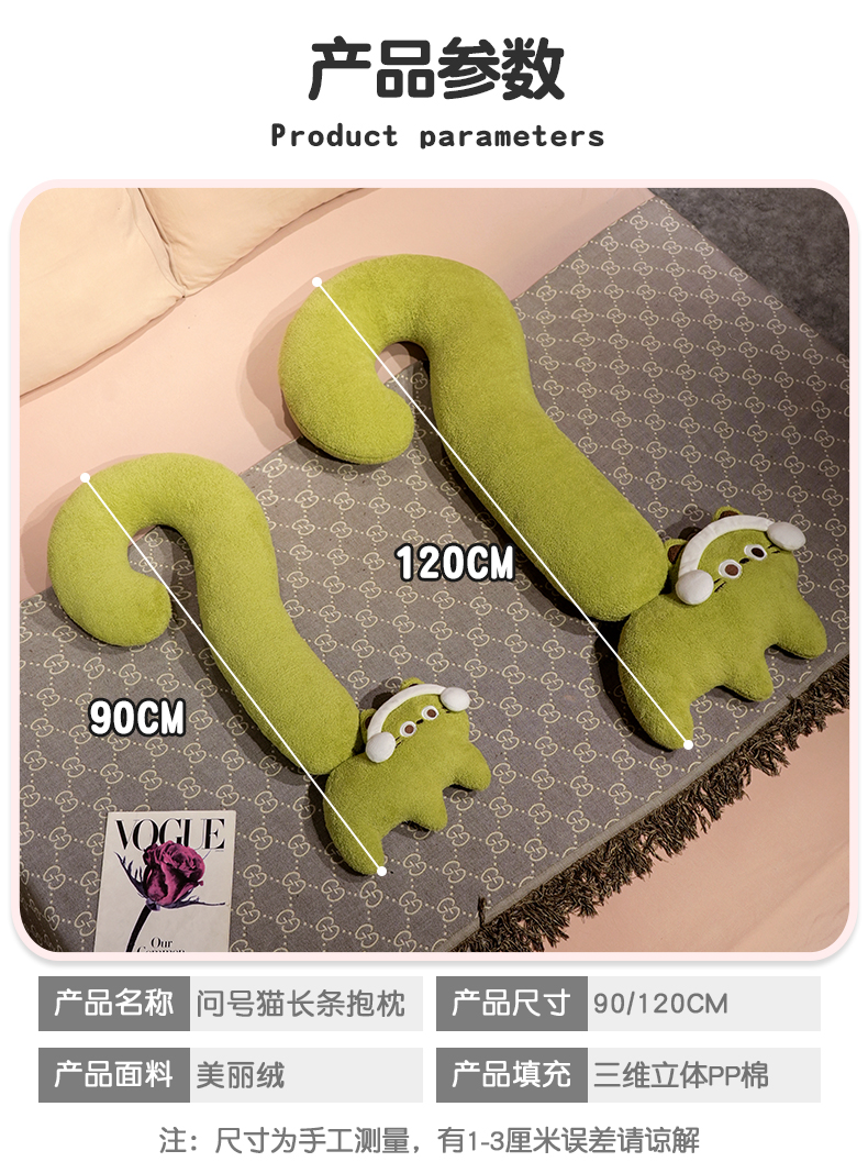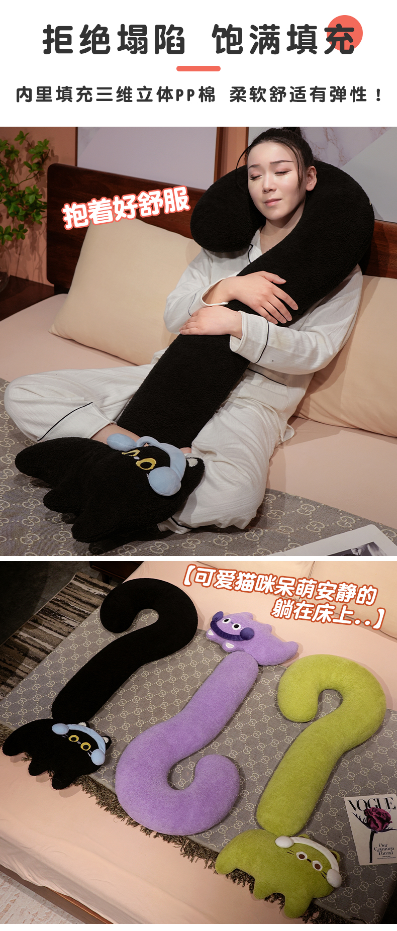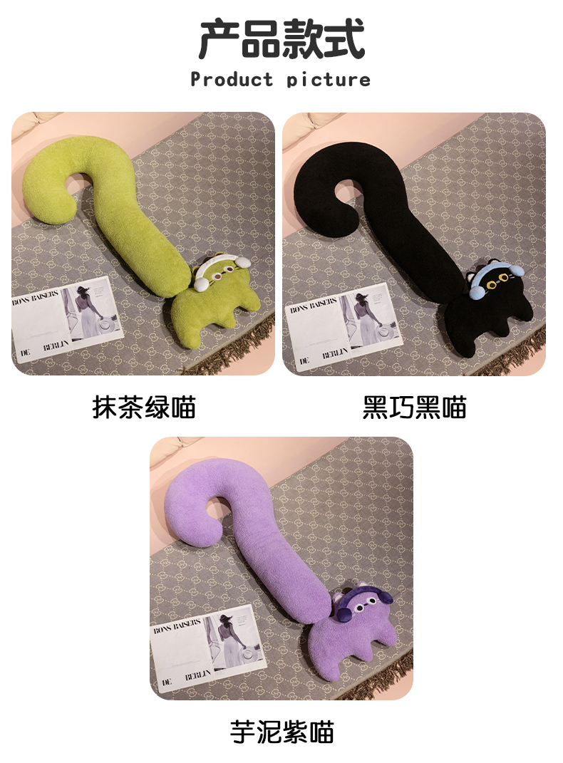 自然醒INS风问号猫长条睡觉抱枕创意睡觉女生沙发客厅靠枕毛绒脖子午睡枕办公室QYL