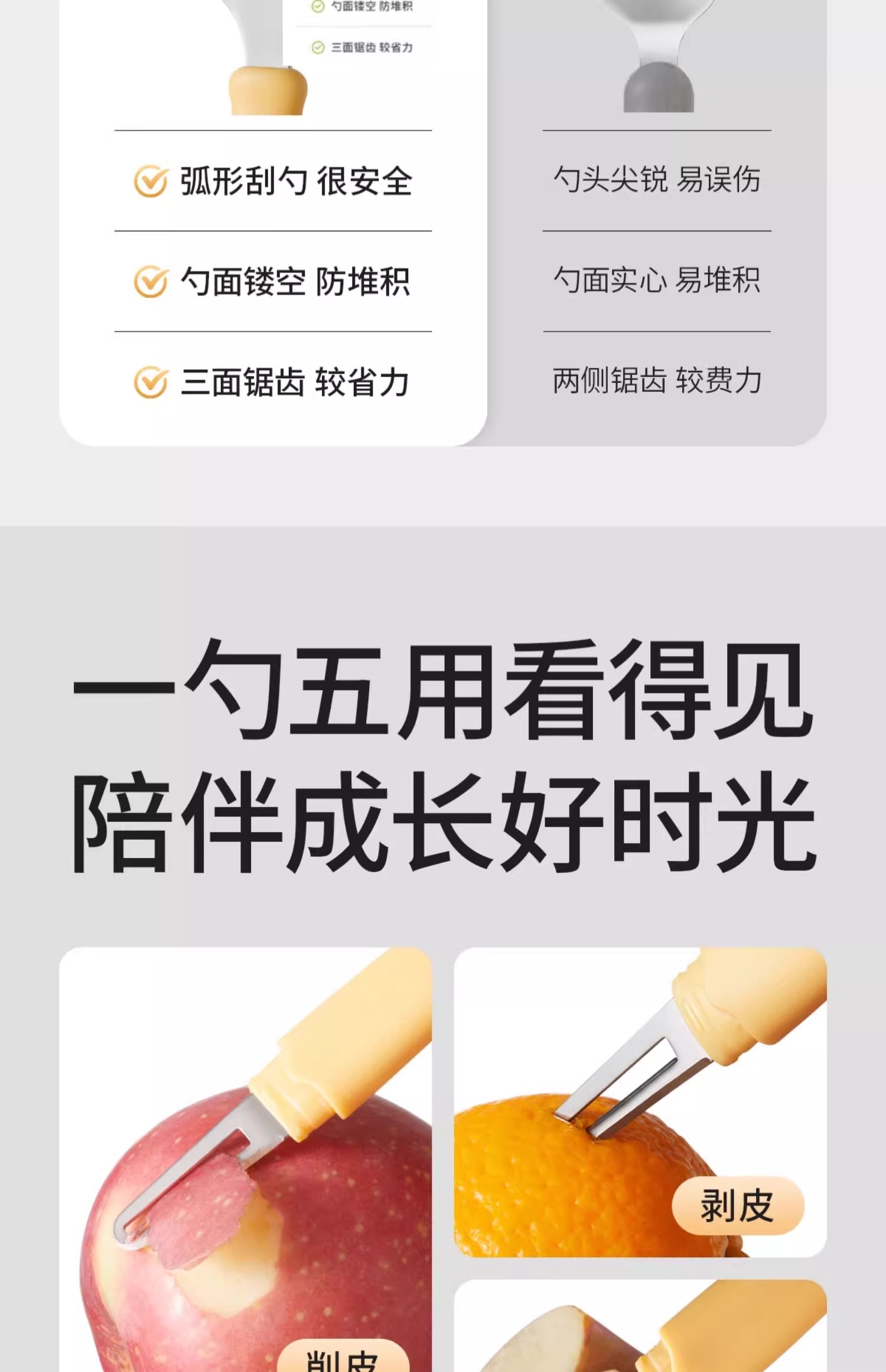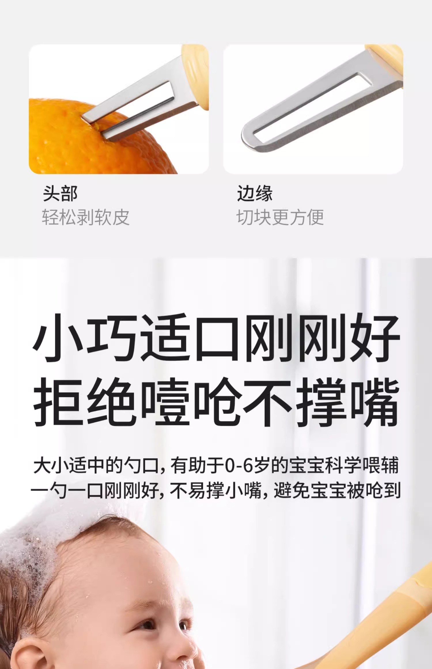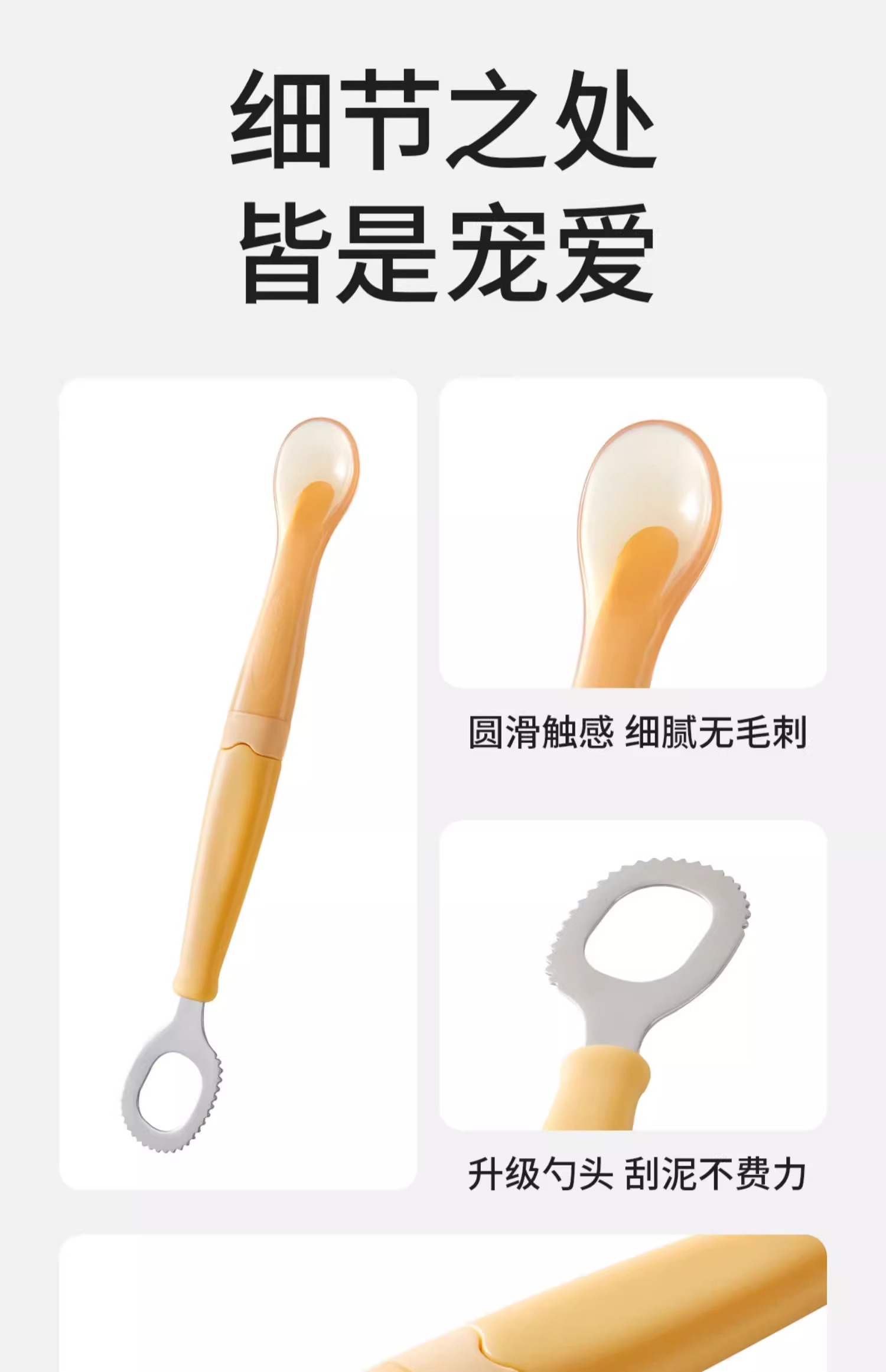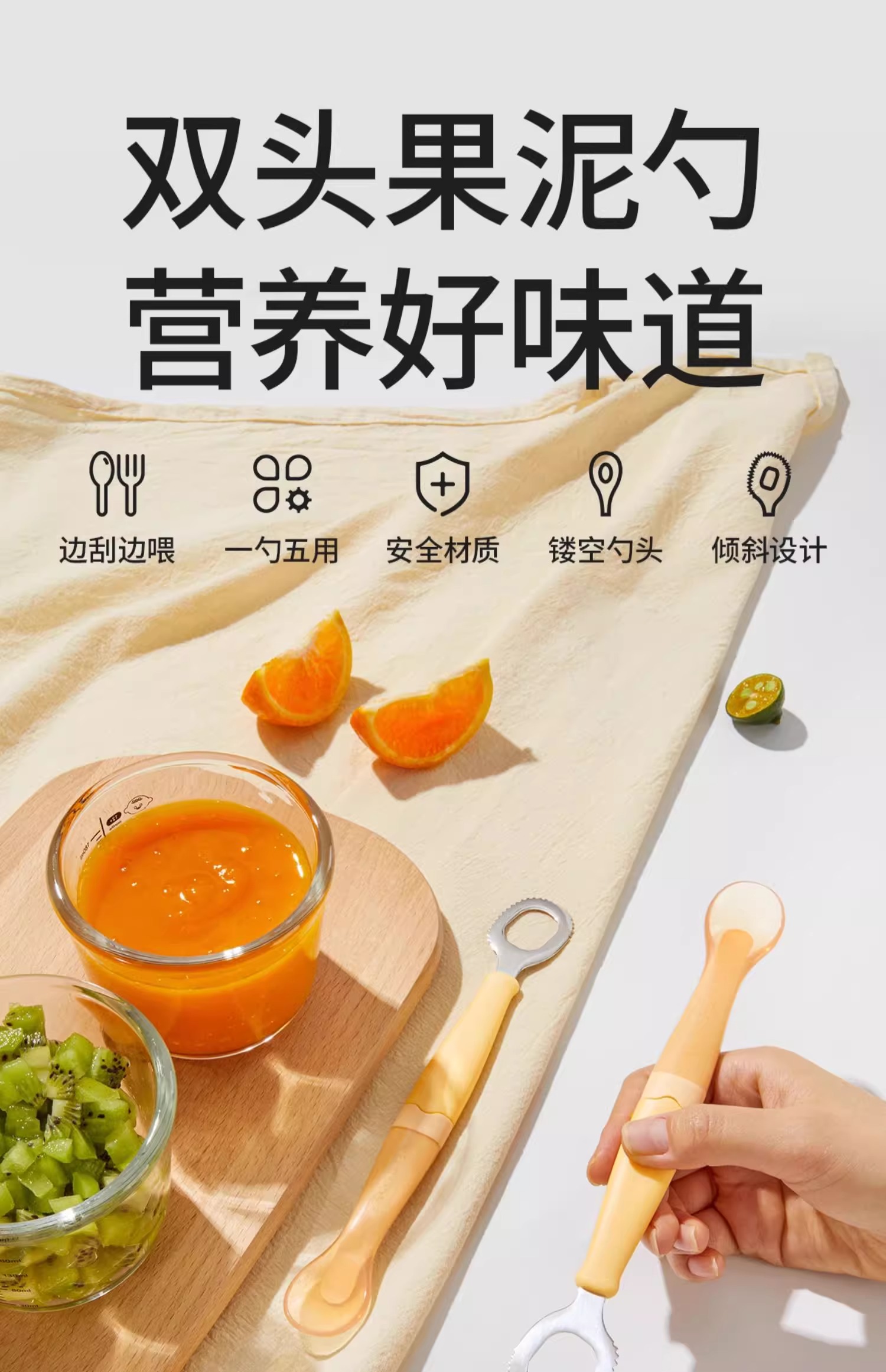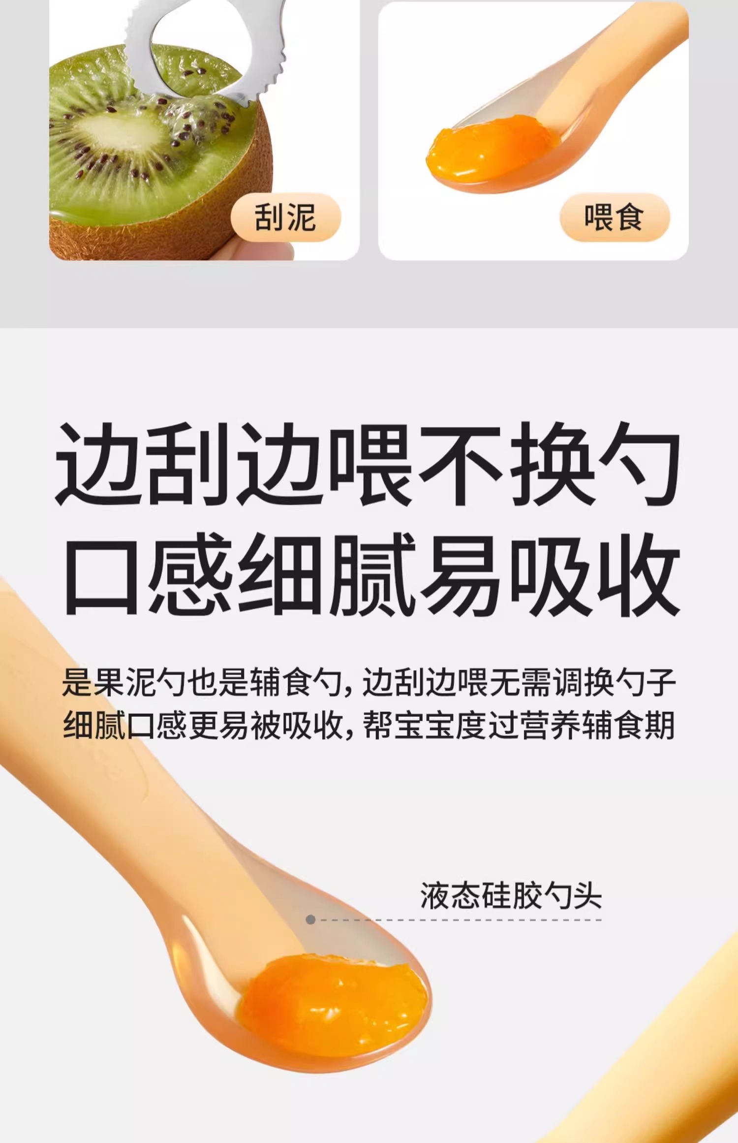 科巢双头刮泥勺婴儿宝宝刮果泥硅胶辅食勺子儿童挖吃水果泥勺餐具
