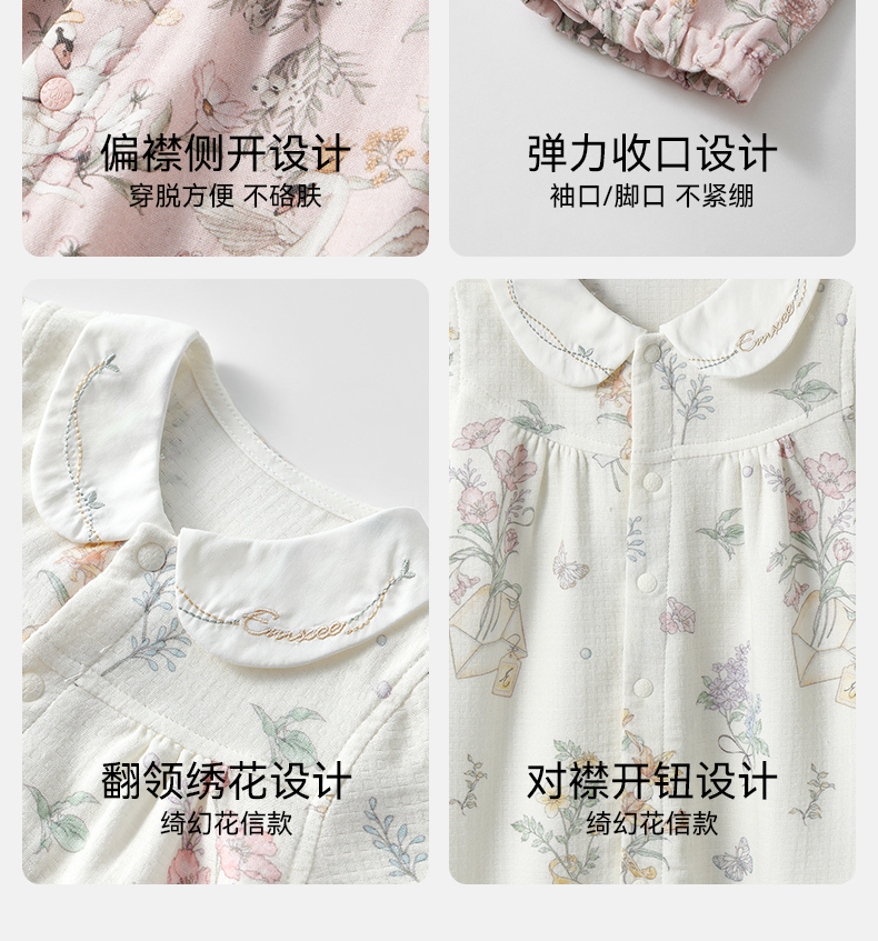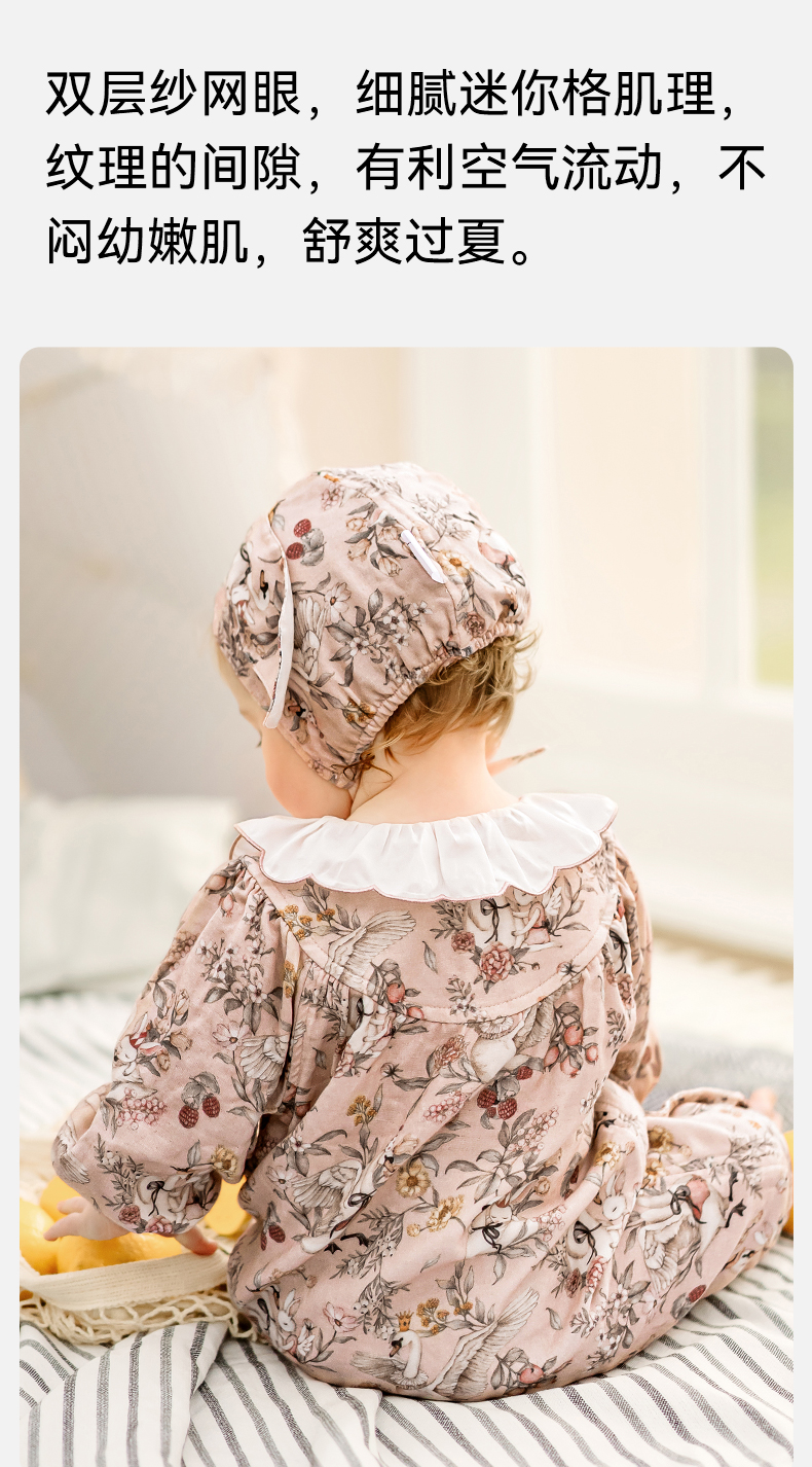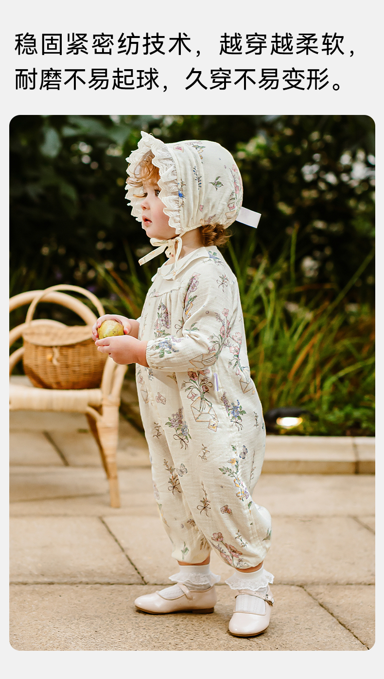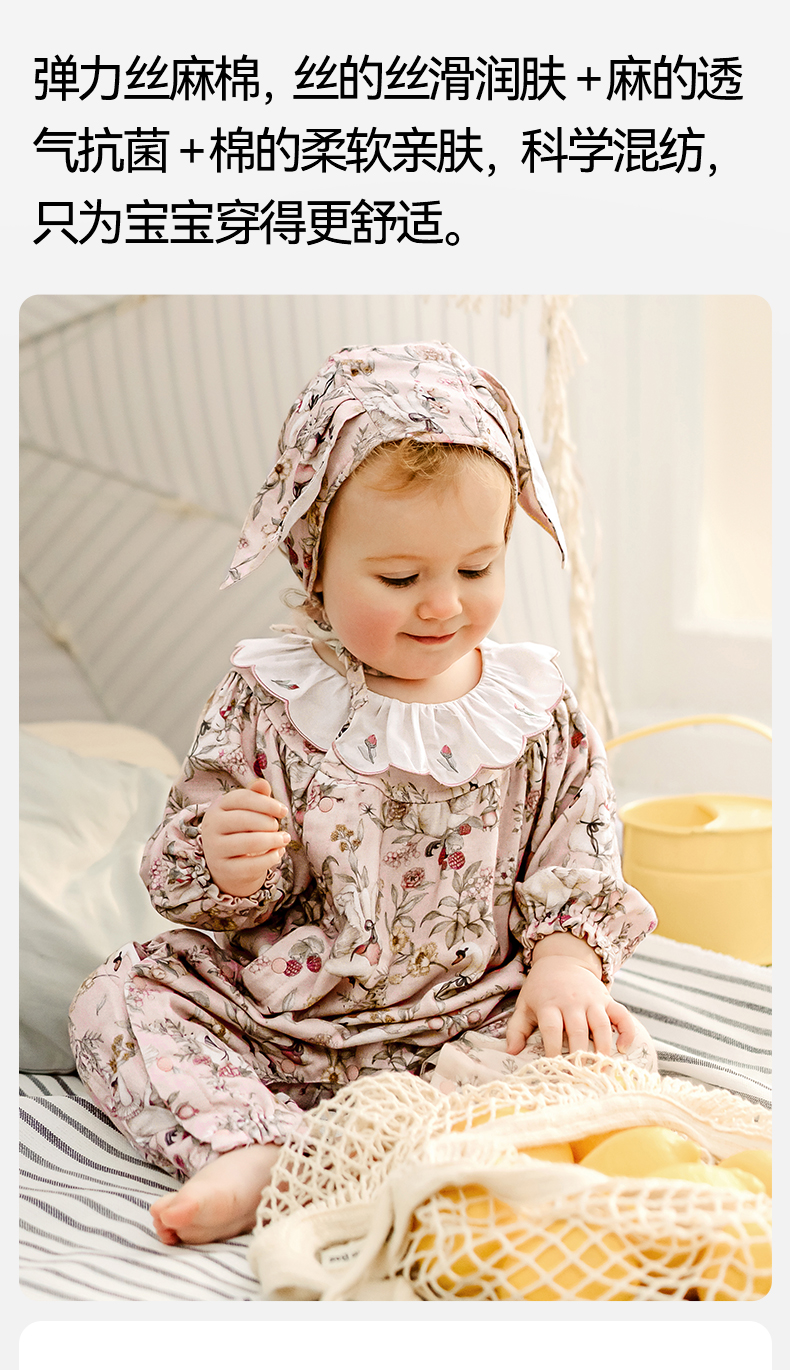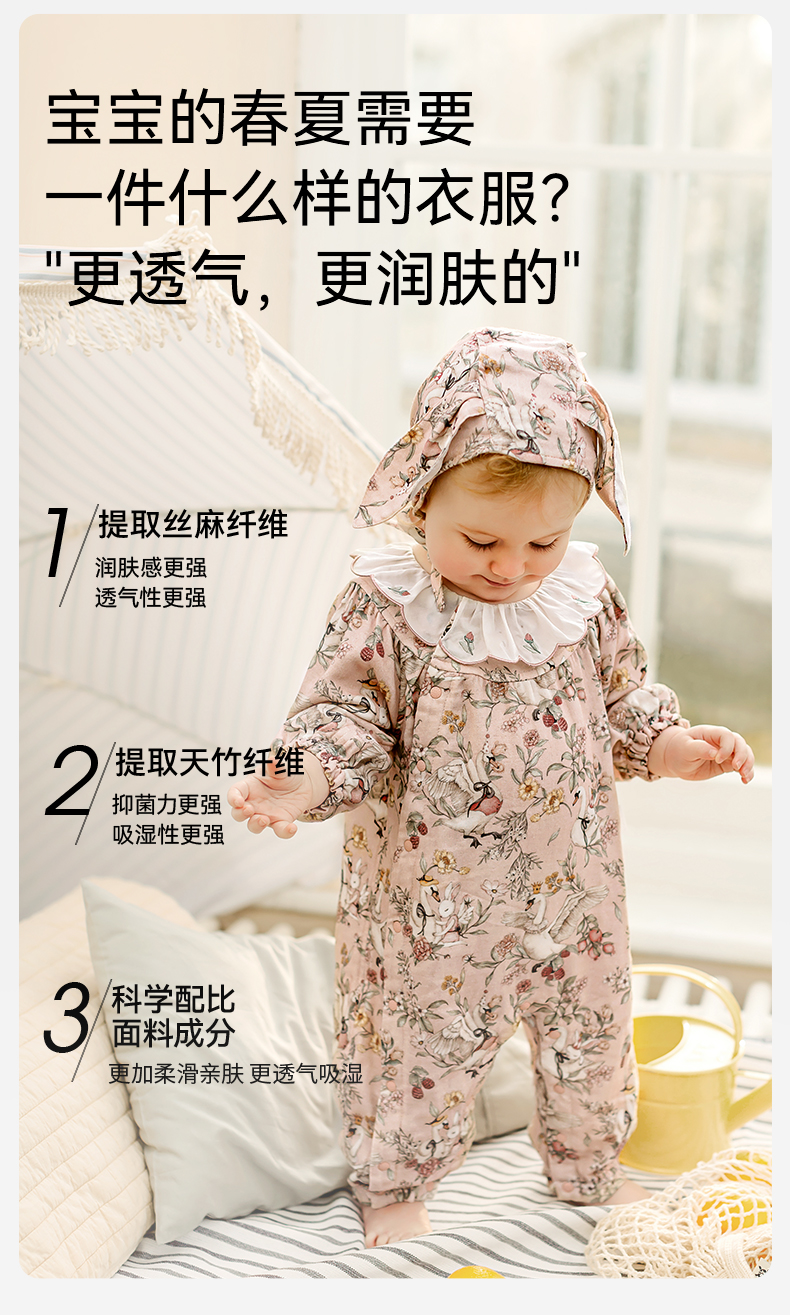 【宝宝服饰】嫚熙天鹅舞曲婴儿连体衣丝麻弹力棉夏天新初生儿宝宝衣服薄款夏季