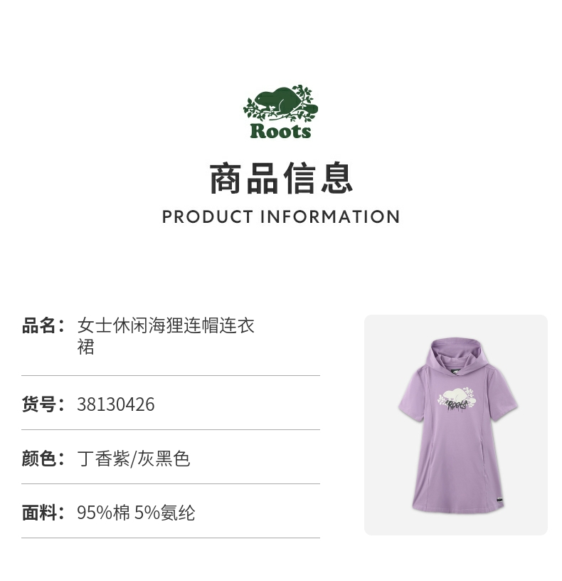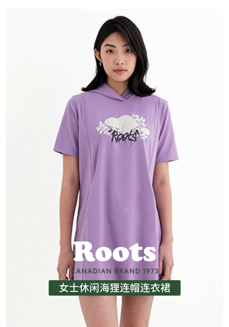(2件9折)(多色)【Roots】女式休闲海狸连帽连衣裙